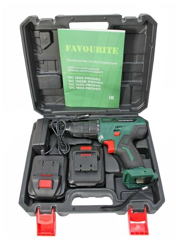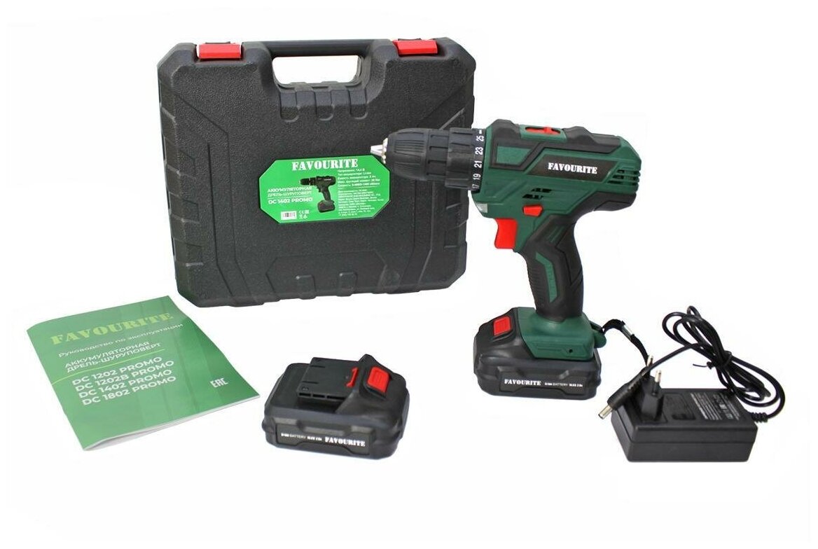 Аккумуляторная дрель-шуруповёрт FAVOURITE DC 1402 PROMO предназначена для работы с крепежными элементами. Подходит для домашнего пользования. Быстрозажимной патрон обеспечивает простую смены оснастки. Двухскоростной редуктор упрощает ведение различных работ: первая скорость предназначена для заворачивания шурупов, вторая - для сверления. Реверс – смена направления вращения для вкручивания/выкручивания крепежа. Преимущества FAVOURITE DC 1402 PROMO Аккумуляторная технология избавляет оператора от необходимости следить за шнуром питания Быстрозажимной патрон для простой смены оснастки Функция реверса упрощает выведение застрявшего в материале сверла Регулировка частоты вращения для точной настройки FAVOURITE DC 1402 PROMO под разные материалы 2 аккумулятора для работы без простоев Li-lon аккумуляторы: без эффекта памяти, без саморазряда Характеристики Бренд FAVOURITE Тип аккумулятора Li-ion Номинальное напряжение (В) 14.4 Емкость аккумулятора (Ач) 2 Макс. крутящий момент (Hm) 26 Число ступеней крутящего момента 25+1 Кол-во скоростей 2 1 скорость 0-400 2 скорость 0-1400 Реверс Да Тип патрона БЗП Размер патрона (мм) 10 Высокая энергоемкость Да Подсветка рабочей зоны Да Отсутствие эффекта памяти Да Индикатор заряда Да Часовая зарядка Да Эргономичная конструкция Да Комплектация 2 Li-ion аккумулятора Да Кейс Да Зарядное устройство Да документ о качестве еаэс RU C-CN. АД71. А.00959/19, еаэс N RU Д-CN. HB35. B.01378/20 характеристики Номер модели DC 1402 PROMO Название бренда FAVOURITE Сертификация Европейский сертификат соответствия Происхождение Китай Тип сверления Беспроводная дрель Индивидуальное изготовление Да Источник питания Аккумулятор Применение Главная DIY Тип аккумулятора Li-Ion Напряжение, В 14 Емкость аккумулятора, А*ч 2 Макс. крутящий момент, Нм 26 Размер патрона, мм 10 внешний вид товара