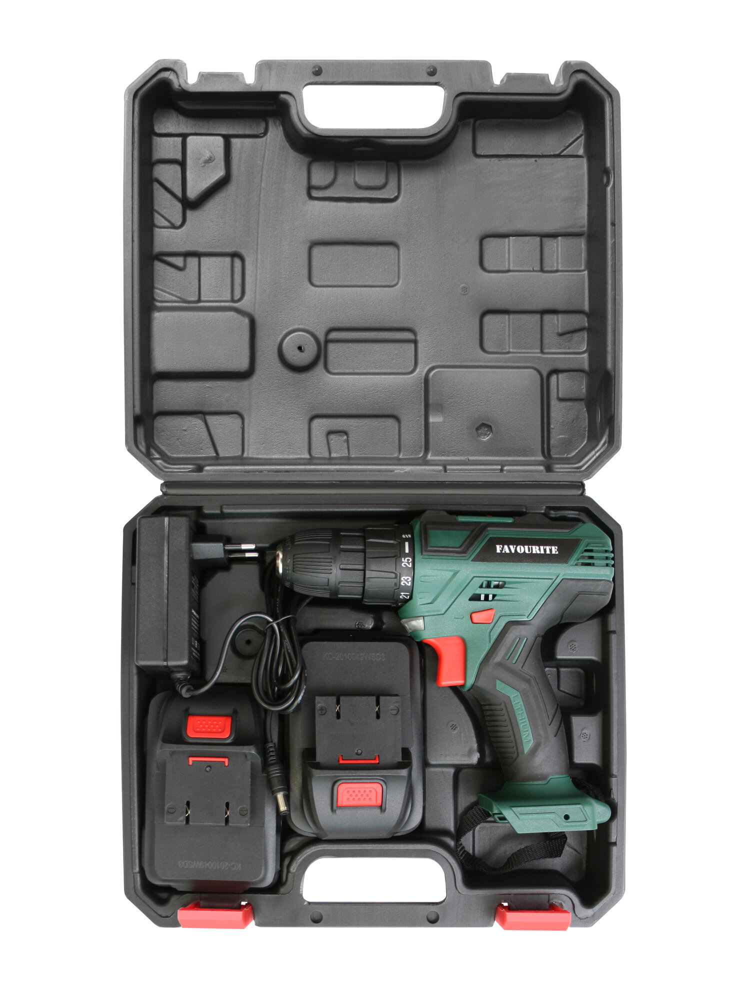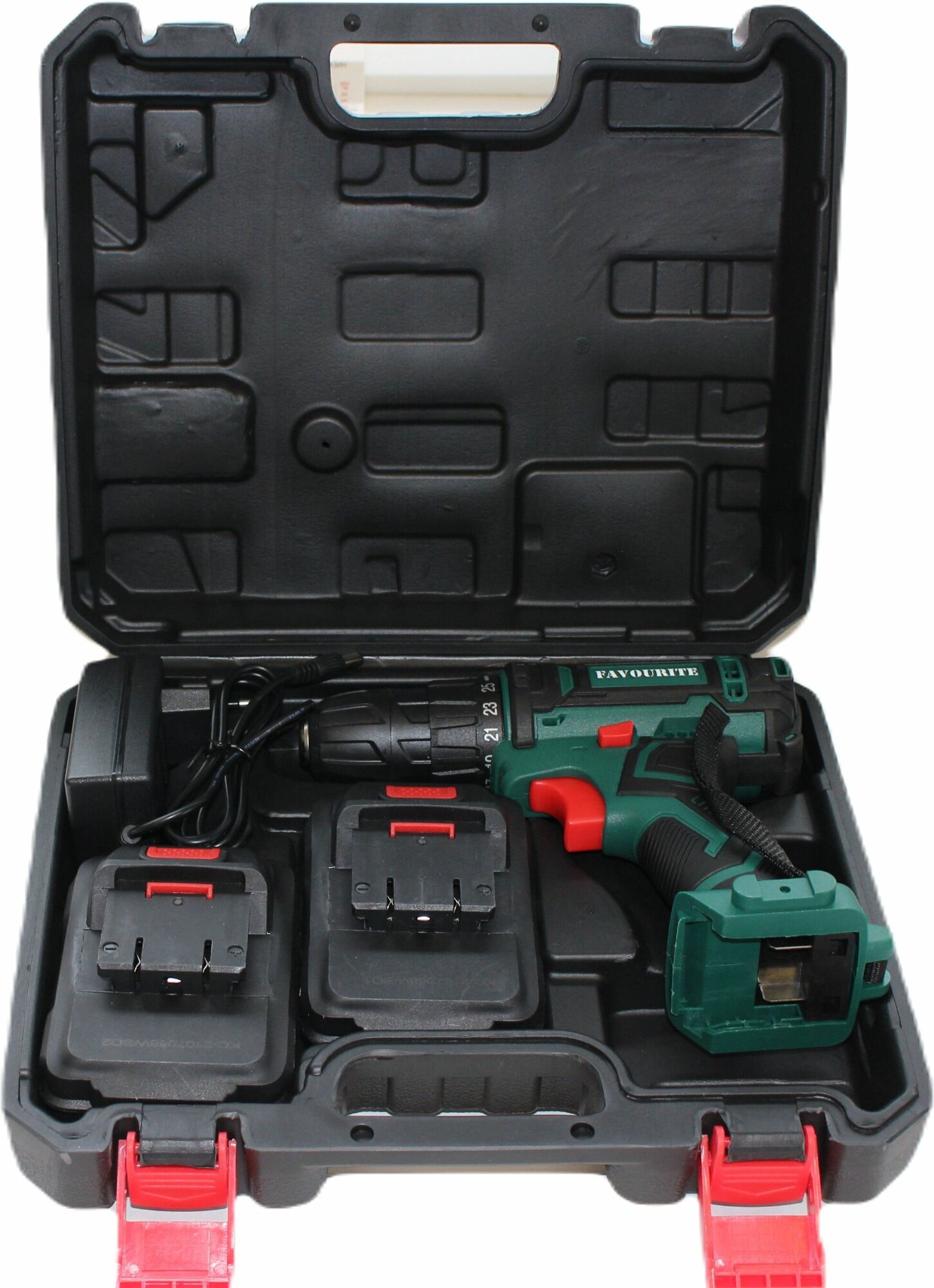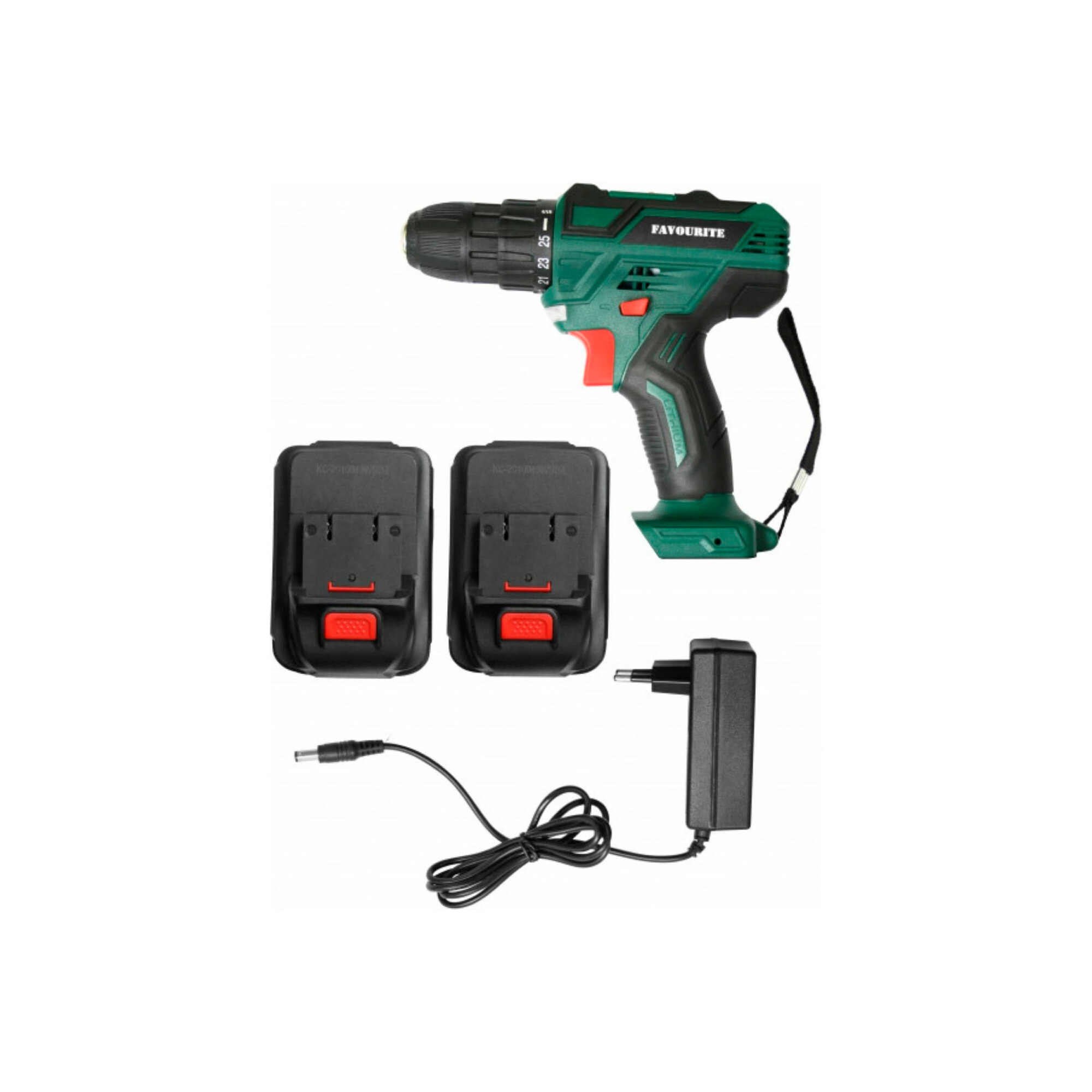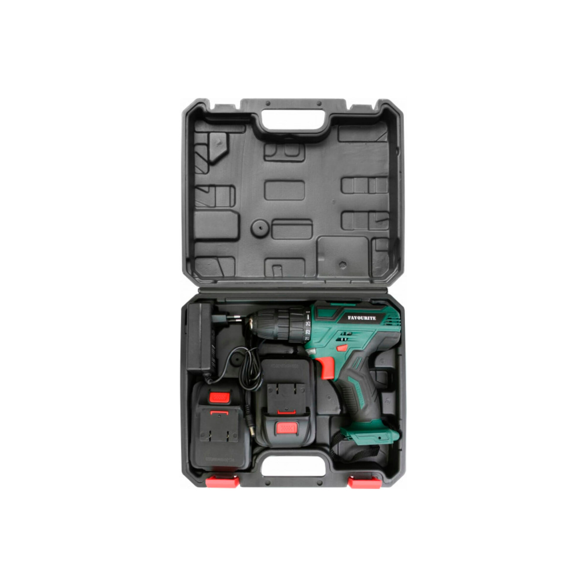 Аккумуляторная дрель-шуруповёрт Favourite DC 1802 PROMO предназначена для работы с крепежом и сверления отверстий. Комплектация: Аккумуляторная дрель-шуруповёрт; Аккумулятор - 2 шт; Зарядное устройство; Инструкция; Кейс. Характеристики: Тип двигателя: щеточный; Наличие реверса: да; Наличие подсветки: да; Тормоз двигателя: есть; Тип патрона: быстрозажимной; Число скоростей: 2; Частота вращения шпинделя: 1350 об/мин; Тип аккумулятора: Li-lon; Количество аккумуляторов в комплекте: 2; Крепление на ремень: да. Преимущества: 25 ступеней крутящего момента позволяют подбирать наиболее подходящий режим работы для конкретных задач; Для комфортного использования предусмотрена удобная рукоять; Аккумуляторная технология избавляет оператора от необходимости следить за шнуром питания. Два Li-ion аккумулятора без эффекта памяти с ЗУ, подсветка рабочей зоны делают работу с инструментом легкой и приятной. Дрель-шуруповерт Favourite DC 1802 PROMO надежный электроинструмент!