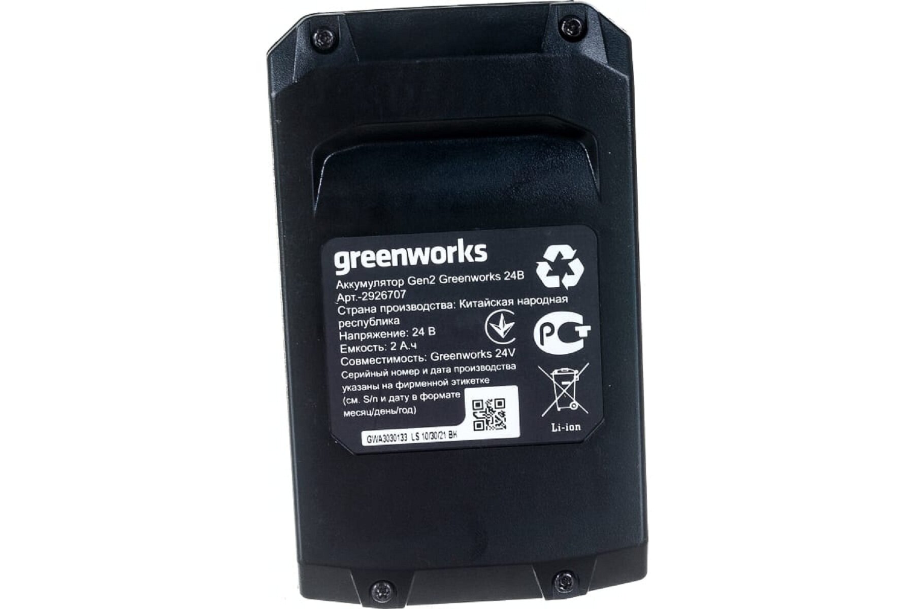 Аккумулятор G24B2 24V 2Ач Greenworks 2926707 применяется в линейке всех устройств Greenworks G-24. Состоит из ячеек самого высокого класса - А++. Оснащен индикатором заряда с четырьмя уровнями: 10%, 45%, 70%, 100%. При использовании оригинального зарядного устройства время заряда аккумулятора составляет 45 минут.