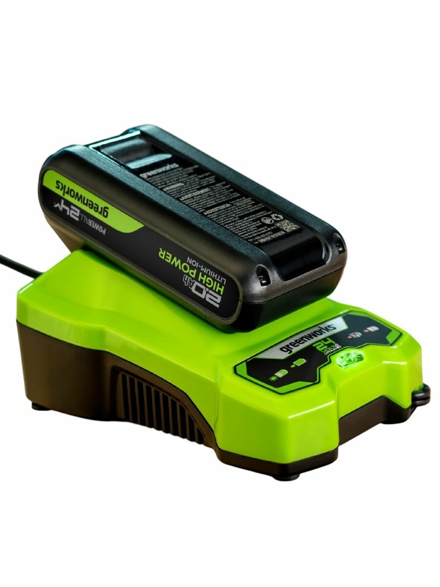 Аккумулятор Greenworks High Power G24HP2, 24V, 2Ач (2957707). Новое поколение аккумуляторных батарей Greenworks High Power 24V с высокой отдаваемой мощностью и долгим сроком службы. G24HP2 - универсальная аккумуляторная батарея ёмкостью 2 Ач предназначена для устройств платформы 24V Greenworks ( кроме вертикальных пылесосов GD24SV - 4701407, 4701407UB, 4700607UB, 4701107UB. Новый компактный и прочный корпус обеспечивает защиту всех компонентов батареи и имеет легко узнаваемый, современный внешний вид. Обновленная электроника Greenworks Intelligent Power обеспечивает высокую отдаваемую мощность и управляет батареей, инструментом и зарядным устройством, для максимальной производительности инструмента с гарантией 2 года. Система Greenworks Intelligent Power обеспечивает защиту аккумуляторного блока G24HP2 от перегрева, от перегрузки, от глубокого разряда, от перезаряда, продлевая тем самым его срок службы. Батарея G24HP2 построена на основе литий-ионных элементов тип 18650, которые не имеют эффекта памяти, обладают большим сроком службы и с минимальным саморазрядом во время хранения.