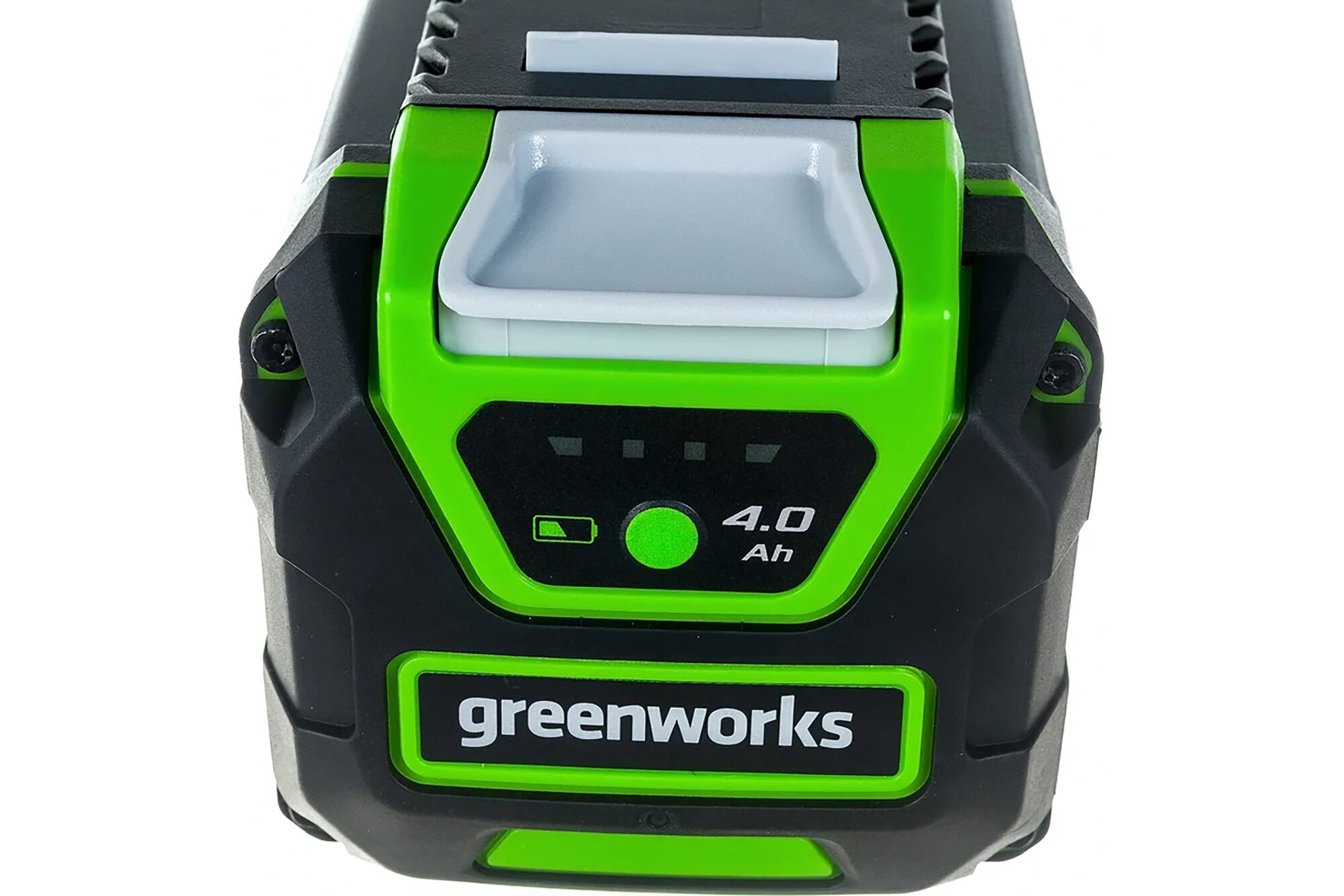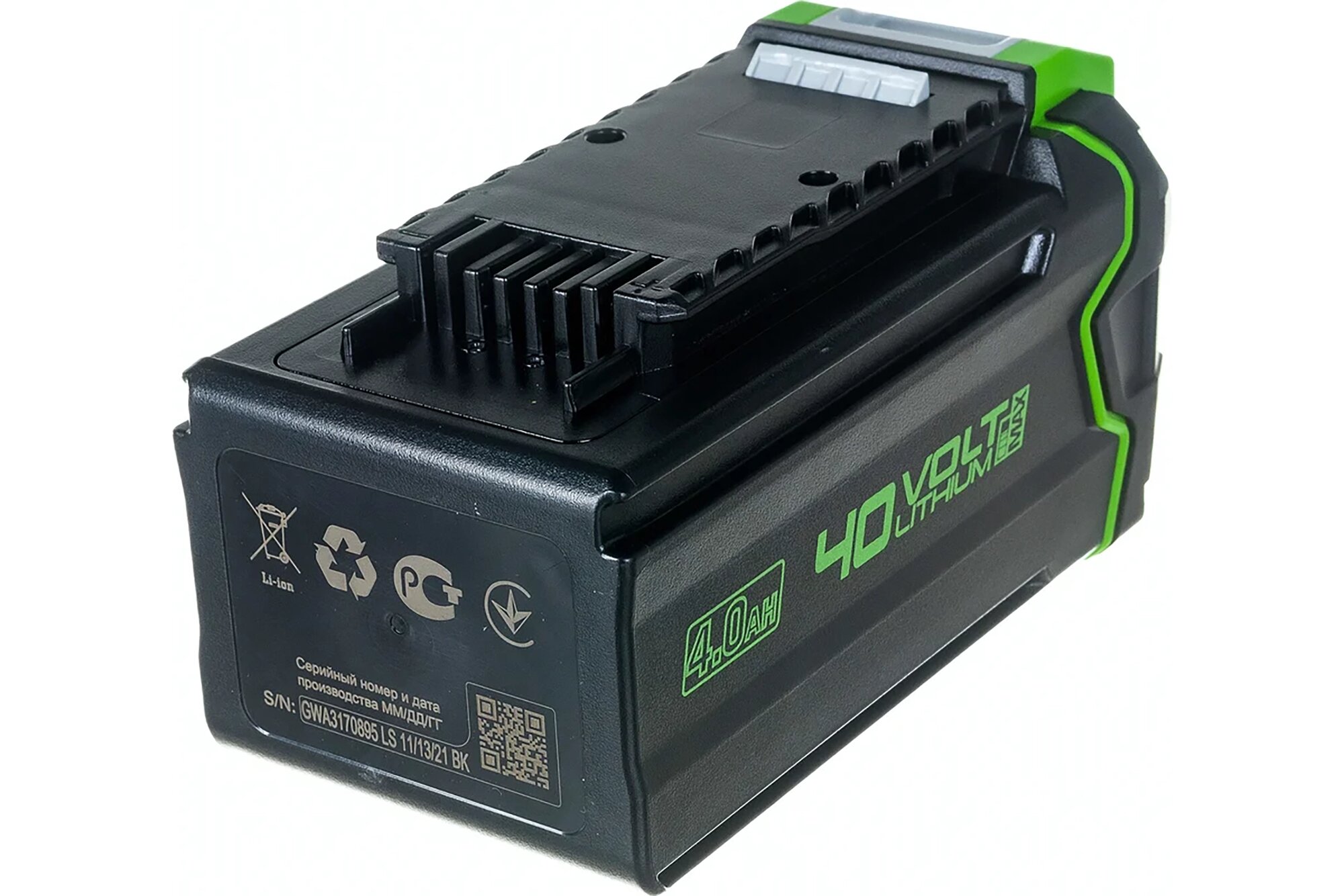 Аккумулятор Greenworks G40B4 40 вольт - это литий ионная (Li-ion) батарея, выполненная по самой современной технологии. Этот аккумулятор может использоваться для питания всех устройств Greenworks линейки G-MAX 40V. Аккумулятор состоит из ячеек самого высокого класса А++. Батарея снабжена платой управления, благодаря которой ячейки заряжаются и разряжаются равномерно и одновременно, а также чипом для защищены от перезаряда, перегрева и глубокого разряда. Это избавляет от эффекта потери мощности инструмента при разряде, а также значительно продлевает срок жизни аккумулятора в среднем на 7 лет - до 2000 циклов заряда-разряда. Для удобства аккумулятор оснащен индикатором уровня заряда. Аккумулятор имеет 4 зелёных горящих индикатора деления уровня заряда: - Уровень заряда 10%; - Уровень заряда 45%; - Уровень заряда 70%; - Уровень заряда 100% Время зарядки аккумулятора - от 60 мин (при использовании быстрого зарядного устройства 4А) до 120 мин (при использовании зарядного устройства 2,2А) 120 мин. Оптимальные условия хранения - 40% заряда, температура выше 0 С. Корпус аккумулятора ударопрочный с прорезиненными ребрами. Особенности аккумуляторной батареи Greenworks G40B4 G-MAX 40V 4 Ач: Долгий срок службы, до 2000 циклов заряда-разряда; Время зарядки - от 60 мин (при использовании быстрого зарядного устройства 4А) до 120 мин (при использовании зарядного устройства 2,2А) 120 мин; Литий ионные ячейки высокого класса А++ Плата управления для балансировки напряжения в ячейках при заряде и разряде батареи; Чип для защиты от перегрева, перезаряда и глубокого разряда; Индикатор заряда батареи; Ударопрочный корпус; Совместимость со всеми устройствами из линейки Greenworks G-MAX 40V; Гарантия 2 года. Состав комплекта: Аккумулятор GreenWorks G40B4 G-MAX 40V, 4 Ач; Руководство по эксплуатации; Гарантийный талон. Внимание: аккумулятор поставляется без зарядного устройства (ЗУ), которое приобретается отдельно.
