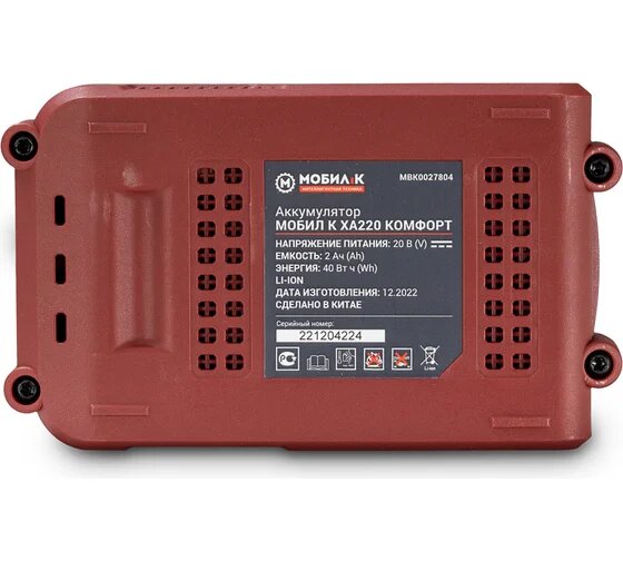 Аккумулятор мобил К XA220 комфорт 20 Вольт 2 Ач. Литий-Ионный аккумулятор предназначен для использования с любым аккумуляторным инструментом мобил К комфорт и зарядным устройством мобил К ХАС24 комфорт. Зарядное устройство приобретается отдельно. Данный аккумулятор оснащен индикатором оставшегося заряда. Индикатор включается на 4 секунды. Аккумулятор, принадлежности и упаковка подлежат сортировке для вторичной переработки. Напряжение аккумулятора: 20 В Ёмкость аккумулятора: 2 Ач Время зарядки аккумулятора: 50 мин Гарантия: 2 года