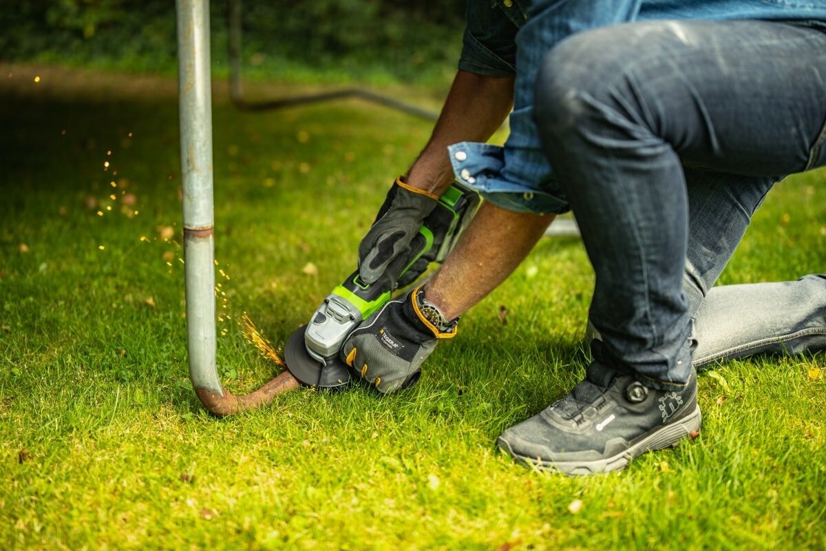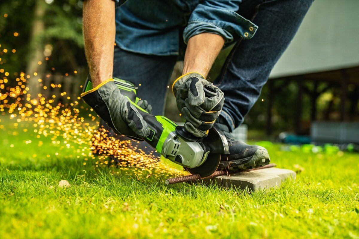 Дополнительная рукоять может устанавливаться справа и слева, а встроенный экран защитит от искр и мусора. В процессе работы с электроинструментом мы настоятельно рекомендуем использовать подходящую одежду, а также защитную маску.
