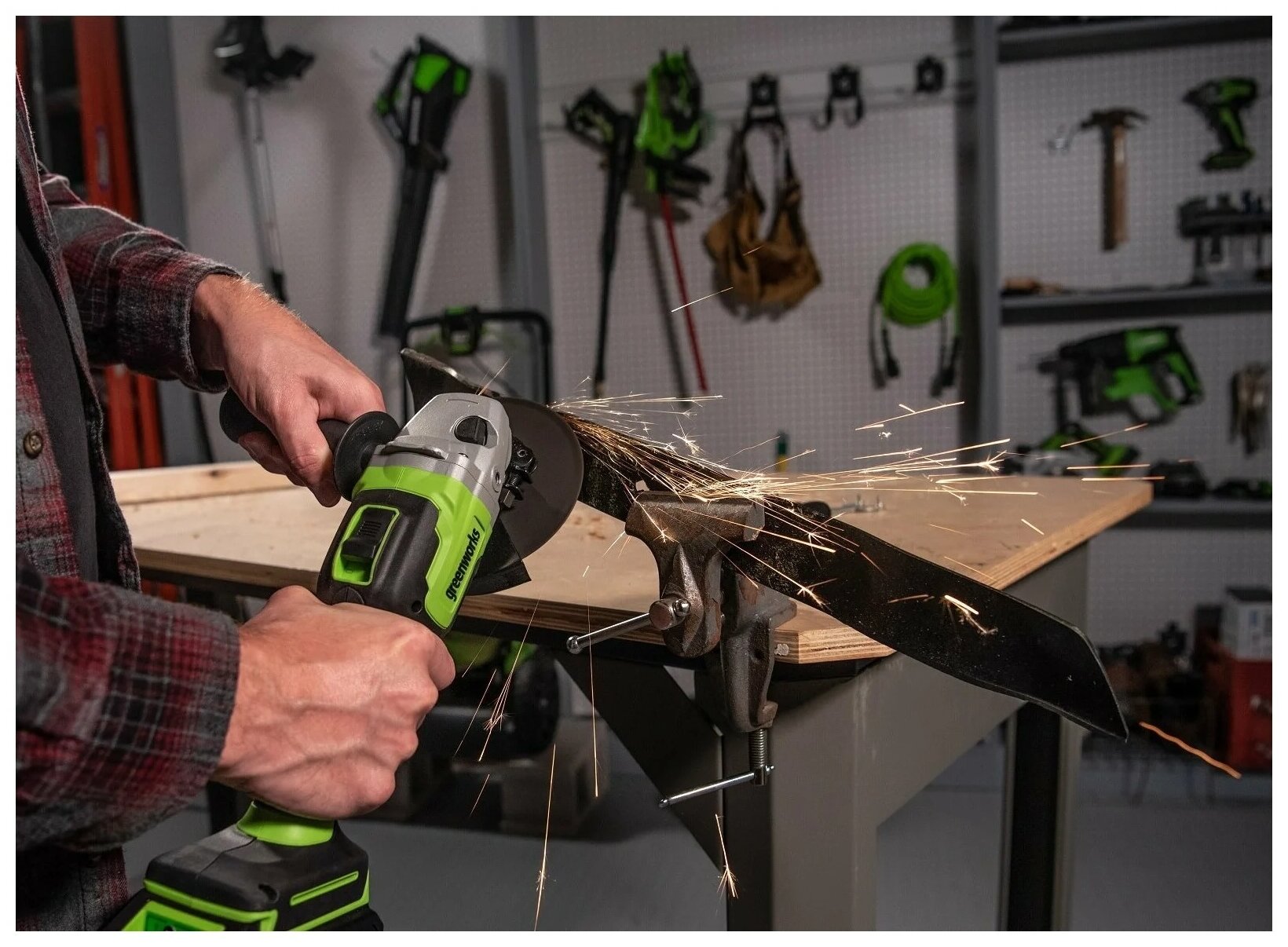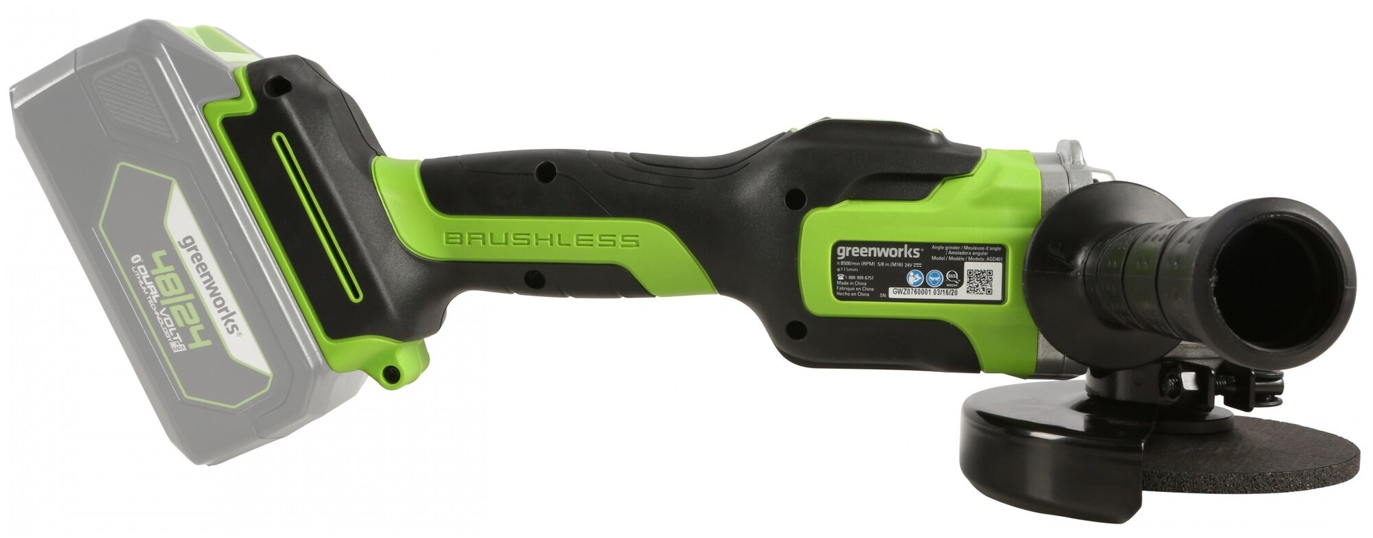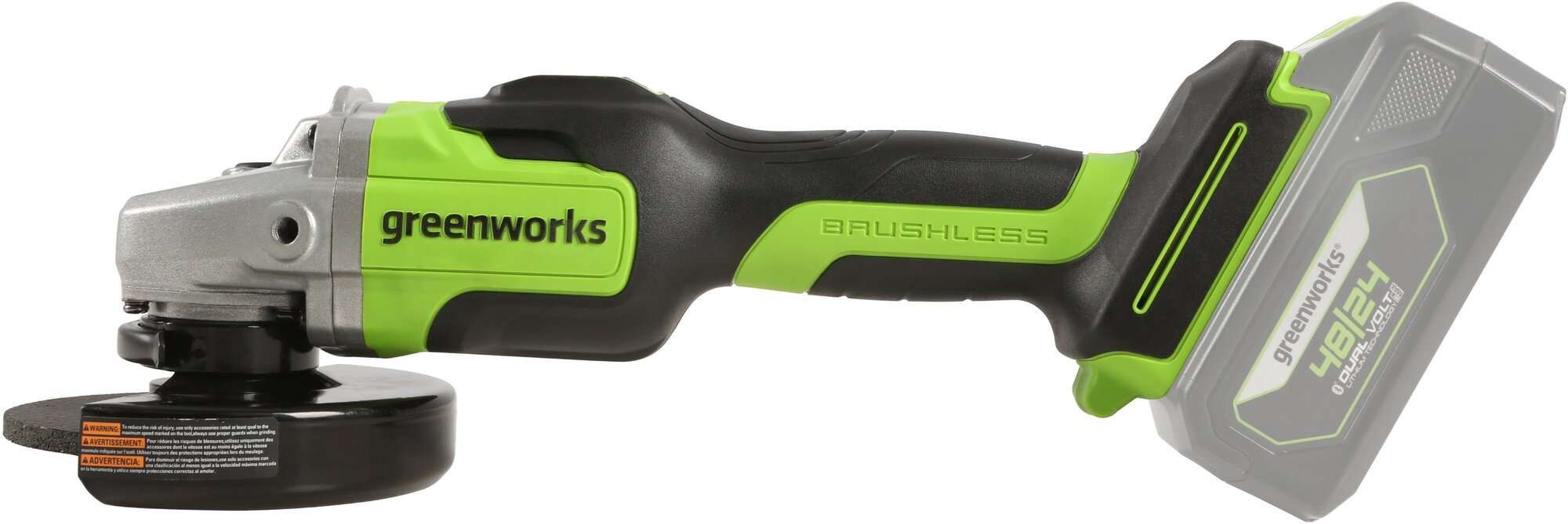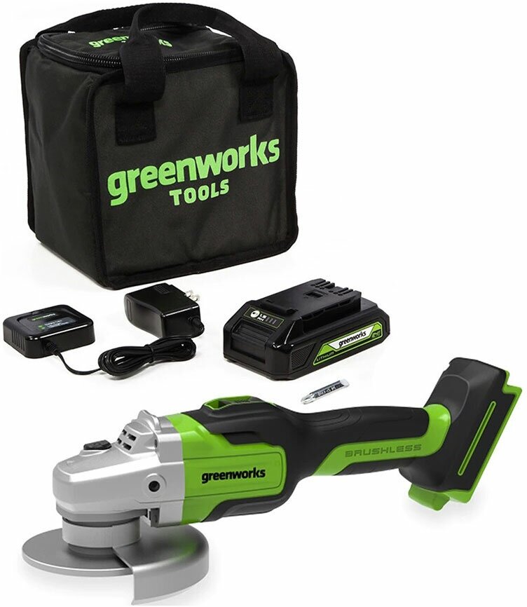 Greenworks GD24AG - надёжная, лёгкая угловая шлифовальная машина, предназначенная для бытового применения. Несмотря на свой компактный размер, машина обеспечивает высокий уровень производительности благодаря использованию 24V литий-ионной аккумуляторной батареи, разработанной по новейшим технологиям. Отсутствие электрических кабелей обеспечивает комфортную эксплуатацию - просто установите аккумуляторную батарею и начните работу!
