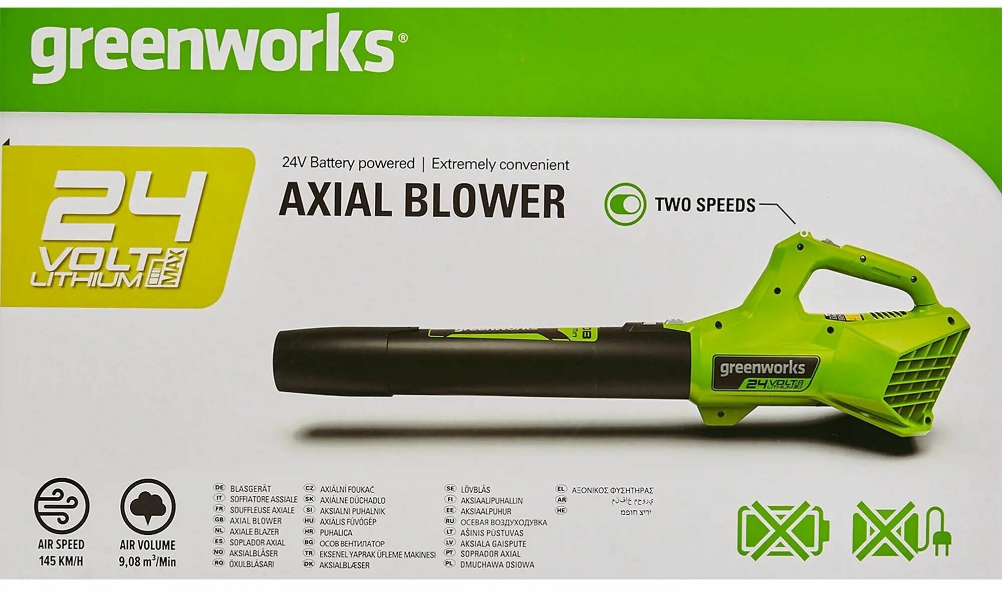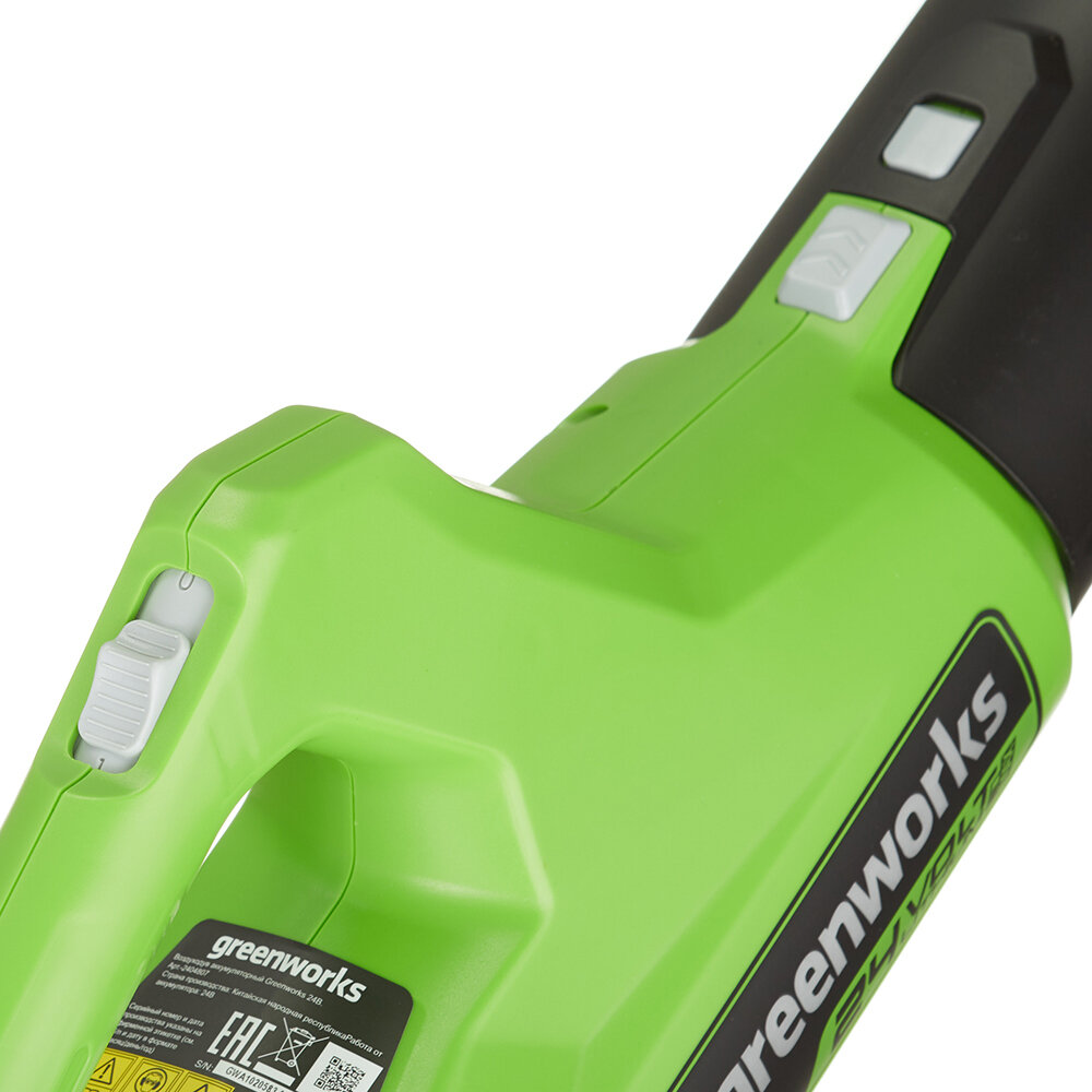 Воздуходув аккумуляторный 24V предназначается для уборки опавшей листвы, пыли, прочей грязи и мусора. Данная модель имеет аксиальное строение вентилятора, что делает возможным достижения высоких показателей скорости объема потока воздух Мотор щеточный. Скорость воздушного потока 137 км/час. Объем воздушного потока 500 м3/час ( 8,3 м3 в минуту ). 2- режима работы ( высокий /низкий). Благодаря питанию от 24V аккумулятора воздуходув обеспечивает долгую автономную работу, а также данный аккумулятор совместим с другими устройствами из линейки G-24.