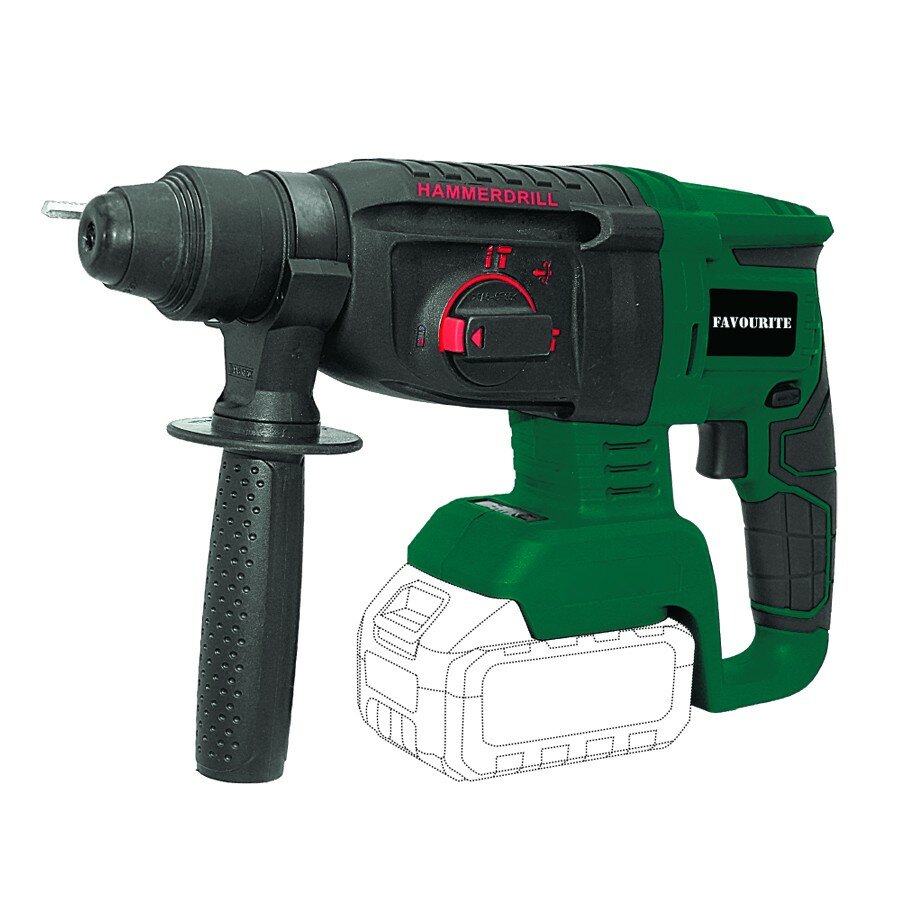 Аккумуляторный перфоратор FAVOURITE SDS+, бесщеточный двигатель OBS 21 RH предназначен для долбления бетона, бурения отверстий, а также сверления в дереве и металле.
