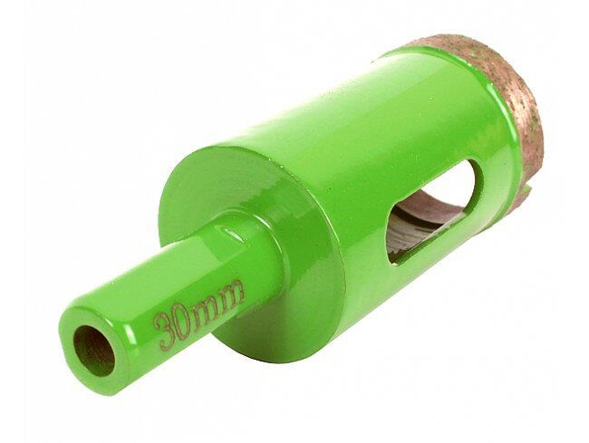 Алмазная коронка DISTAR DDR-B GRANITE ACTIVE – отличный помощник для создания глухих и сквозных отверстий разного диаметра в керамических поверхностях. Наиболее эффективно показывает себя в работе с мягкой и твердой керамической плиткой, а также мрамором и керамогранитом. При сверлении создает аккуратную кромку, не повреждая общий вид материала. Коронка оснащена специальным хвостовиком, под зажимной патрон, что позволяет использовать инструмент на ручных дрелях. За счет прочного алмазного слоя позволяет достичь максимальной скорости работы и ресурса сверл. При сверлении требуется охлаждение сверла и материала с помощью воды. Преимущества: Печная технология (в отличие от вакуумной технологии пайки) обеспечивает высокий ресурс работы.