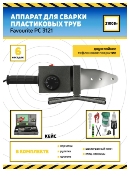 Характеристики Тип: паяльник Мощность, Вт: 2100 Напряжение, В: 220 Материал: металл Диаметр сварки, мм: 63 Регулятор температуры: да Форма нагревателя: мечевидная Тип сварки: муфтовая (раструбная) Покрытие греющих элементов: тефлоновое Тип насадки: насадка парная Диаметр насадки, мм: 20/25/32/40/50/63 Вес нетто, кг: 4,7 Управление температурой: релейное Защита от перегрева: есть Класс товара: полупрофессиональный Комплектация Паяльник 6 насадок (20, 25, 32, 40, 50, 63 мм) Шестигранный ключ Упаковка - металлический кейс Инструкция