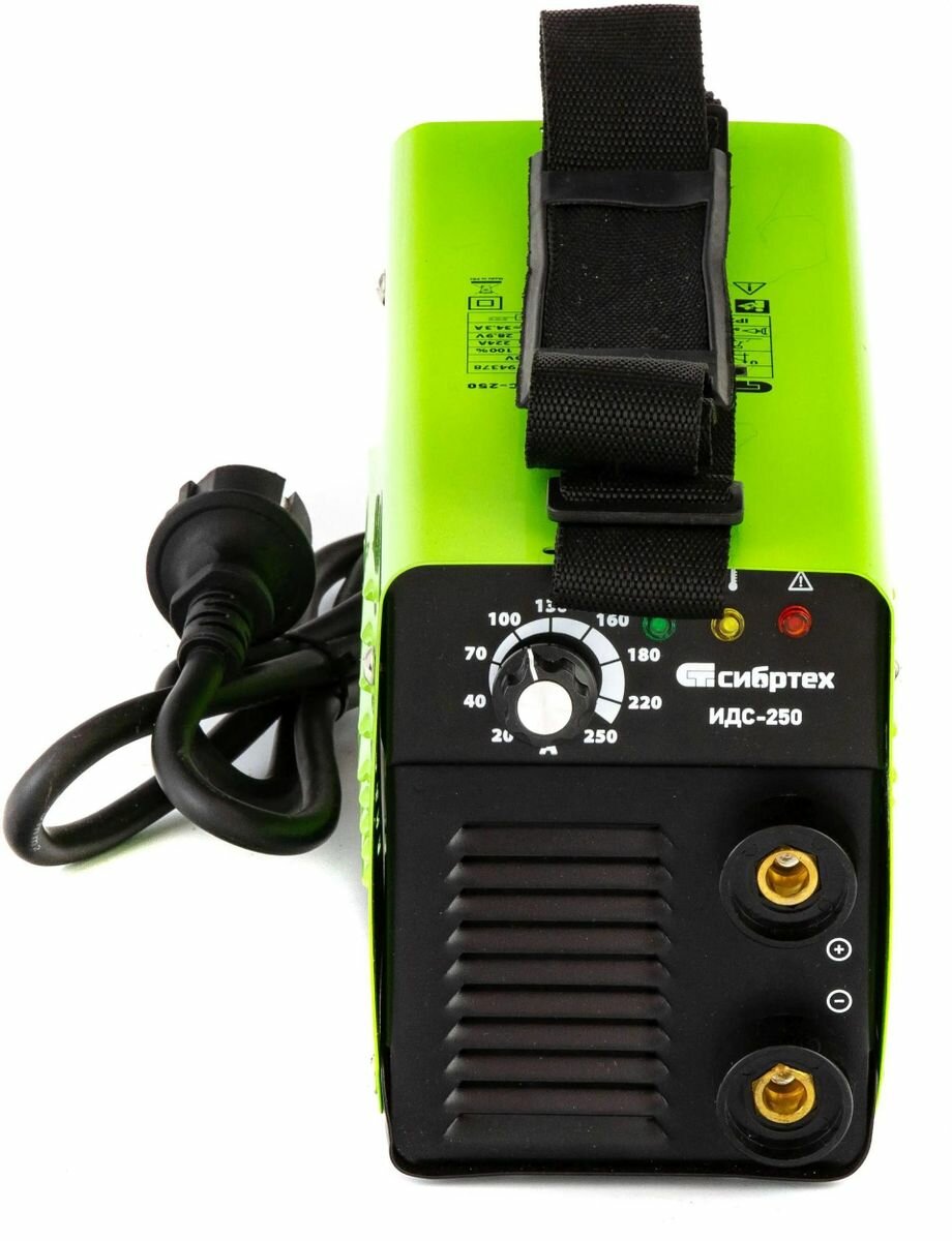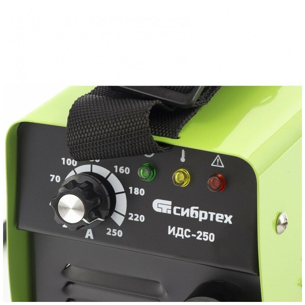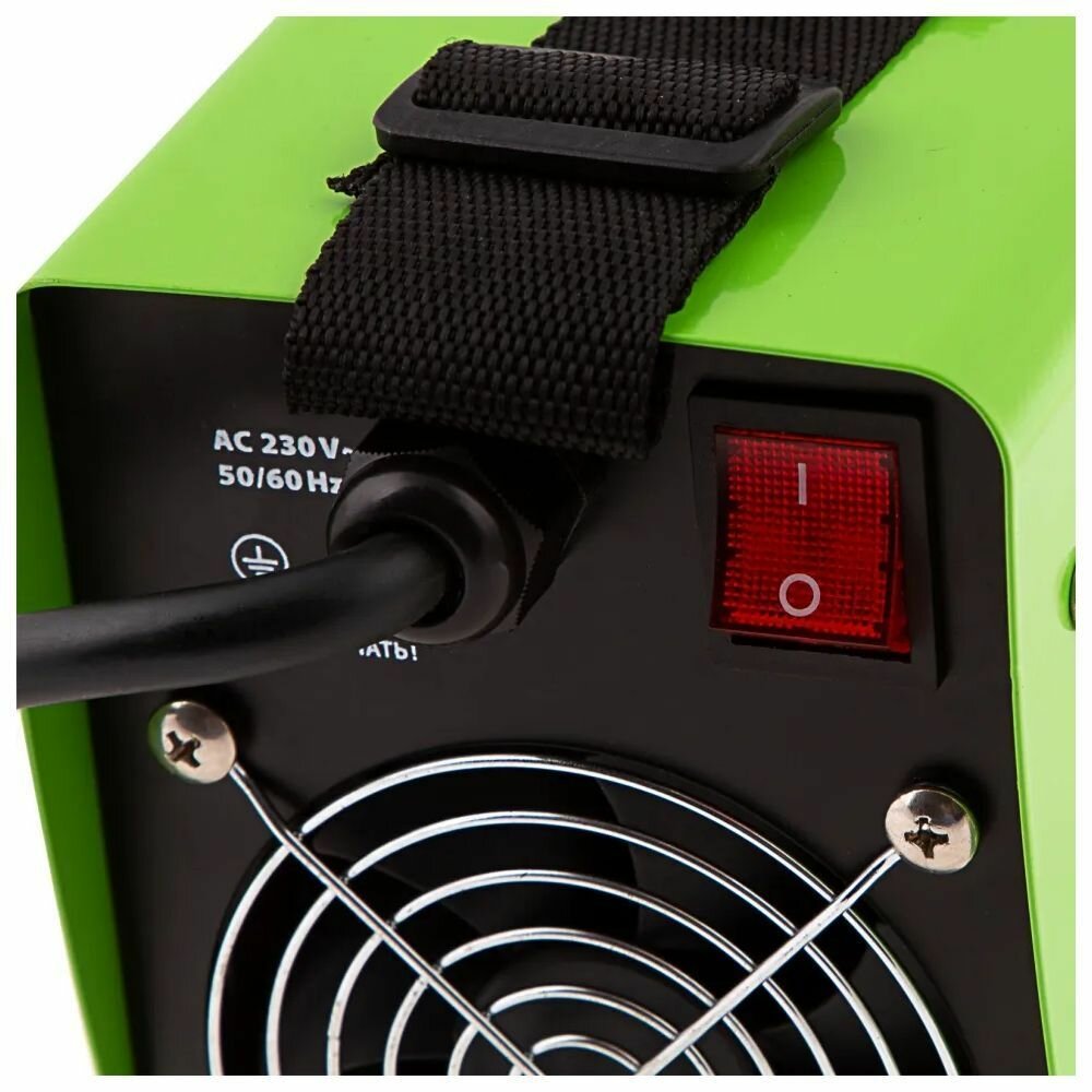•\tТочная настройка — поворотный регулятор позволяет плавно изменять силу сварочного тока для достижения оптимального результата.