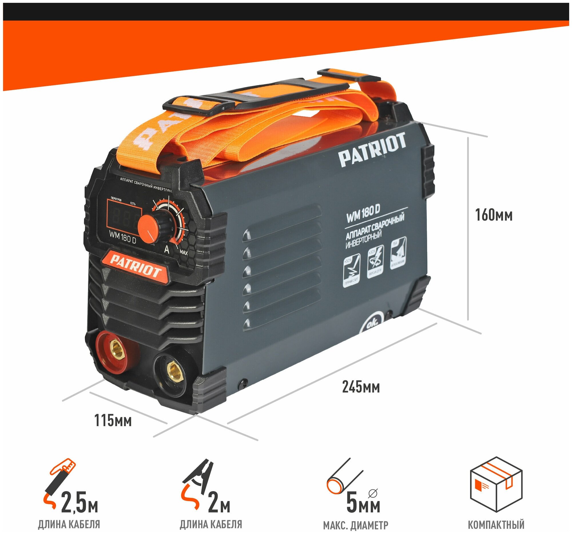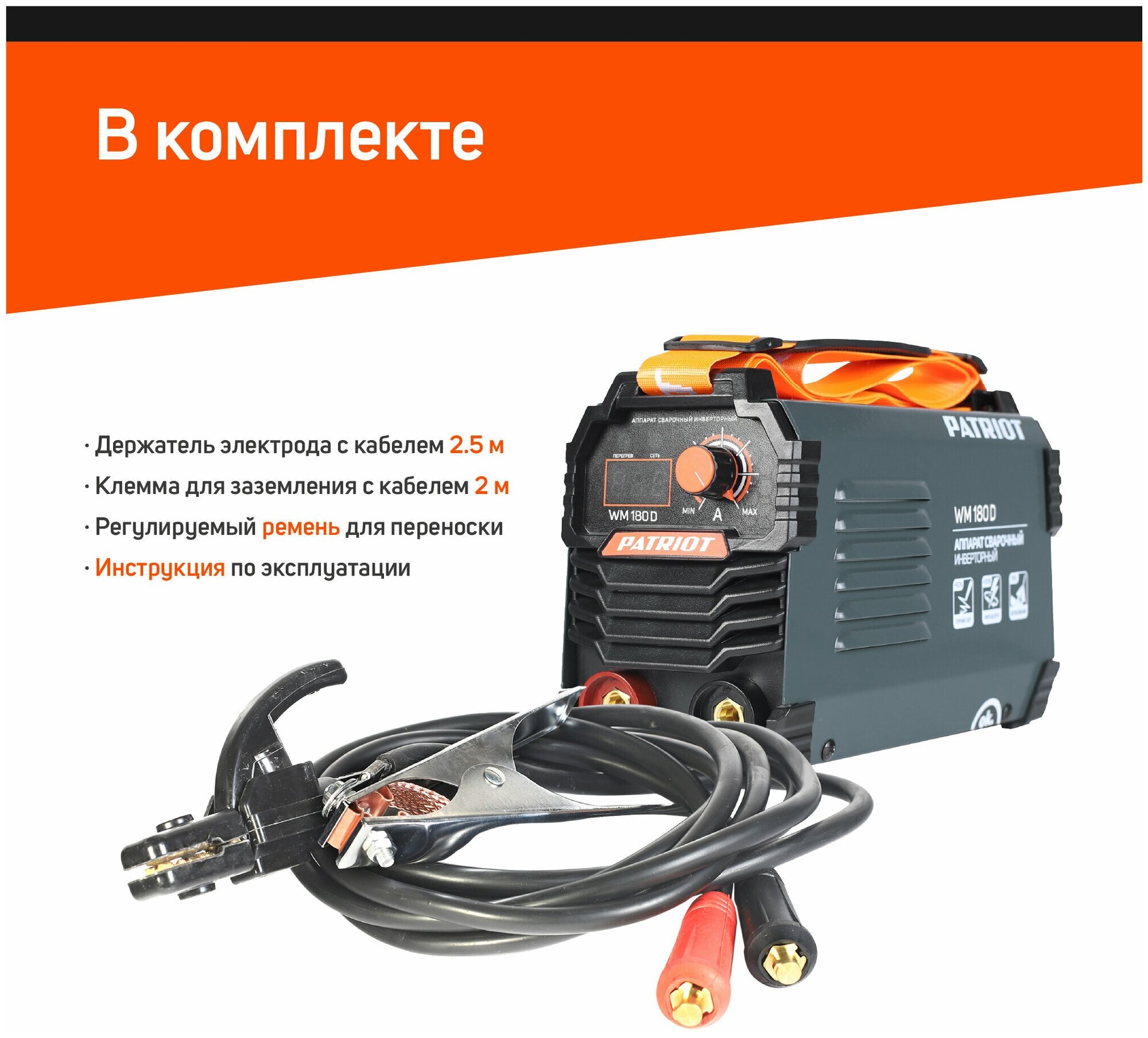 Сварочный аппарат для ручной дуговой сварки электродом (ММА). Аппарат прост в управлении, устойчив к механическим воздействиям, перепадам температур, влажности, пыли, атмосферным осадкам. Подходит для работы при неустойчивой сети питания, включая электрогенераторные установки. Комплектация: Держатель электрода с кабелем 2.5м, сечение 16 кв. мм, клемма «земля» с кабелем 2м, сечение 16 кв. мм Преимущества: - Гарантированная работа от 140В входного напряжения. - Надежная работа от генератора - Работа при температурном диапазоне -30/+50°C. - Дополнительная защита от дождя и металлической пыли. - Антикоррозийная защита. - Устойчивость к вибрации и падению. - Функции: ARC FORCE, ANTI STICK, HOT START
