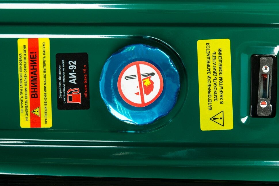 Модель подойдет в качестве дополнительного источника питания для частного дома или небольшой мастерской. Двигатель способен работать безостановочно в течение длительного времени. Для безопасности имеется система контроля за напряжением и дополнительные предохранители в цепи.
