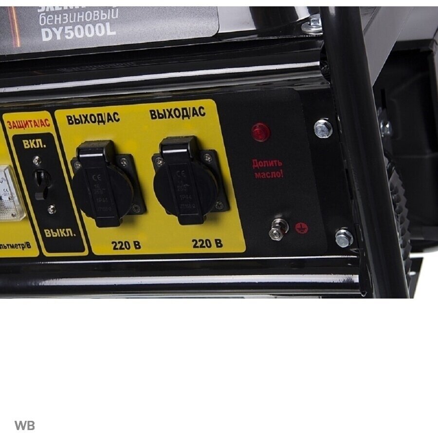 Нормальную работу генератора обеспечивают системы защиты и контроля, такие как контроль над уровнем масла, защита от короткого замыкания и перегрузок, счетчик моточасов и система стабилизации выходного напряжения. Стальной каркас позволяет переносить агрегат вручную и устанавливать его в нужном месте. Кроме того, он способен выдерживать и сильные удары.