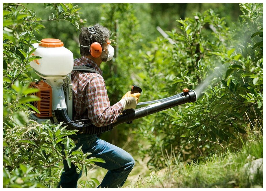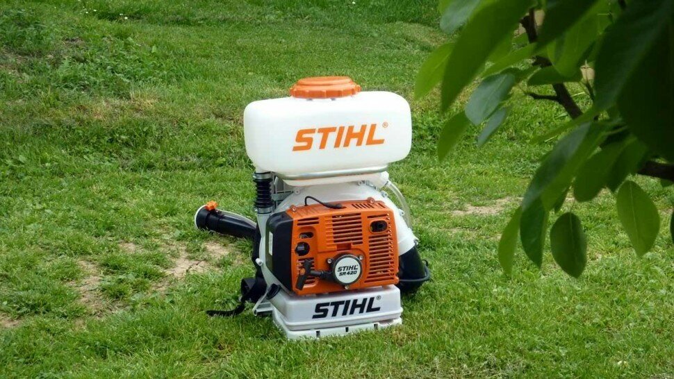 Опрыскиватель STIHL SR 420 разработан для обработки деревьев, кустов, прочих садово-парковых насаждений от вредителей. Используется в качестве воздуходува. Особенности модели: Модель SR 420 оснащена двухтактным двигателем мощностью 3,5 л. с, баком для распыляемого вещества объемом 13 л и вместительным топливным баком на 1,5 л. Механизм ElastoStart отвечает за плавный, быстрый запуск двигателя. Продуманная система переноски, минимальный уровень вибрации уменьшают нагрузки на руки и спину. Многофункциональная рукоятка с элементами управления упрощают работу с машиной. Опрыскиватель поставляется с решетками для создания конусообразной струи, разделения, отклонения струи в сторону.