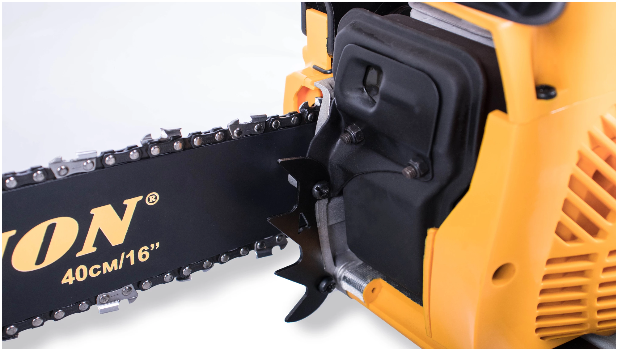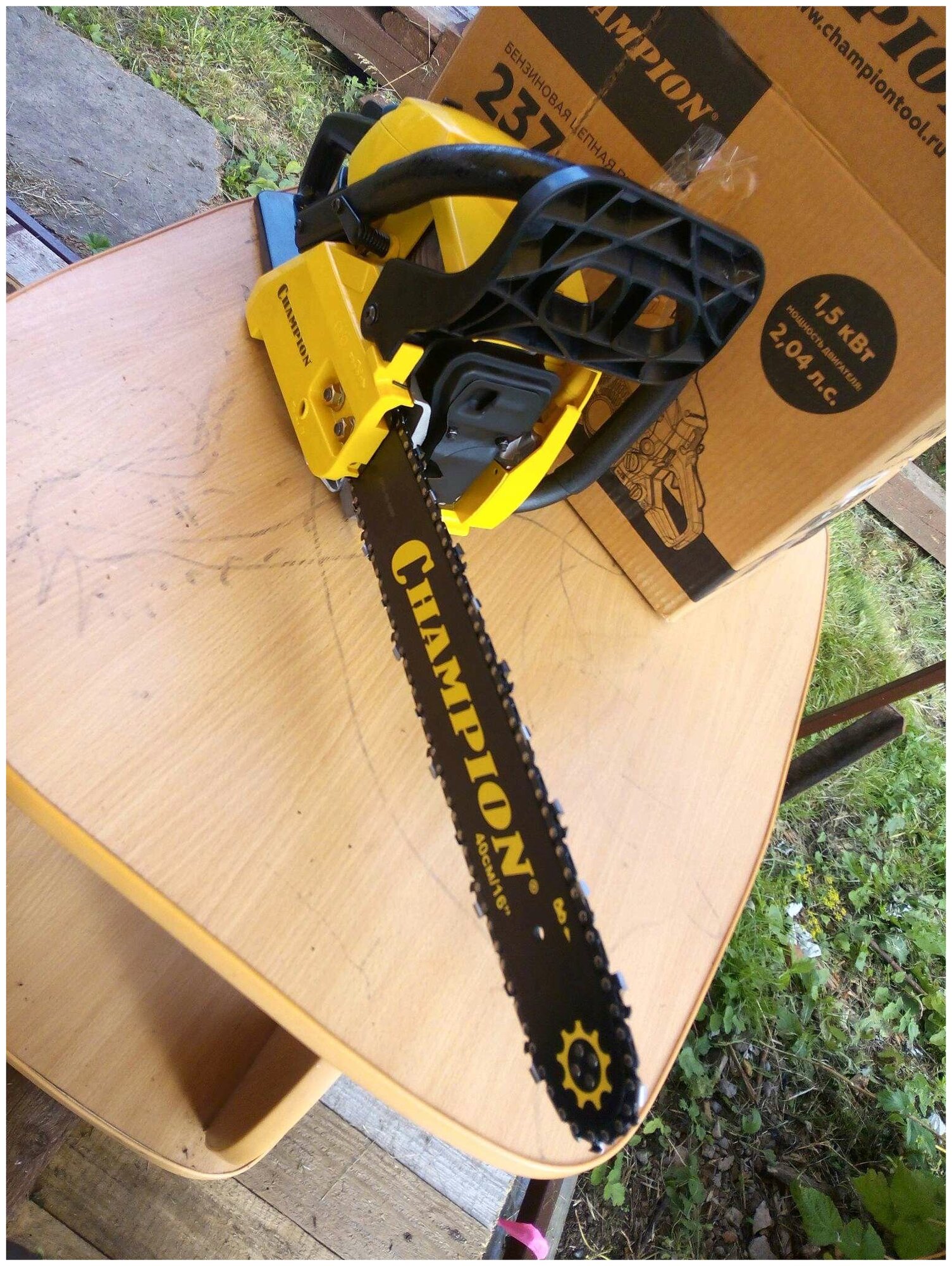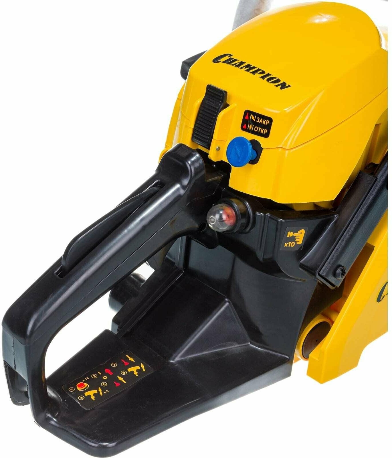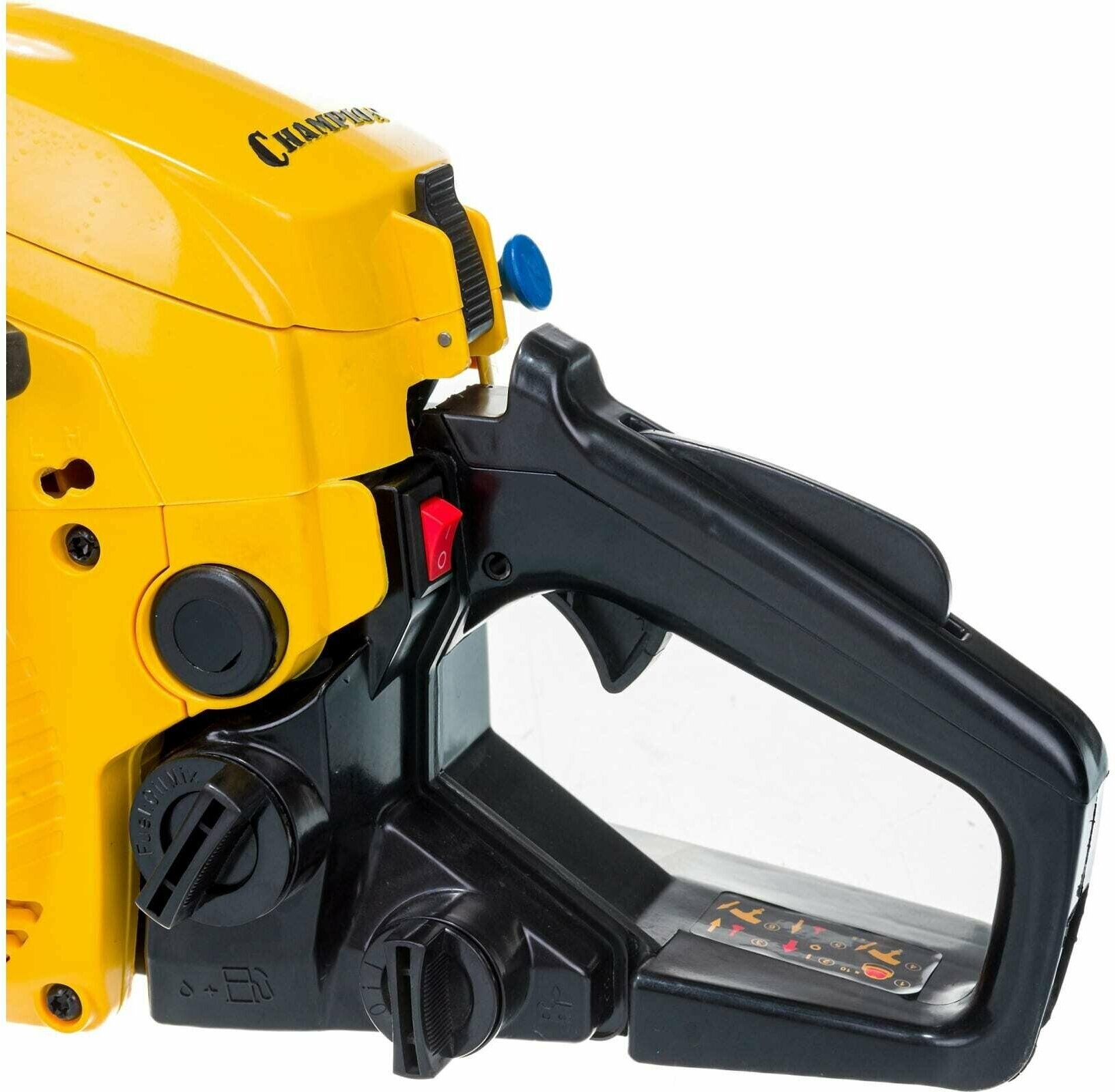 Бензопила Champion 237-16 оборудована центробежным тормозом цепи, останавливающим вращение при откидывании пилы на оператора, а так же стальным цепеуловителем, предохраняющим при обрыве цепи. Воздушный фильтр и свеча находятся под верхней пластиковой заглушкой и доступ к ним максимально упрощен. Бензопила Champion 237-16 – прекрасно справиться не только с распилкой дров и проряжанием крон деревьев, но и поможет спилить ненужное дерево на вашем участке.