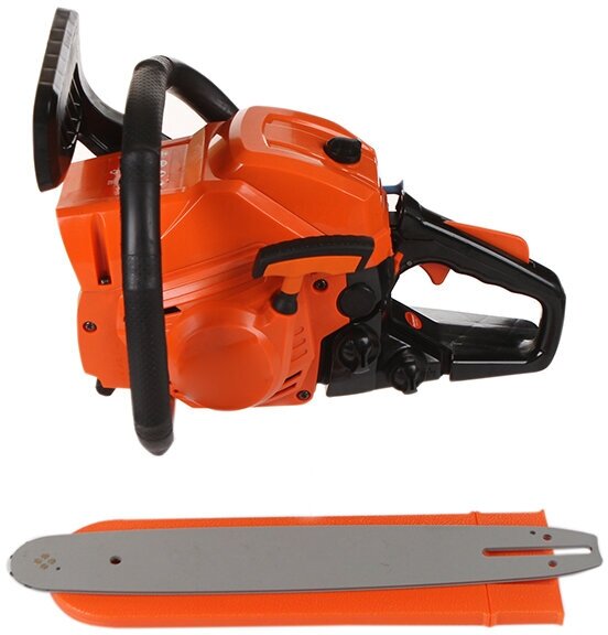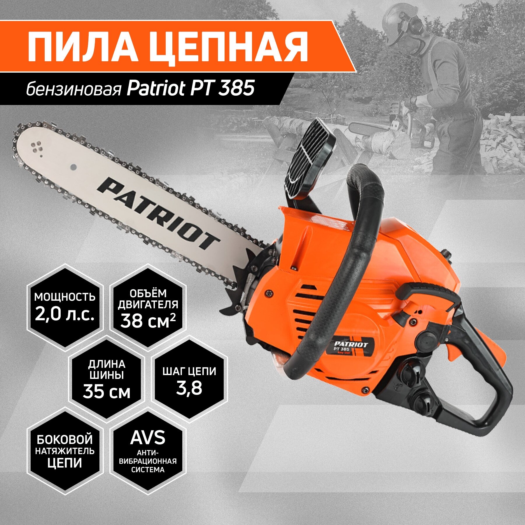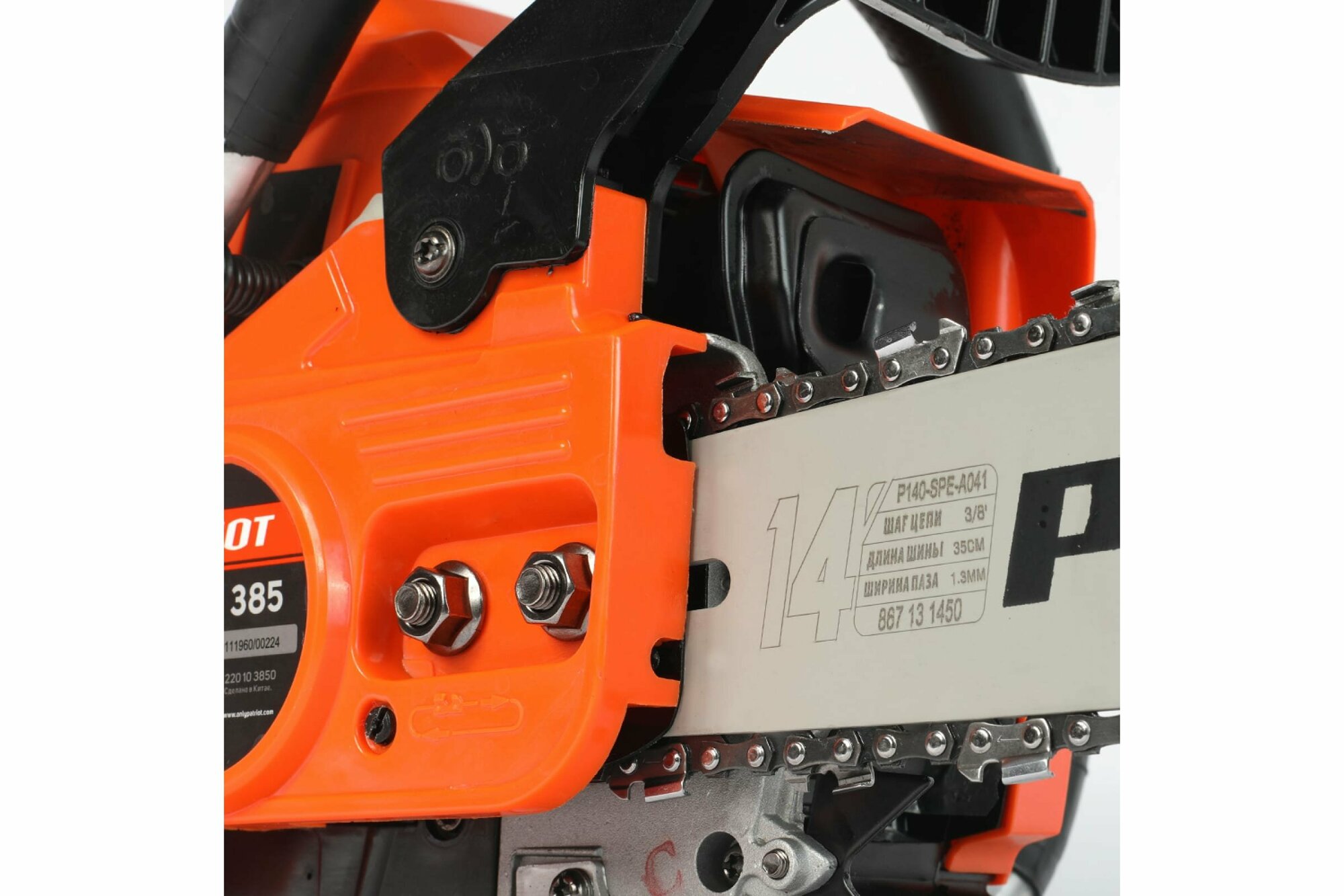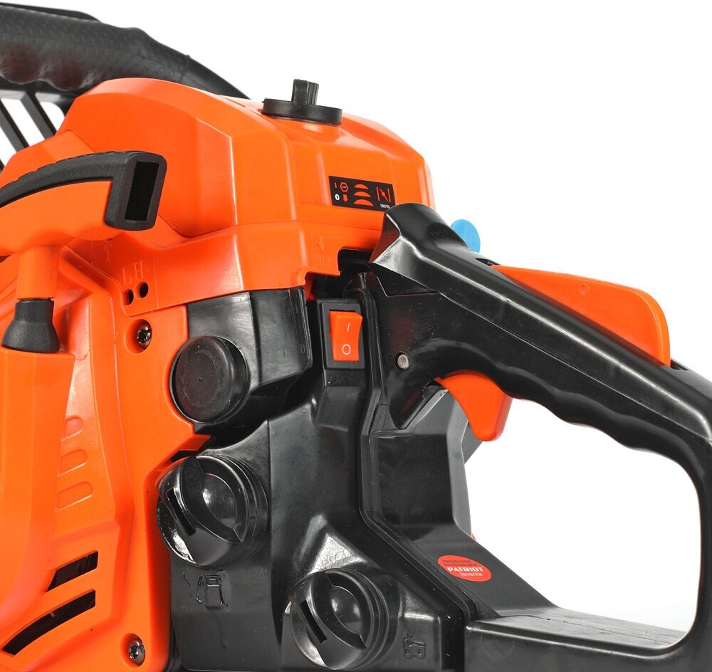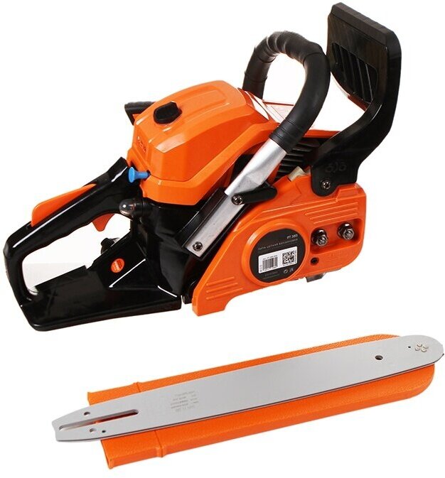 Универсальная бензопила РТ 385 предназначена для использования на садовом участке. Практичная, простая в обслуживании бензопила, незаменима для распиловки дров среднего диаметра. Надежный 2Т двигатель, передовая система антивибрации, сбалансированная конструкция и эргономичная рукоятка управления обеспечат удобство при эксплуатации и точный распил. Боковой натяжитель цепи позволит оператору контролировать натяжение цепи. Легкий доступ к воздушному фильтру и свече зажигания позволяют проводить регулярное техническое обслуживание без необходимости обращения в сервисный центр. Пила оборудована автоматической системой смазки цепи, которая не даст перегреться рабочим частям пилы и предохранит их от преждевременного износа и коррозии. Кроме того, система смазки имеет возможность регулировки количества подаваемого масла на цепь в зависимости от условий работы и типа древесины. В комплекте поставки - емкость для смешивания топливной смеси, напильник для заточки цепи, необходимый для обслуживания набор инструмента. объем двигателя 38сс, мощность 2.0 л. с Шина 14" (35см) цепь 3/8 1,3 (050) 52/53 звена объем маслян. 170 мл топлив. бака, 300 мл свеча зажигания, Torch L7T обороты холостого хода, 3000+-300. скорость вращ. Цепи 20м/с габариты в упак 0,43м*0,25м*0,28м тактность двигателя 2 Цепь - арт. 862381352; шина - арт. 867131450