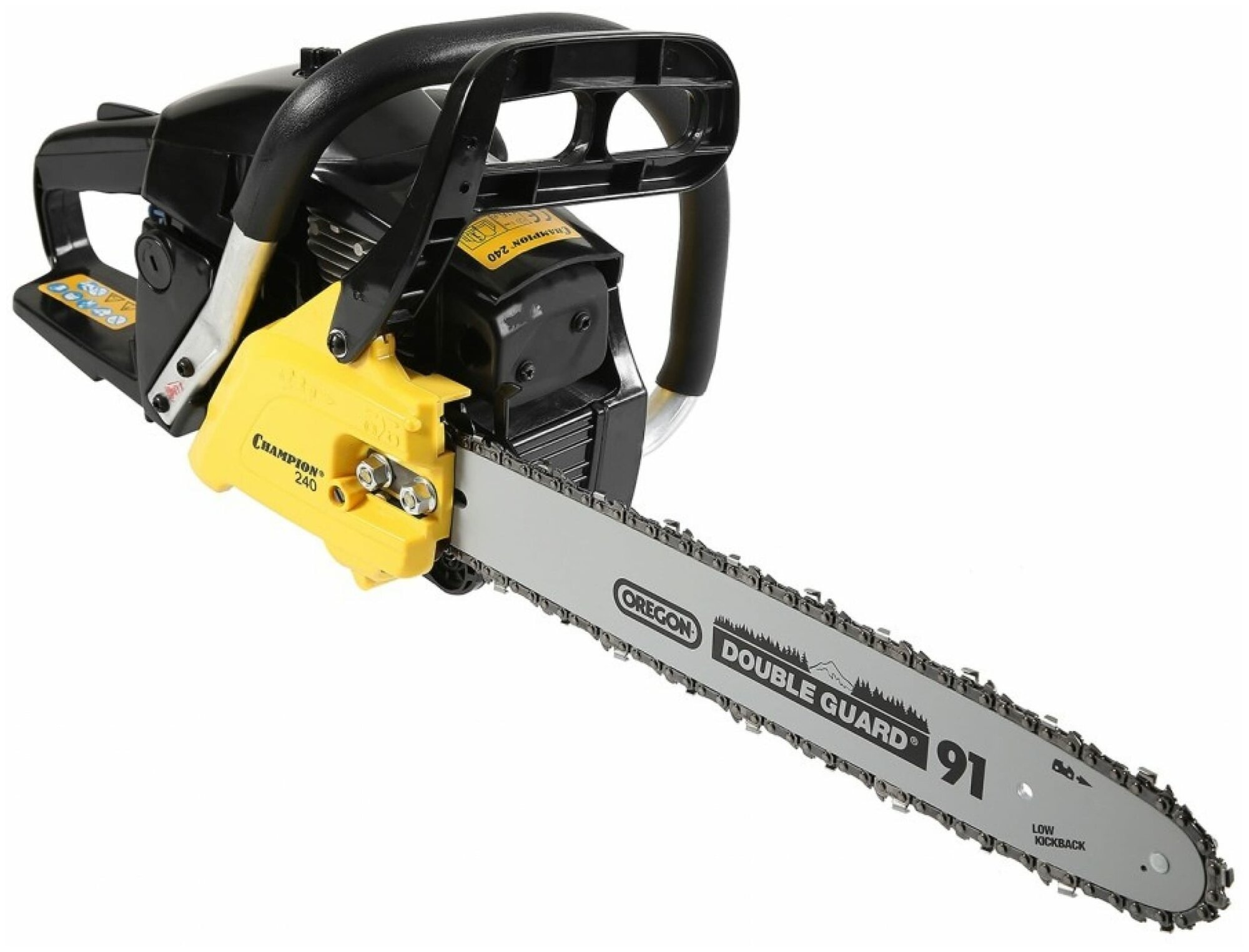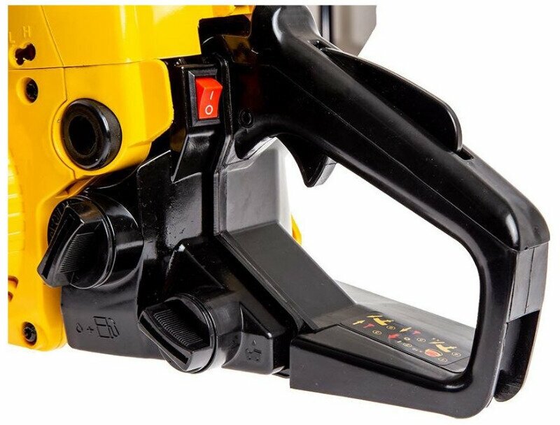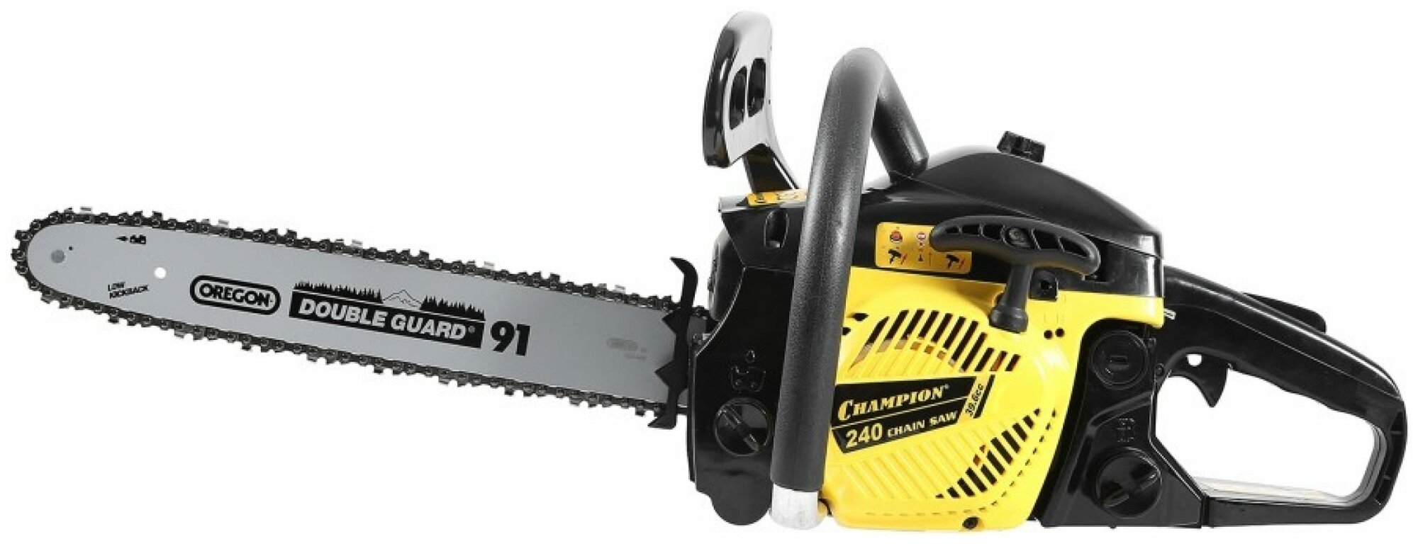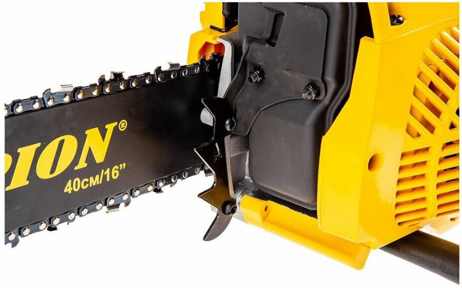 Бензопила Champion 241-16 имеет легкий доступ к фильтру и свече зажигания, а так же оборудована воздушной заслонкой, позволяющей выбирать режим запуска в разных температурных режимах. За безопасность пилы отвечает стальной цепеуловитель, защищающий руки при обрыве цепи, а так же центробежный тормоз, останавливающий цепь за 0,5 секунды при отбрасывании пилы вверх. Ведомая звездочка крепиться к шине четырёхточечным клепом, увеличивая ресурс шины. Бензопила Champion 241-16 подойдет для заготовки дров на зиму, строительстве бани или сарая, а так же опилки сухих веток с крон деревьев.