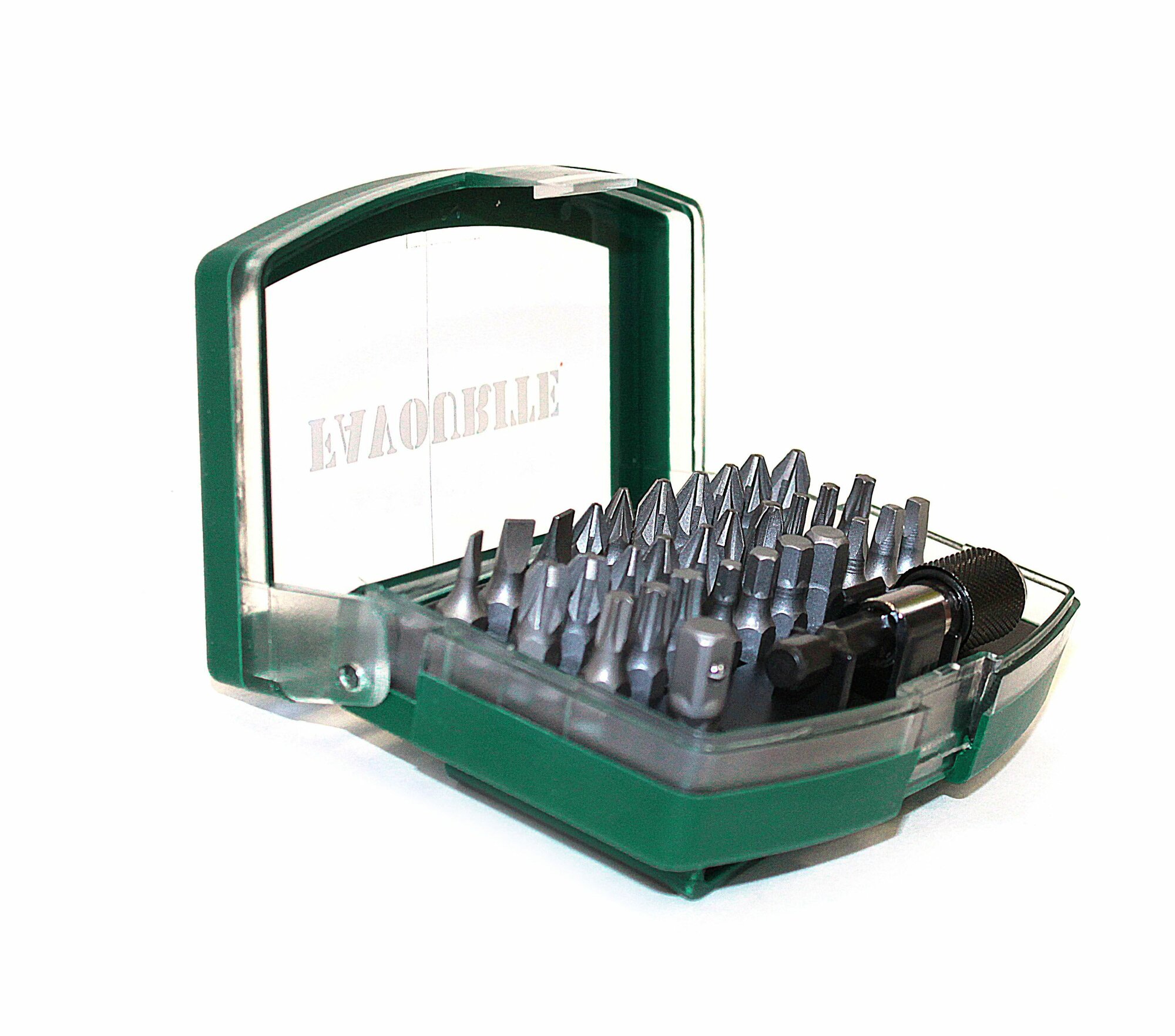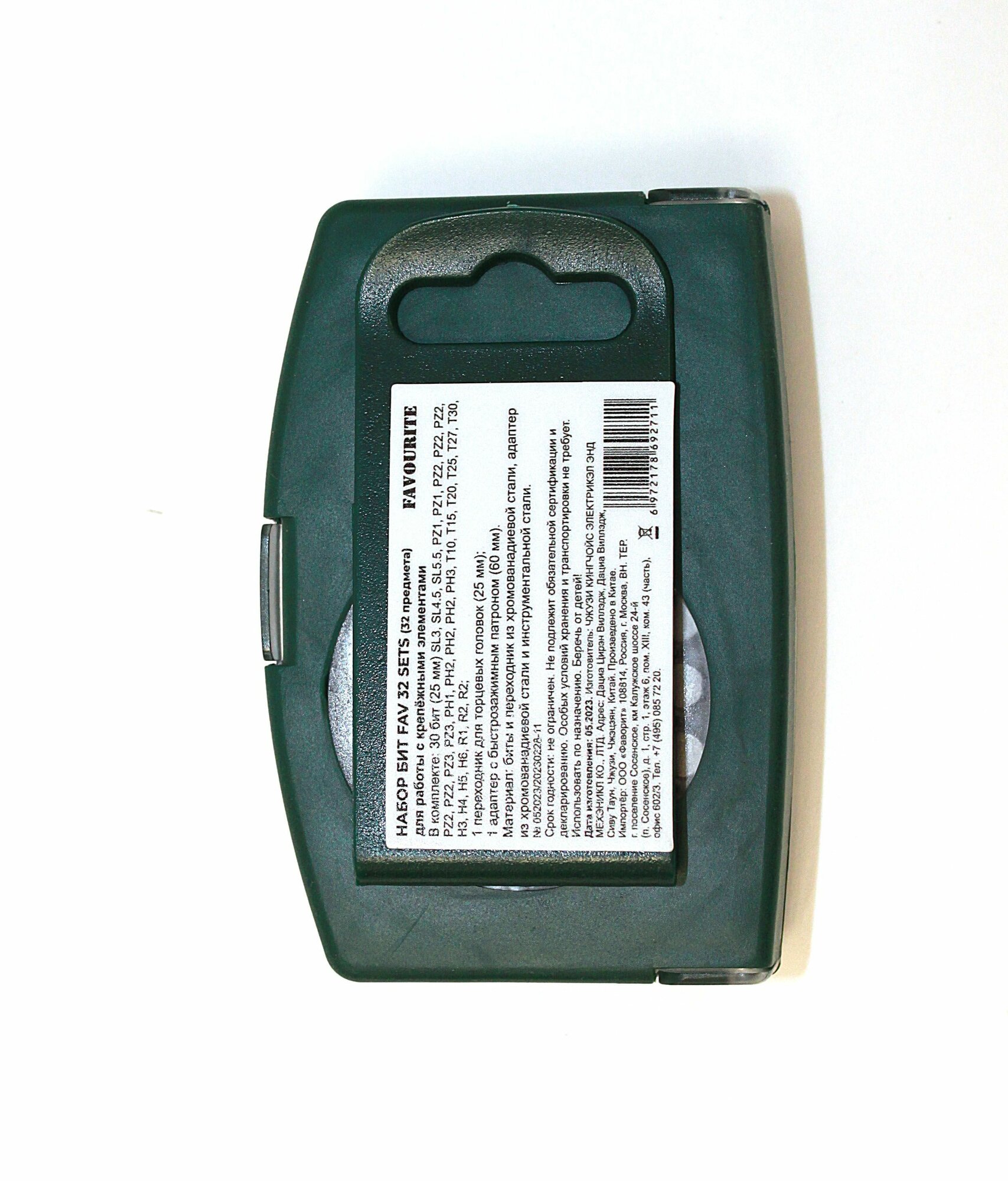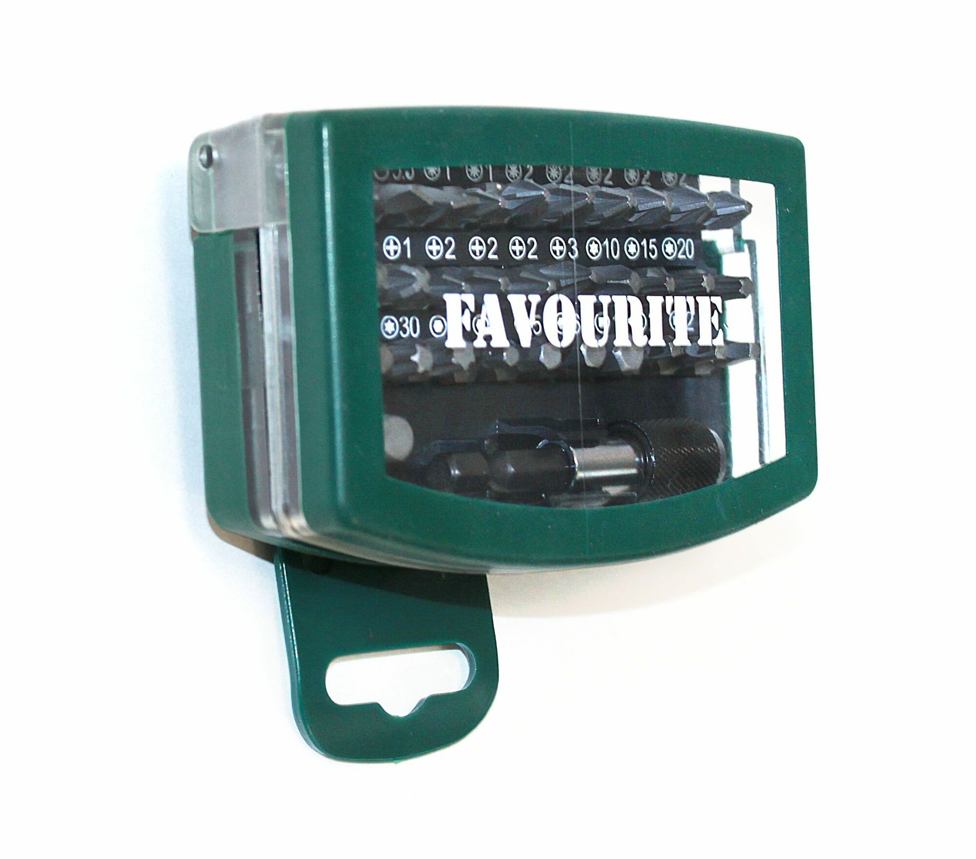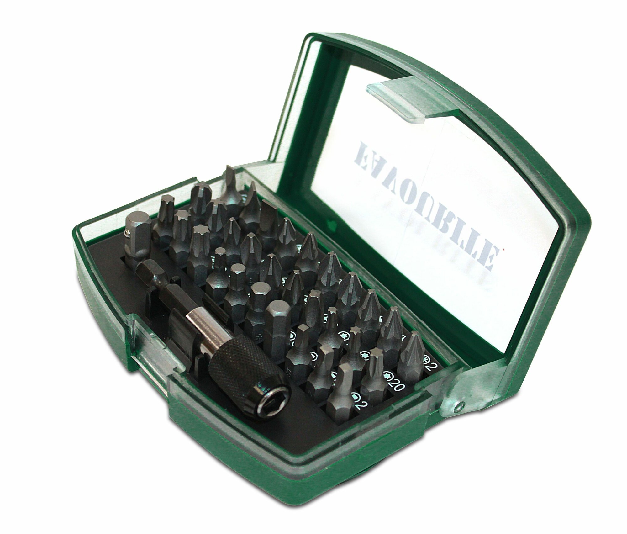 Набор бит FAV 32 SETS представляет собой набор бит для использования с электроинструментами. Он включает в себя различные размеры и типы бит, такие как плоские, крестообразные, шестигранные и торцевые биты. Набор обычно используется для различных задач, таких как закручивание и откручивание винтов и шурупов. Электроинструменты, совместимые с набором, включают дрели, шуруповерты и другие устройства