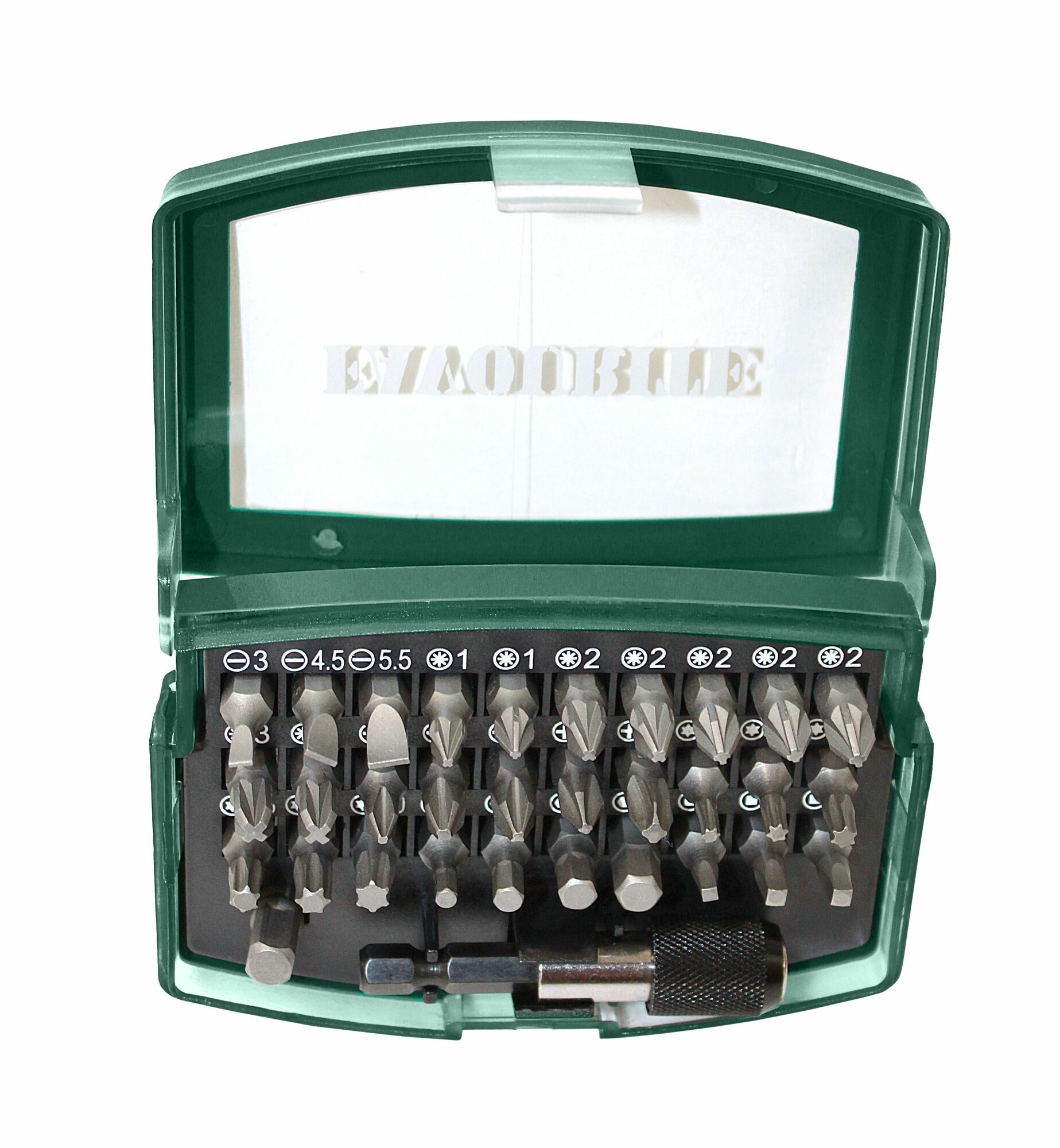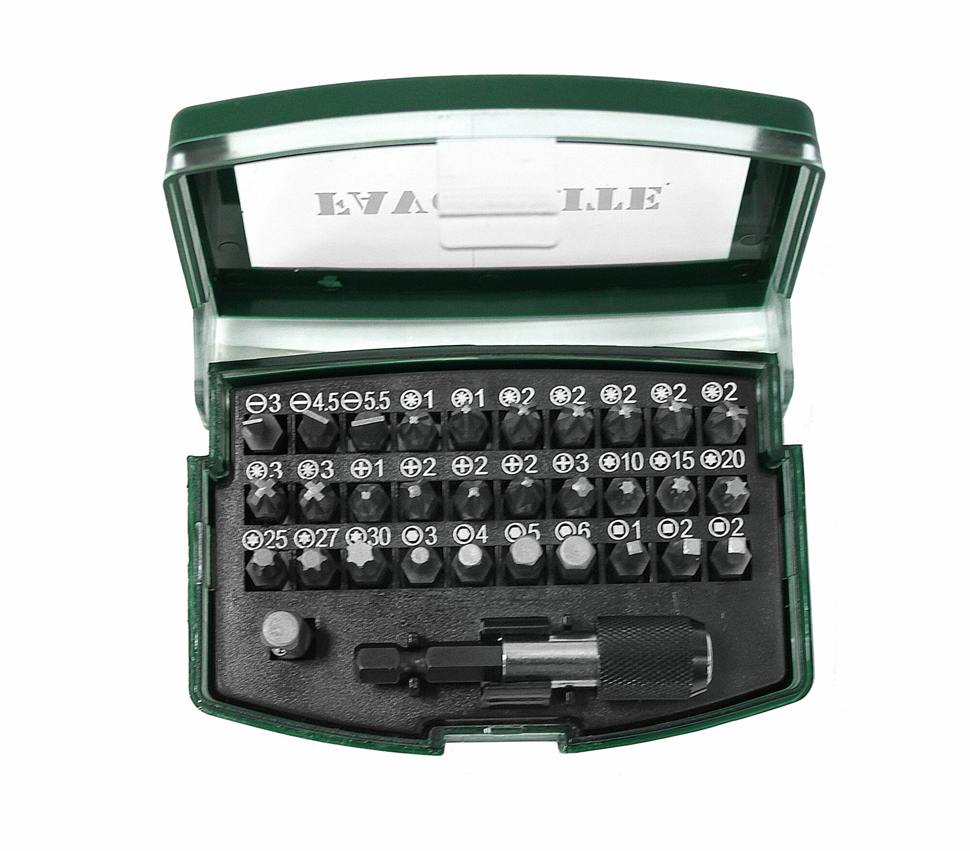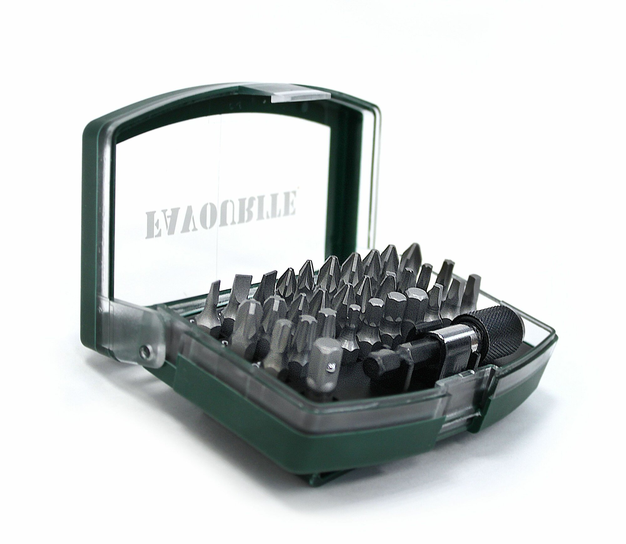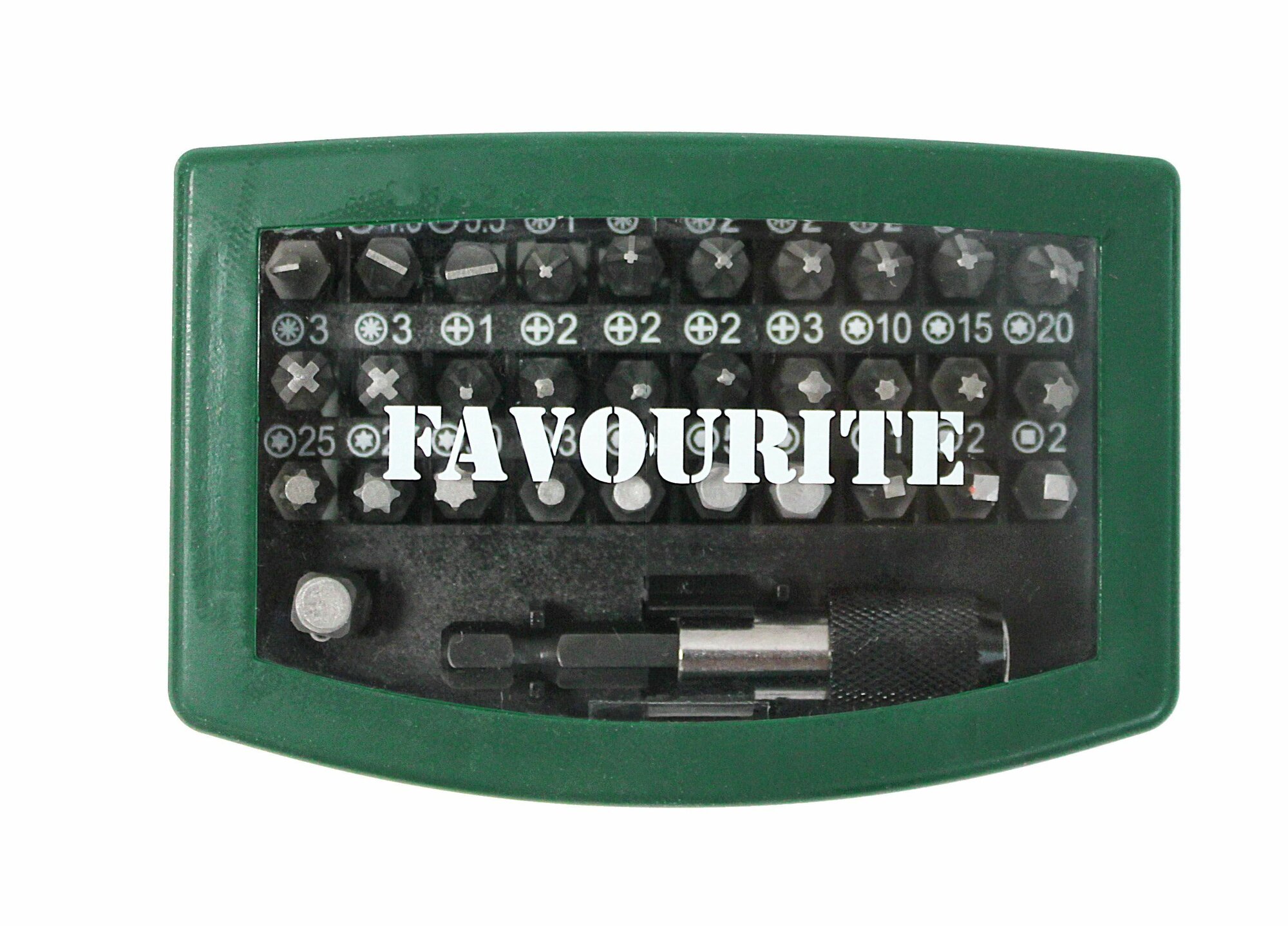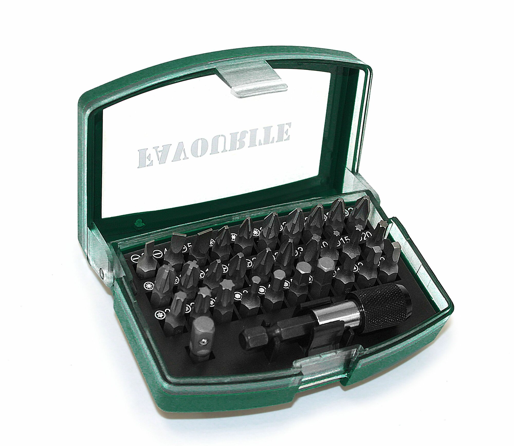 Набор бит FAV 32 SETS представляет собой набор бит для использования с электроинструментами. Он включает в себя различные размеры и типы бит, такие как плоские, крестообразные, шестигранные и торцевые биты. Набор обычно используется для различных задач, таких как закручивание и откручивание винтов и шурупов. Электроинструменты, совместимые с набором, включают дрели, шуруповерты и другие устройства