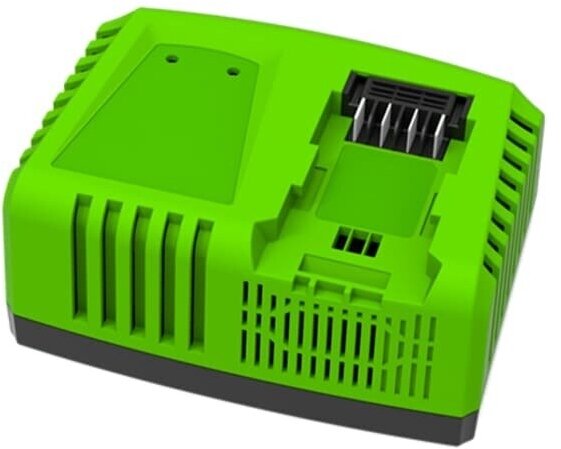 Быстрое зарядное устройство G40UC55 Greenworks 2945107 заряжает в 2 раза быстрее, чем обычная зарядка! Подходит для 2 Ач и 4 Ач аккумуляторов серии Greenworks 40V.