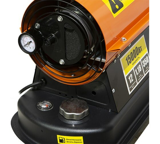 Дизельная тепловая пушка Sturm! DKH15 , имеет тепловую мощность 15кВт предназначена для обогрева производственных помещений, складов и ангаров, строительных площадок и павильонов. Также ее используют на строительных площадках для просушивания стен, разморозки траншей, подогрева бетона. Во время арктических экспедиций дизельные тепловые пушки также часто выступают генератором тепла. Тепловая пушка отличается высокой производительностью 350 м3/ч при экономичном расходе топлива 1,18 л/ч. Полного бака 12 л хватает до 10 часов работы без дозаправки.