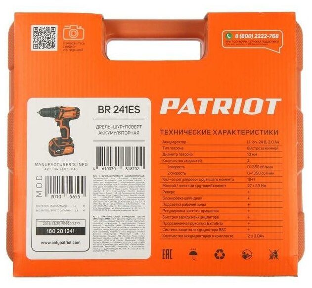 Аккумуляторная дрель-шуруповерт PATRIOT BR 241 ES подходит для выполнения широкого спектра задач, как для домашних дел, так и для работы в мастерской. С ее помощью легко просверлить отверстия в металле, пластике, древесине или мдф, а также для работы с крепежом, даже больших диаметров.