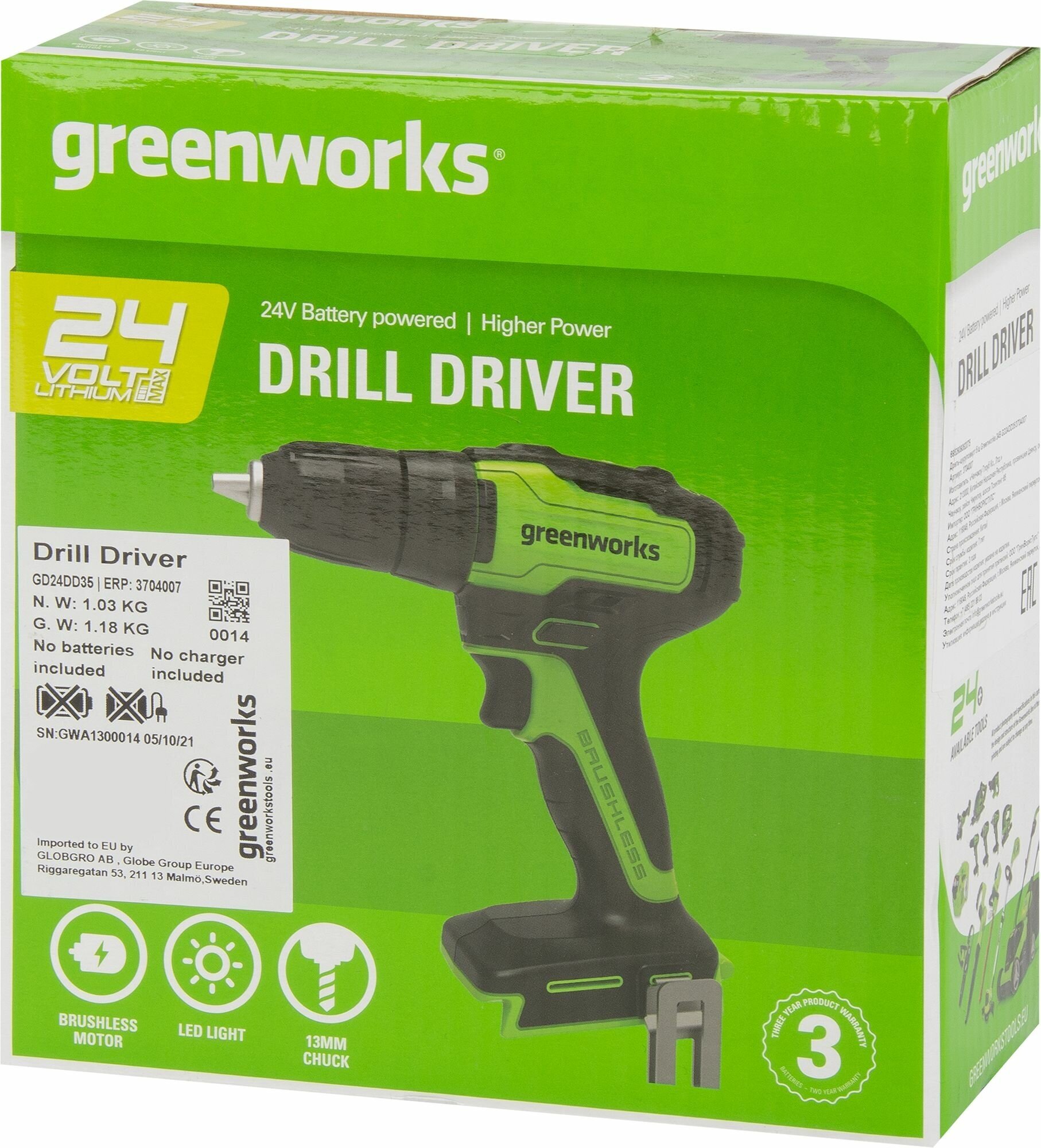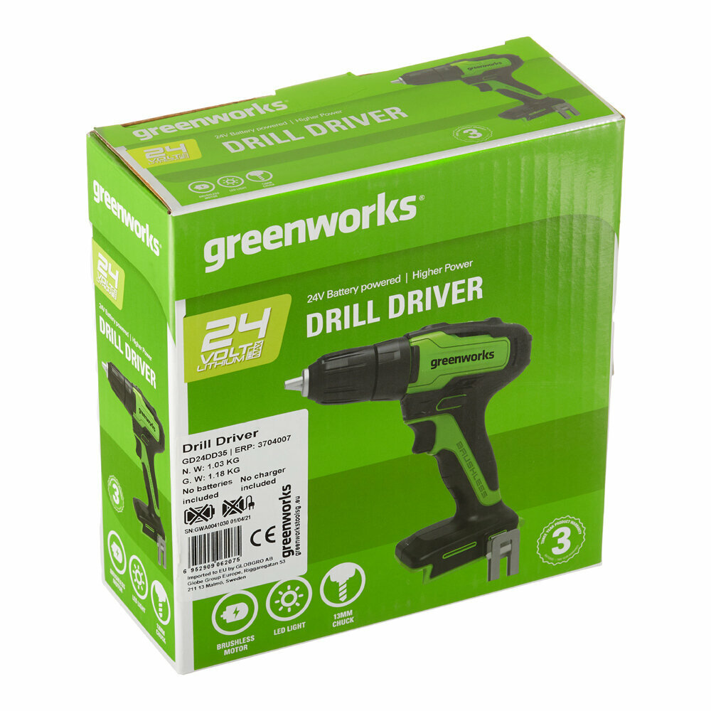 Аккумуляторная дрель-шуруповерт GreenWorks GD24DD35 3704007 предназначена для безударного сверления и закручивания/откручивания шурупов.