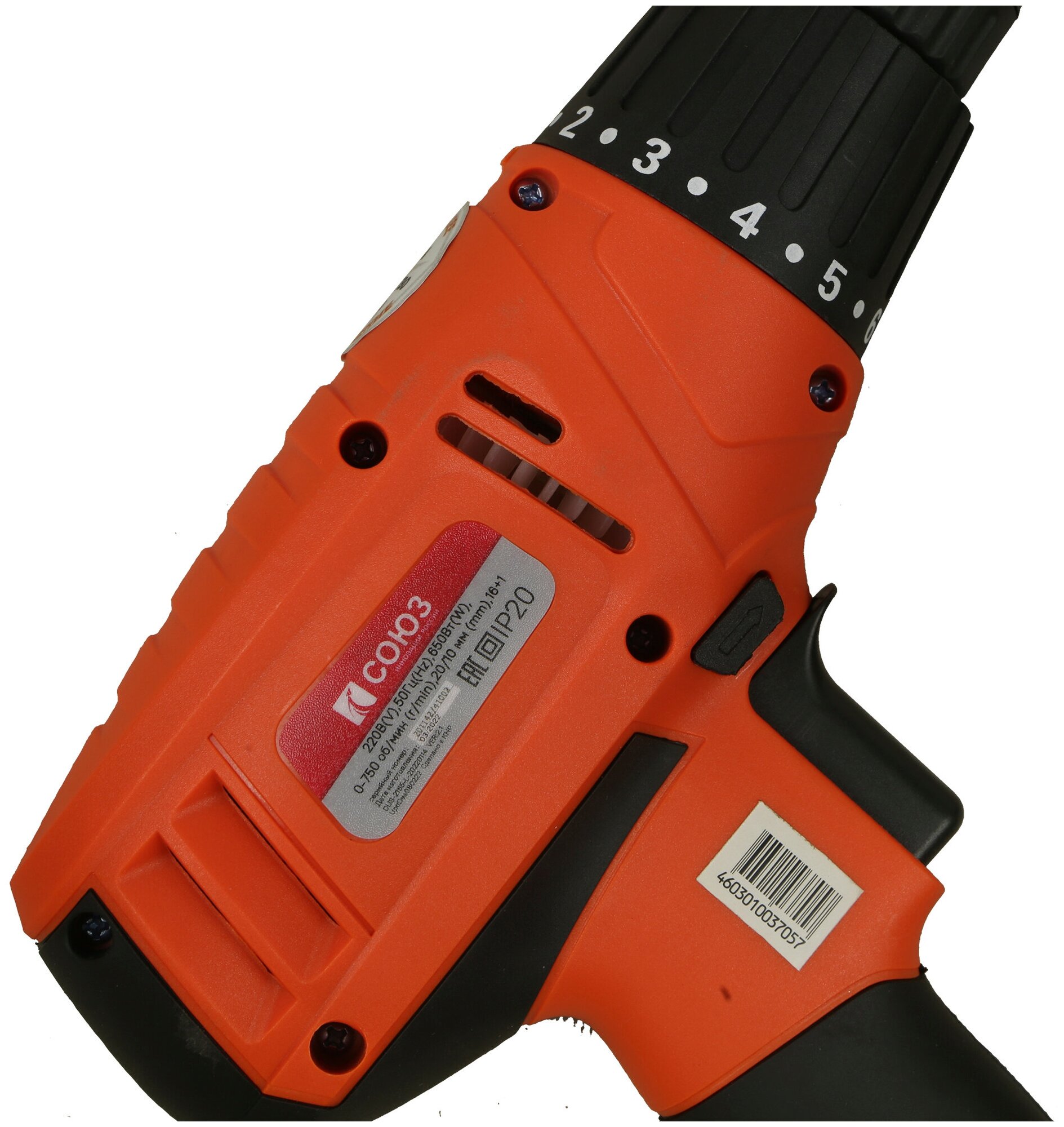 Дрель-шуруповерт электрическая СОЮЗ, 650Вт, 0-750 об/мин, РЕГ ОБОР, б/заж патрон 10мм