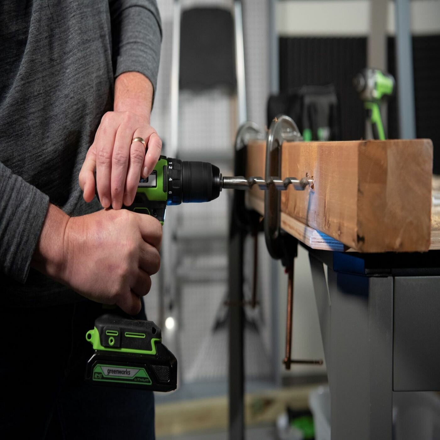 Дрель-шуруповерт Greenworks GD24DD60 оснащена мощным аккумулятором 24 В и работает в 3 режимах: сверление с ударом, сверление без удара и работа с крепежом. Инструмент подходит для использования как любителями, так и профессионалами.