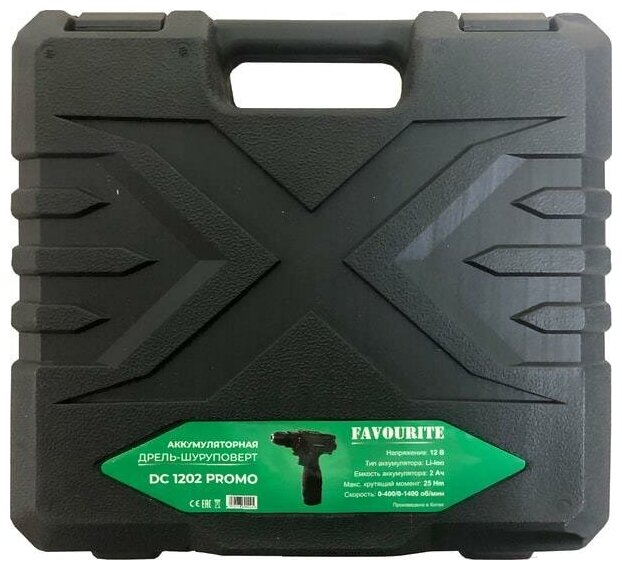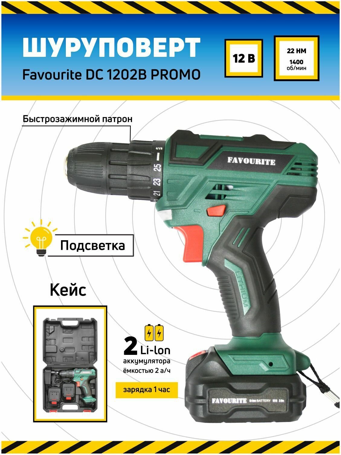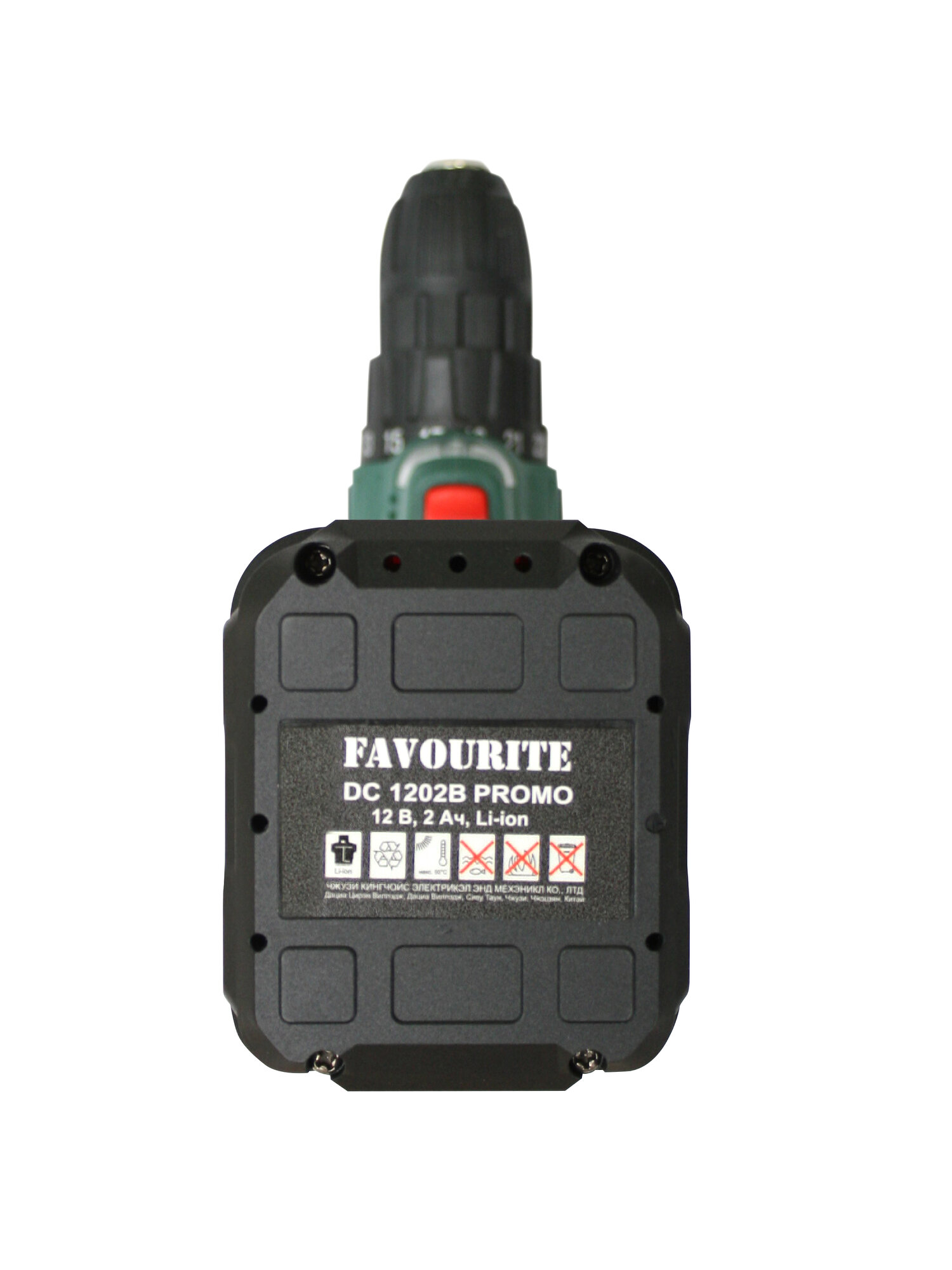 DC 1202B PROMO АКК. Дрель-шуруповёрт 12В, 2АЧ, 22НМ LI-ION FAVOURITE. Аккумуляторная технология избавляет оператора от необходимости следить за шнуром питания