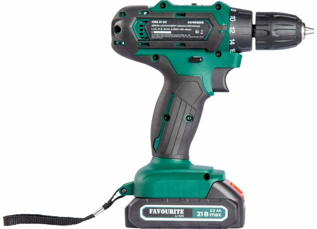 Бесщеточная ударная дрель-шуруповерт FAVOURITE OBS 21 DC 100N PROF предназначена для сверления отверстий в различных материалах, а так же для закручивания/откручивания крепёжных элементов Быстрозажимной металлический патрон обеспечивает максимально простую замену оснастки. Бесщеточный двигатель Brushless обладает высоким крутящим моментом и высоким КПД. Технические характеристики Тип двигателя бесщеточный Max крутящий момент 100 Нм Мягк.вращ. момент 100 Нм Тип аккумулятора Li-Ion Емкость аккумулятора 4 А*ч Напряжение аккумулятора 21 В Устройство аккумулятора слайдер Размер зажимаемой оснастки 13 мм Мах диаметр сверления (дерево) 65 мм Max диаметр сверления (металл) 13 мм Наличие удара есть Ленточные (магазинные) нет Наличие реверса да Наличие подсветки да Тип патрона быстрозажимной Блокировка шпинделя да Частота вращения шпинделя 2000 об/мин Max частота вращения шпинделя 2000 об/мин Число ступеней крутящего момента 20+1+1 Количество аккумуляторов в комплекте 1 Зарядное устройство в комплекте есть Дополнительная рукоятка да Наличие фонаря в комплекте нет Вес нетто 3.5 кг Тип аккумуляторный Серия аккумулятора OBS Съемный патрон нет Крепление на ремень да