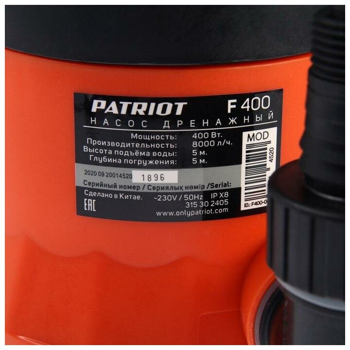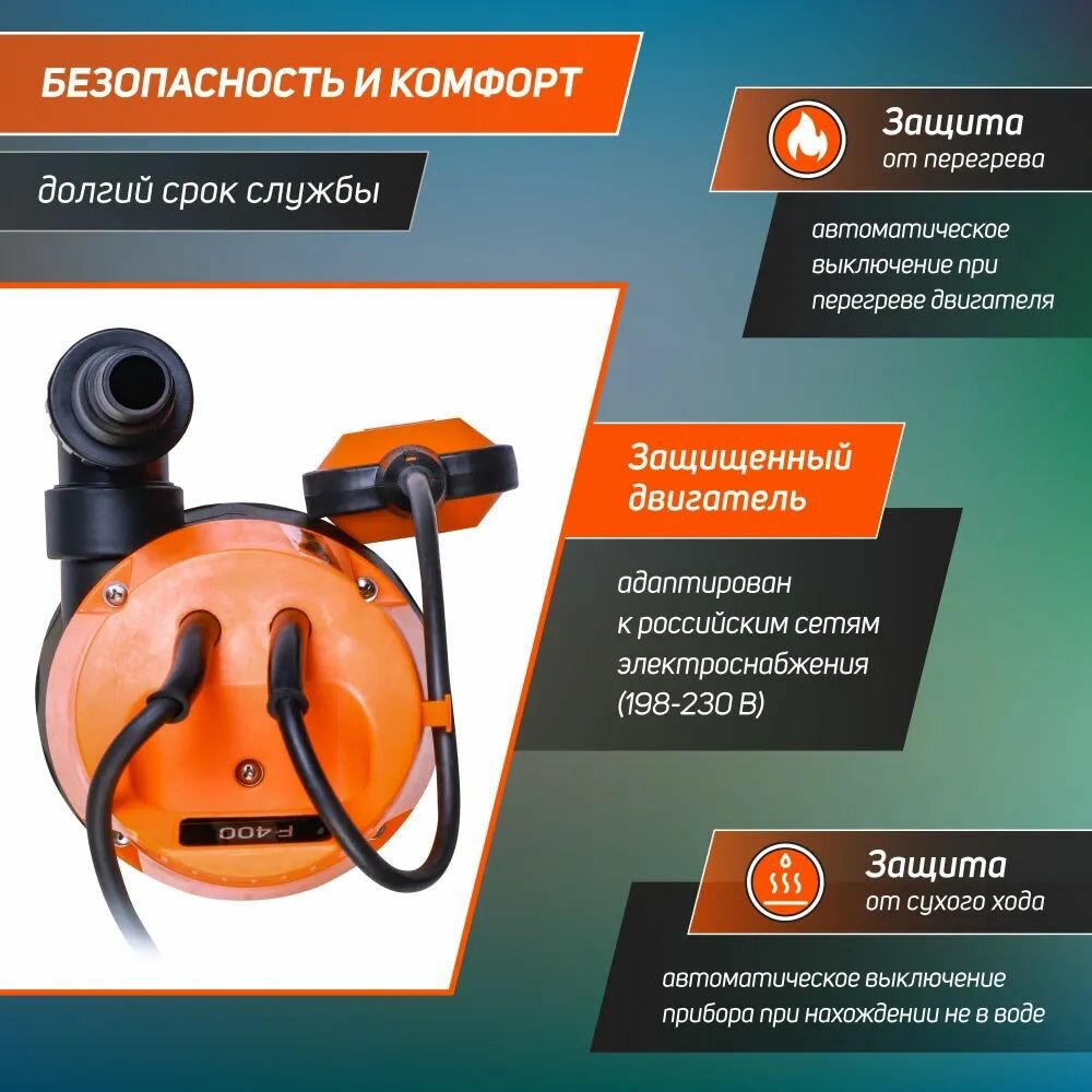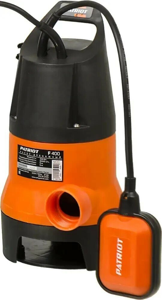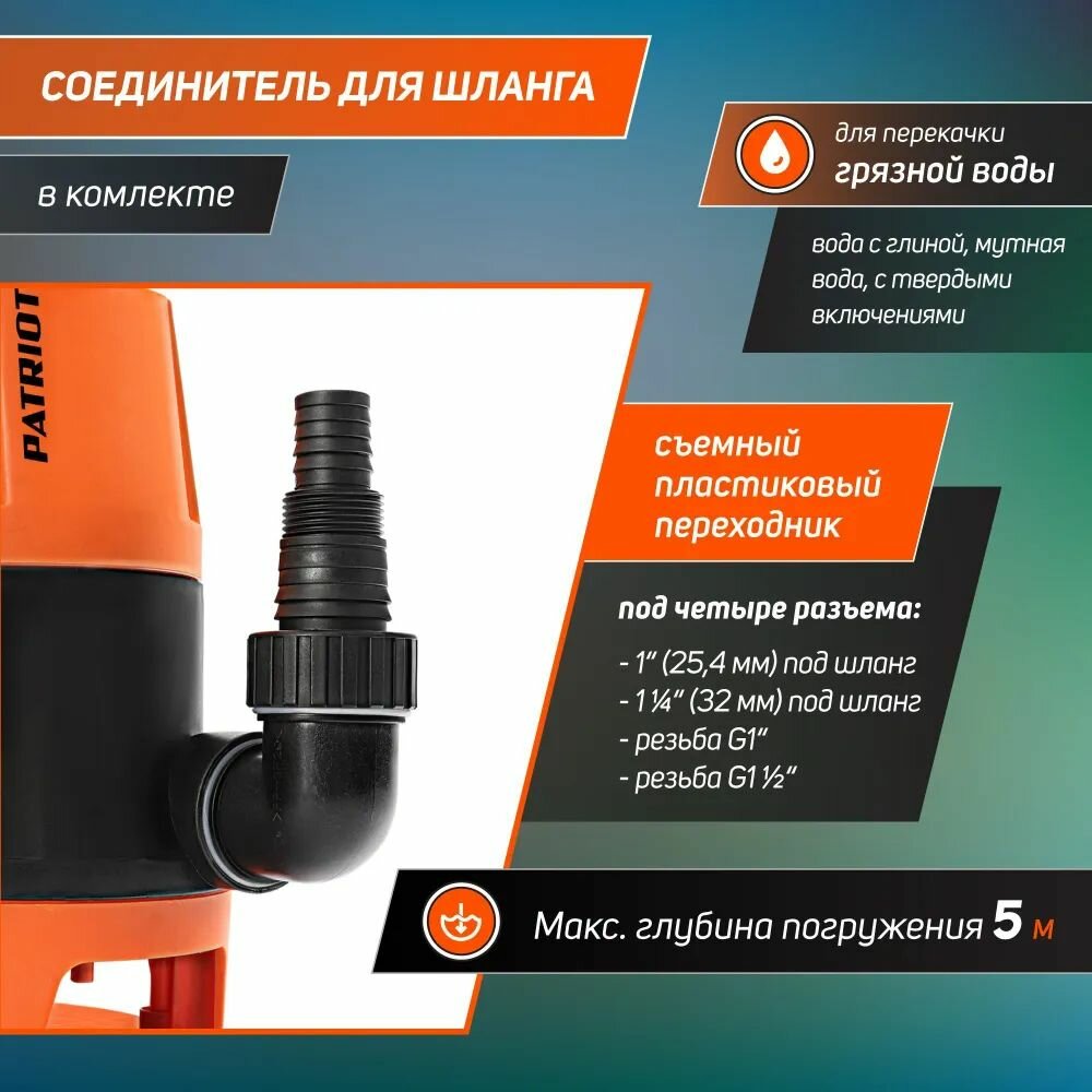 Производительность, л/час - 8000 Макс. напор, м - 5 Глубина погружения / всасывания, м - 5 Мощность двигателя, кВт - 0,4 Длина кабеля, м - 7 Допустимая температура жидкости, °С - 35 Допустимый диаметр твердых частиц, мм - 35 Материал корпуса - пластик Защиты от перегрева - Да Соединитель в комплекте - елочка 1; елочка 1 1/4; елочка 1 1/2 Качество воды - грязная Защита от сухого хода - Да