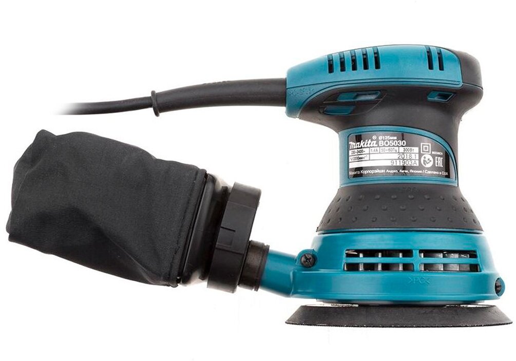 Эксцентриковая шлифмашина Makita BO 5030 предназначена для работы с деталями, которые имеют плоскую изогнутую поверхность. Двигатель мощностью 300 Вт и большая амплитуда колебаний в 2,8 мм позволят выполнить даже самую тяжелую работу. Оснащена системой пылеудаления с возможностью подключения пылесоса, поэтому рабочая зона остается чистой. Эргономичный прорезиненный корпус гасит вибрацию, что позволяет более точно контролировать инструмент. Диаметр шлифовальной пластины 123 мм; Особенности Makita BO5030 Эргономичный корпус Прорезиненный корпус позволяет лучше контролировать инструмент и снижает действие вибрации на руки оператора. Чистота и здоровье Во время работы пыль попадает в мешок, за счет чего сохраняется чистота рабочей зоны и происходит защита легких. Показать все Скрыть Технические характеристики Makita BO5030 Мощность, Вт 300 Напряжение, В Напряжение – характеристика параметров электросети, от которой происходит получение энергии для работы шлифмашины. Стандартным для России является напряжение в 220В, однако, устройства разных мировых производителей могут иметь значения, отличающиеся от этого. Поэтому, на величину напряжения стоит обращать внимание при покупке или в процессе работы с такими устройствами, требующими нестандартного напряжения, использовать адаптирующие устройства. При питании от автономного электроустройства – например, генератора энергии, требуется соблюдение оптимального показателя напряжения. Это обезопасит устройства от некорректной работы. 220 Диаметр диска, мм 125 Возможность подключения к пылесосу В ходе шлифовальных работ образуется значительное количество древесной пыли, которая не только повышает износ шлифовальной оснастки, ухудшает качество шлифовки, но и вредит здоровью пользователя. В следствие чего, своевременная уборка отходов шлифования просто необходима. Наиболее быструю качественную уборку древесной пыли обеспечивает пылесос, поэтому некоторые модели вибрационных шлифмашин оснащены специальным патрубком для его подключения. да Диаметр патрубка пылесоса, мм 19 Плавный пуск Плавный пуск, или система ограничения пускового тока, позволяет ограничить пусковой ток до 16 А. Это нужно для того, чтобы подключать шлифмашину к бытовой электросети без ущерба для нее. нет Электр. регулировка оборотов Регулировка оборотов шлифмашины позволяет оптимально настроить ее на шлифовку различных по плотности материалов. Это необходимая функция для тех, кому придется работать не только с деревянными, но и с пластиковыми и металлическими поверхностями. нет Min число оборотов, об/мин 12000 Амплитуда колебаний, мм Одна из основных характеристик шлифмашин — амплитуда колебаний рабочей поверхности. Амплитуда колебаний шлифмашины может составлять от 2 до 7 мм. Инструмент обеспечивает большую скорость проведения работ, чаще используется для грубой шлифовки. Машины с меньшей амплитудой колебания, как правило, применяют на завершающей стадииработ, для финишной шлифовки. 2,8 Частота колебаний, кол/мин 24000 Количество отверстий 8 Комплектация Шлифмашины могут поставляться в коробке, сумке или кейсе. Коробка — это самый простой и бюджетный вариант. Он подходит для тех, кто заблаговременно решил вопрос хранения и транспортировки. Сумка и кейс более удобны за счет того, что производитель заранее позаботился о том