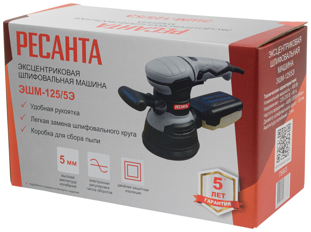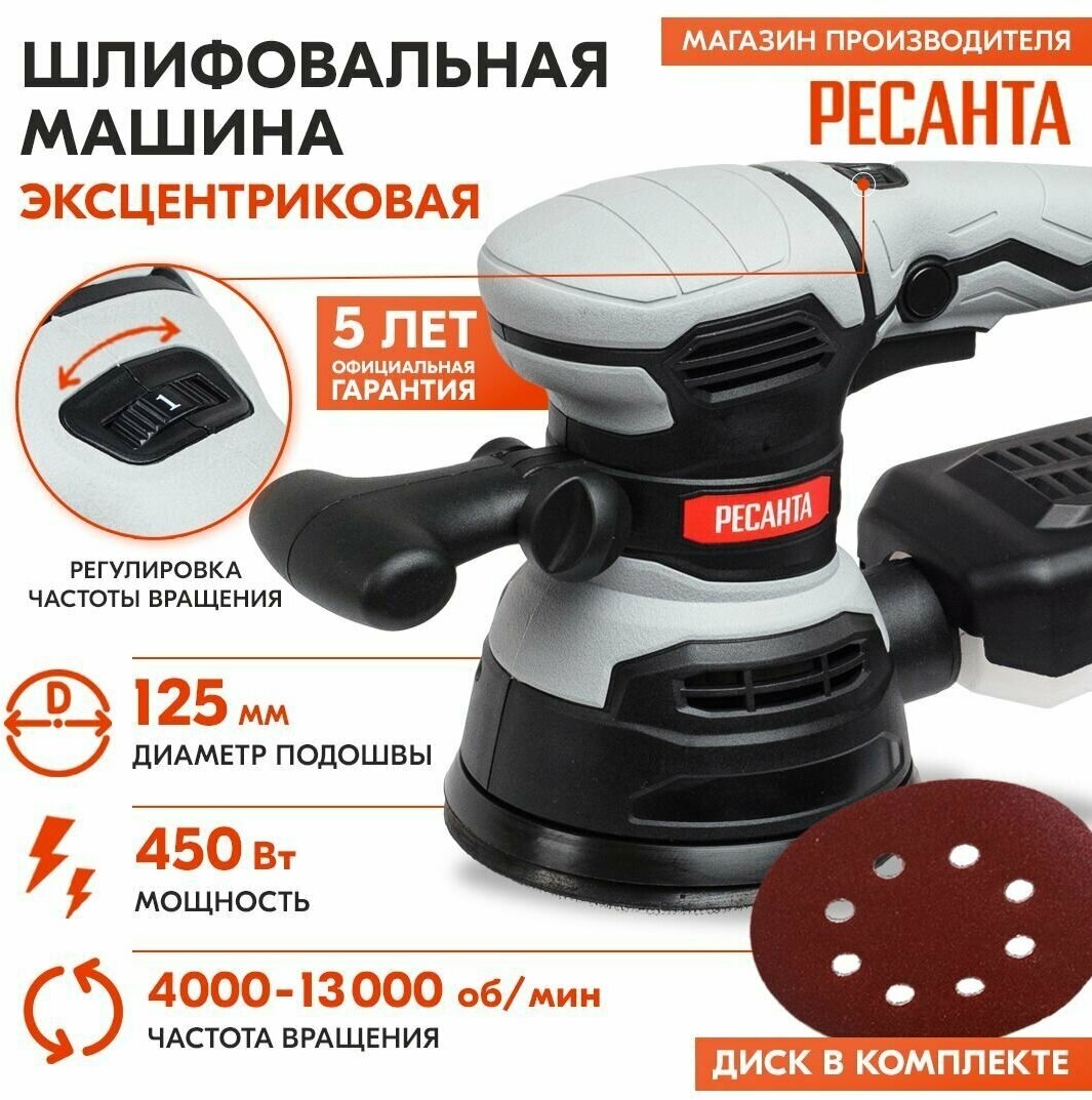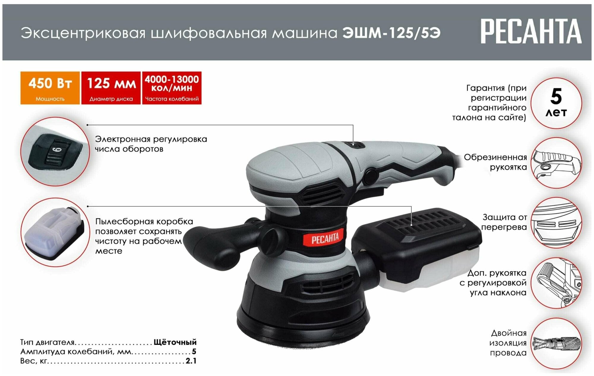 Эксцентриковая шлифовальная машина ЭШМ-125/5Э Ресанта, , Шт
