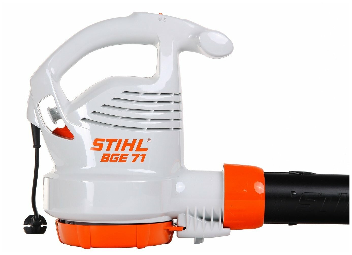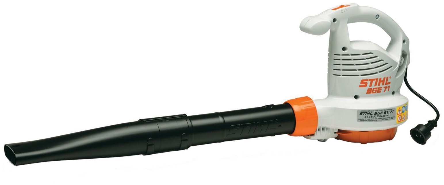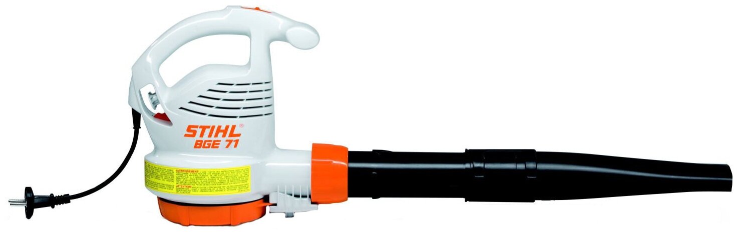 Воздуходувка электрическая Штиль Stihl BGE 71 48110111542. Для очистки средних и малых площадей в непосредственной близости от жилых домов. Плоская насадка, приспособление для крепления сетевого кабеля. С дополнительным всасывающим комплектом, который приобретается отдельно, может использоваться в качестве всасывающего измельчителя. Сверхтихое электрическое воздуходувное устройство Stihl BGE 71, предназначенное для использования в непосредственной близости от жилых домов. Последовательное снижение уровня шума в сочетании с высокой нагнетательной способностью. Электрическое воздуходувное устройства Stihl BGE 71. Мощность и отличный результат. Будь то листья, скошенная трава или сорняки – с помощью мощной электрической воздуходувки Stihl BGE 71 вы без проблем очистите все площади, дорожки и клумбы на Вашем участке. Воздуходувка Stihl BGE 71 проста в обращении и убеждают мощным выдувающим действием и сильной струей воздуха. Электрическое воздуходувное устройство Stihl BGE 71 работает тихо, но очень эффективно. Сдуватель листвы BGE 71 оснащен узкой насадкой для воздуходувной трубы, которая наравне с мощным двигателем отвечает за качество работы инструмента. Электродвигатель воздуходувки мощностью 1100 Вт работает тихо, а также позволяет воздушному потоку развивать скорость до 66 м/c. Воздуходувка Stihl BGE 71 имеет два скоростных режима. Переключатель скоростей расположен на рукоятке инструмента и всегда будет под рукой для быстрого использования. Элементы управления двигателем встроены в эргономичную рукоятку, которая находится точно над серединой корпуса. Управление устройством осуществляется легко и надёжно. Сдуватель оборудован встроенным приспособлением для разгрузки сетевого кабеля, что предотвращает случайное отсоединение вилки при подтягивании кабеля. Воздуходувка Stihl BGE 71 может использоваться с дополнительным комплектом для работы в режиме пылесоса, таким образом устройство может применяться не только для сдува, но и для сборки листвы и прочего мусора. Плоская насадка легко откручивается без использования специального инструмента, и на ее место устанавливается широкая круглая насадка. Воздуходувку электрическую BGE 71 можно переоборудовать в устройство для чистки водосточных желобов с помощью соответствующего комплекта. Для обеспечения безопасной работы оператора в стандартную комплектацию входят защитные очки. Они хорошо обдуваются и имеют широкую боковую защиту. Преимущества воздуходувки электрической Stihl BGE 71: Защитные очки. Для Вашей безопасности в стандартную комплектацию входят защитные очки. Они хорошо обдуваются и имеют широкую боковую защиту. Встроенное приспособление для разгрузки сетевого кабеля от натяжения. Предотвращает случайное отсоединение вилки при подтягивании кабеля. Управление одной рукой. Элементы управления двигателем встроены в рукоятку.
