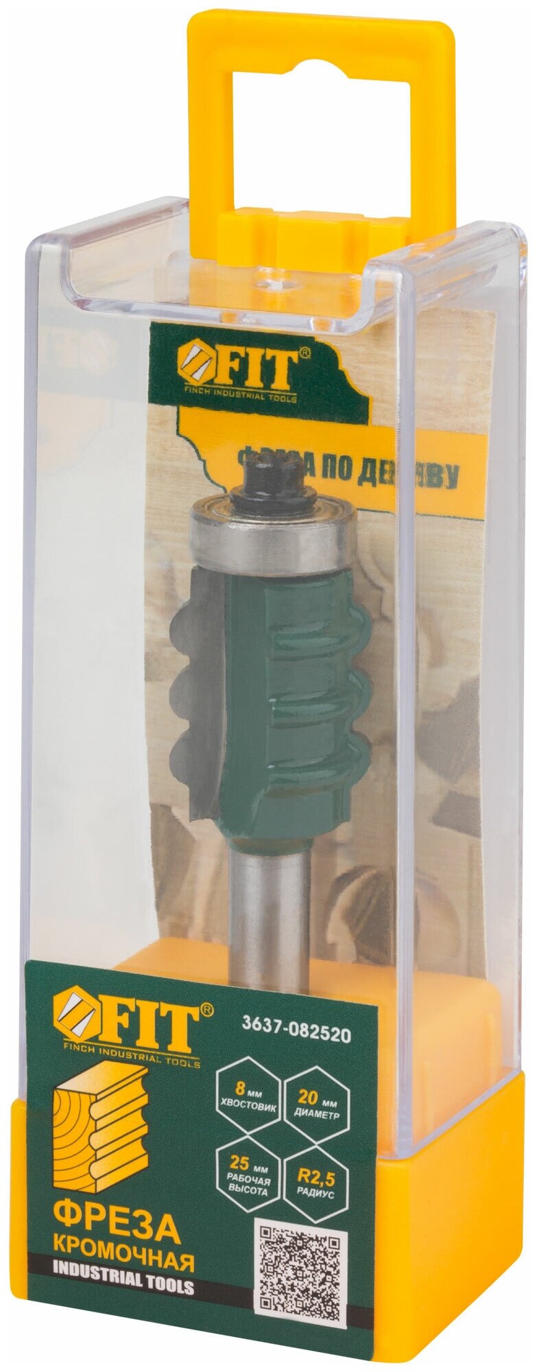 Фреза кромочная фигурная FIT 3637-082520 предназначена для ручных фрезеров и фрезерных станков. Применяется для работ по дереву, обеспечивает фигурную обработку декоративных кромок. Хвостовик – цилиндрический. Оснастка изготовлена из инструментальной стали, оснащена твердосплавными режущими элементами. Фреза обеспечивает эффективную и качественную обработку деталей. Упаковка – пластиковая коробка. Радиус – 2.5 мм. Технические характеристики кромочной фигурной фрезы FIT 3637-082520 Тип профильная Вид концевая Внешний диаметр 20 мм Диаметр хвостовика 8 мм Рабочая высота 25 мм Общая длина 70.3 мм