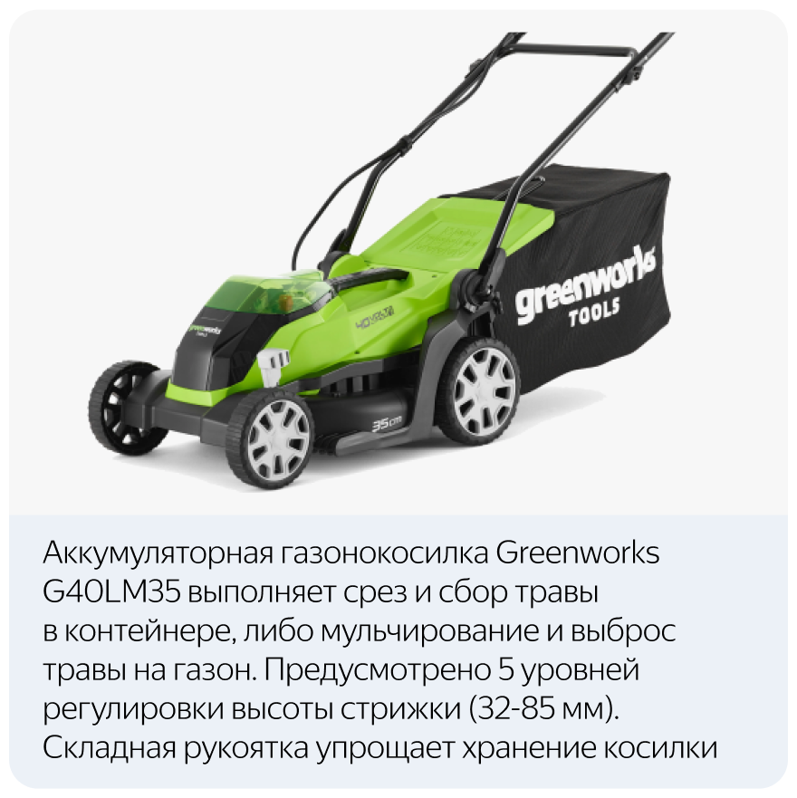 Особенности GreenWorks G40LM35