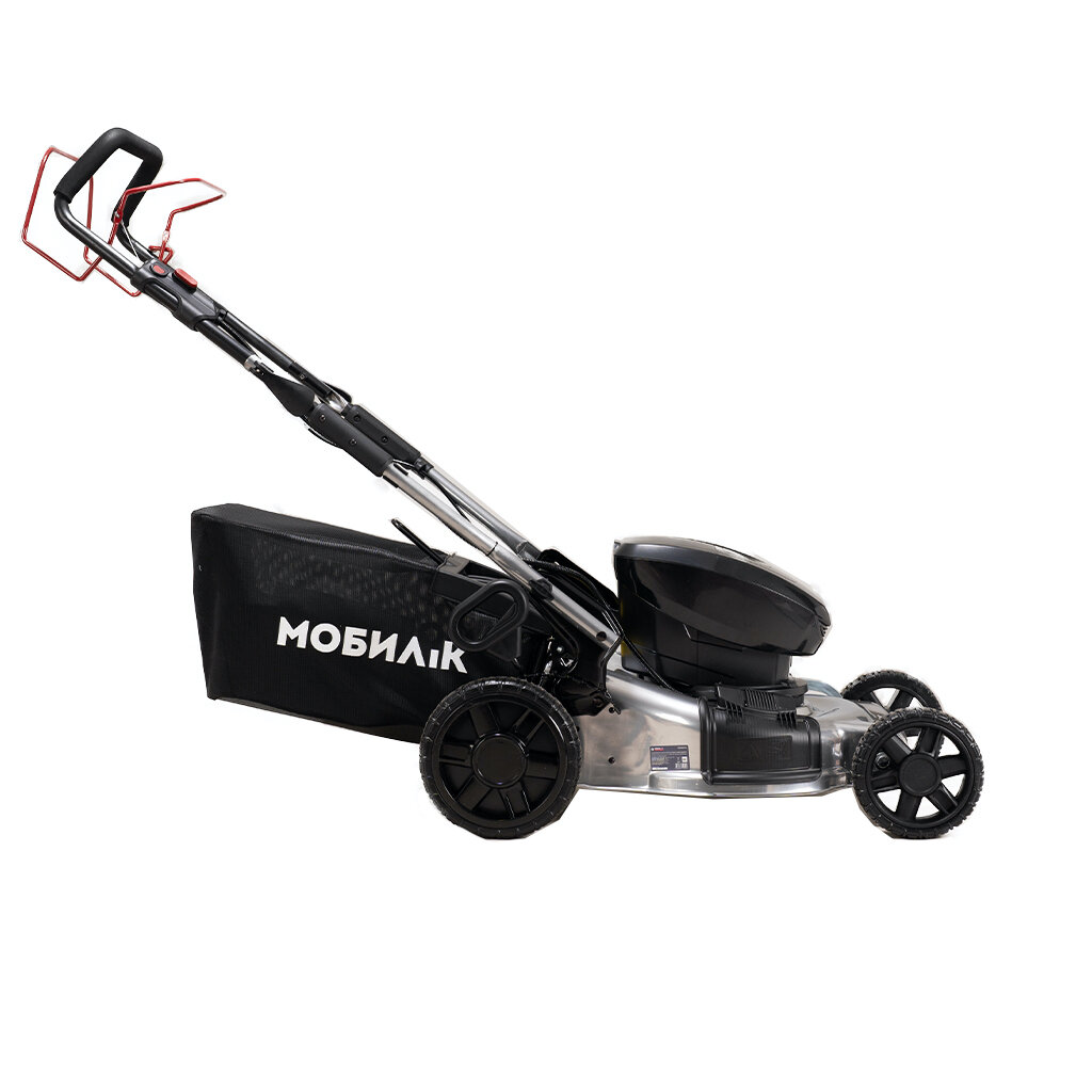 Самоходная аккумуляторная беспроводная газонокосилка мобил К XMA46 комфорт MBK0032168 создана для владельцев загородных домов, ценящих комфорт и производительность. Газонокосилка имеет ширину скашивания 46 см, идеально подходящую для газонов площадью до 1000 м2. Эта косилка работает от двух мощных совместно работающий батарей напряжением 20 Вольт и емкостью 4 Ач, питающих надежный бесщеточный двигатель напряжением 40 Вольт и обеспечивая продолжительное время работы без привязки к розетке электропитания. Вам не нужно толкать газонокосилку - она едет сама, так как снабжена приводом на задние колеса. Газонокосилка обладает большими задними колесами, позволяющими легко и быстро проходить неровности. Центральная регулировка высоты скашивания с металлическим приводом обеспечивает мгновенную перенастройку режимов работы газонокосилки. Присутствует функция мульчирования. Технологии: - 3 в 1: мульчирование, выброс травы на сторону и сбор травы в травосборник! Газонокосилка может собирать траву в травосборник, выкидывать на сторону для последующего сбора либо возвращать на газон в измельченном виде. В комплект электрической газонокосилки входит мульчирующая заглушка, обеспечивающая режим мульчирования. - Отсутствие провода обеспечивает удобство кошения между насаждениями и исключает поражение электрическим током при случайном перерубании сетевого кабеля ножом. - Газонокосилку не нужно толкать перед собой. Она снабжена самоходной функцией и имеет трансмиссию с приводом на задние колеса. - Долговечная стальная дека - залог долгой слюжбы изделия. - Подшипники во всех колесах обеспечивают легкость хода и высокий срок службы. - Центральная регулировка высоты скашивания одним рычагом с металлическим приводом обеспечивает 7 уровней стрижки от 25 до 75 мм. Регулировка положения всех 4-х колес одним рычагом позволяет мгновенно перенастроить высоту скашивания в зависимости от потребности. Металлический привод обеспечивает четкость при переключении режимов. В период активного роста травы возможно устанавливать низкую высоту скашивания для увеличения интервала между кошениями. При жаркой погоде, а также в конце сезона, рекомендуется устанавливать большую высоту скашивания, чтобы избежать выгорания травы. - Регулируемая ручка управления. Механизм крепления рукоятки управления к деке газонокосилки имеет возможность фиксации рукоятки под различными углами. Управлять газонокосилкой с комфортом может оператор любого роста. - Большие задник колеса. Большие задние колеса обеспечивают повышенную проходимость и легкость хода на неровных участках земли. - Вместительный мягкий 55-литровый травосборник позволяет экономить место при хранении. - Мягкая рукоятка, обеспечивающая ухватистость и приятные тактильные ощущения дает возможность управлять косилкой любой рукой. - Цифровой сегментный индикатор заряда, в отличие от распространенных точечных, показывает уровень заряда с точностью до процента, что дает полную информацию о запасе рабочего времени техники. - Аккумуляторы в комплекте: XA240 комфорт, 4Ач - 2 шт. Аккумуляторы имеют сегментный цифровой индикатор, который точно показывает уровень заряда. - Быстрое двойное зарядное устройство в комплекте: XAC28 комфорт. Время зарядки двух аккумуляторов ХА240 комфорт одновременно - 120 мин. Время зарядки 