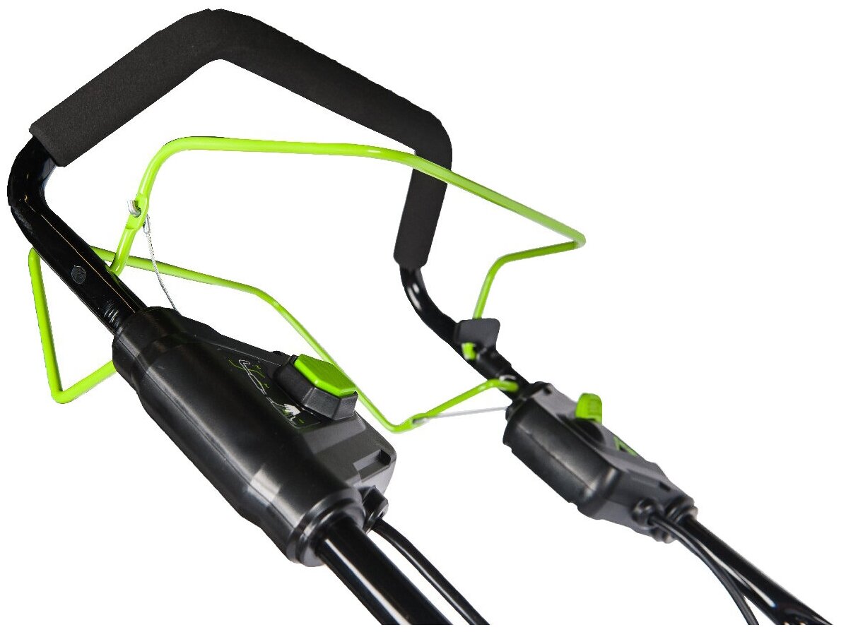 Инструмент запускается одним нажатием кнопки – никаких рывков шнура или сложного старта. Благодаря электродвигателю она работает тихо, без раздражающего шума, и при этом не производит вредных выбросов, делая уход за газоном экологичным и комфортным. Идеальный выбор для тех, кто ценит удобство, чистоту и заботу об окружающей среде.