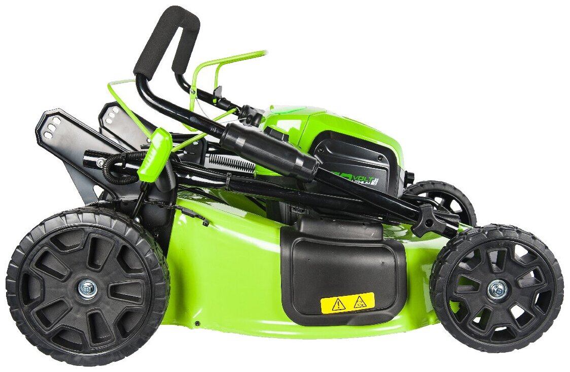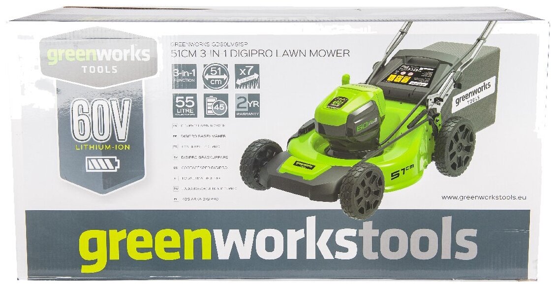 Газонокосилка самоходная, аккумуляторная Greenworks Арт. 2514307, 60V, 51 см, бесщеточная, без АКБ и ЗУ — полноценная замена бензиновому инструменту.