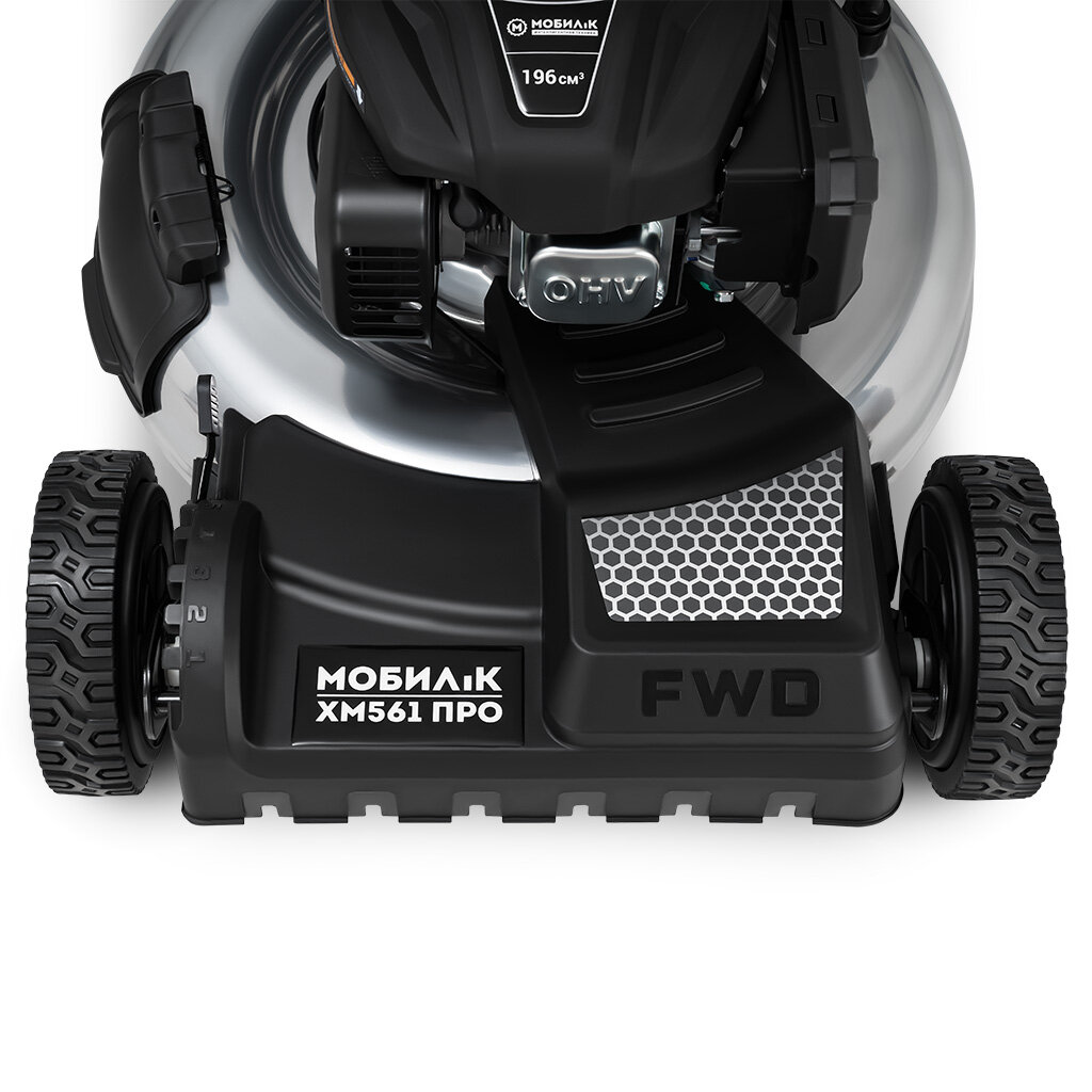 Газонокосилка бензиновая мобил К ХМ561 про с передним приводом подходит для работы как на небольших дачных участках, так и на больших садовых территориях. Самоходная модель имеет передний привод, что обеспечивает высокую маневренность и удобство использования. Количество регулировок высоты составляет 6 позиций, позволяя настроить косилку под любые условия работы. Газонокосилка оснащена функцией мульчирования и бокового выброса, что позволяет быстро и эффективно собирать скошенную траву. Большие задние колеса обеспечивают устойчивость и плавность хода во время работы. Преимущества: 1. Высокая производительность: благодаря 4-тактному двигателю и большой ширине захвата (56 см), газонокосилка мобил К способна быстро и эффективно косить большие участки травы. 2. Удобство использования: самоходная модель с передним приводом обеспечивает высокую маневренность, что облегчает работу на сложных участках. 3. Регулировка высоты: центральная регулировка высоты позволяет настроить косилку под различные типы травы и условия работы. Регулируется в диапазоне от 3 до 9 см. 4. Эргономичность: ручка регулируется по высоте, обеспечивая комфортное положение для оператора любого роста. 5. Простота обслуживания: легкий доступ к двигателю и компонентам газонокосилки обеспечивает простоту обслуживания и ремонта. 6. Экономичность: благодаря высокой производительности и низкому расходу топлива, данная модель является экономически выгодной для использования на больших участках травы.