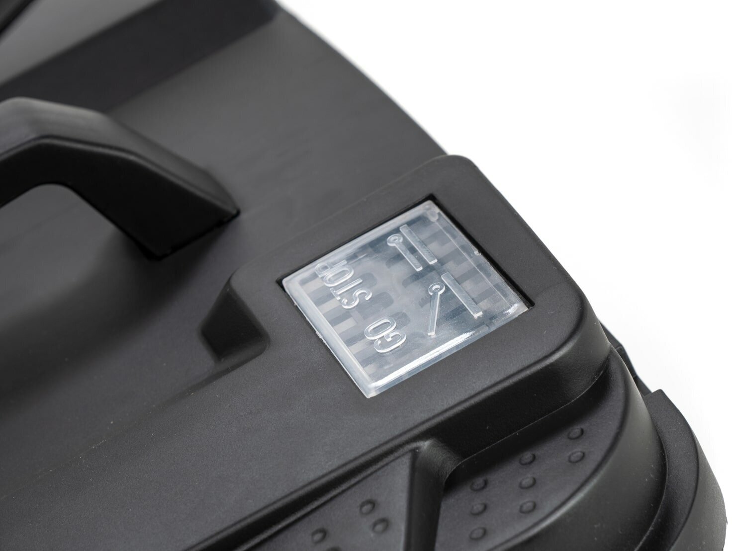 Наличие травосборника на 50 л позволит работать больше времени, а также сократит время высвобождения покошенной травы.
