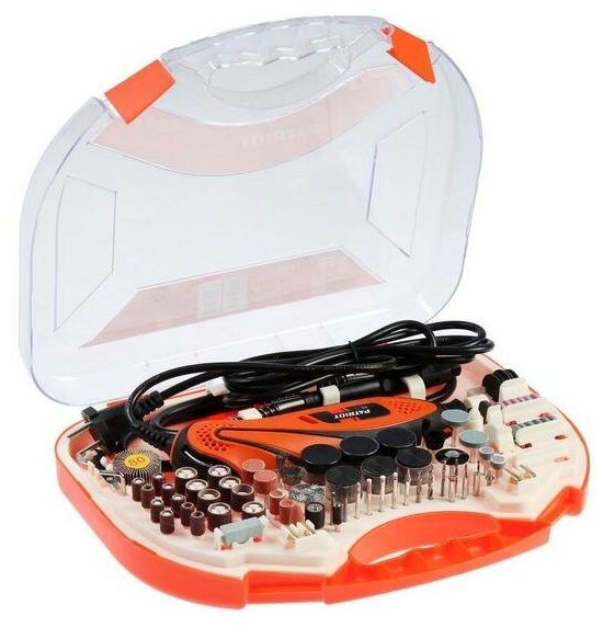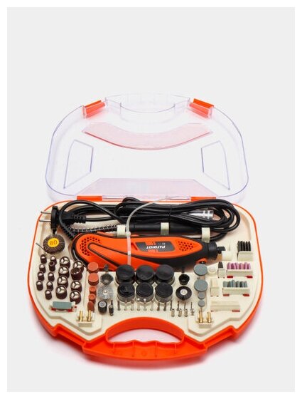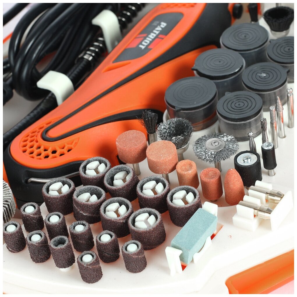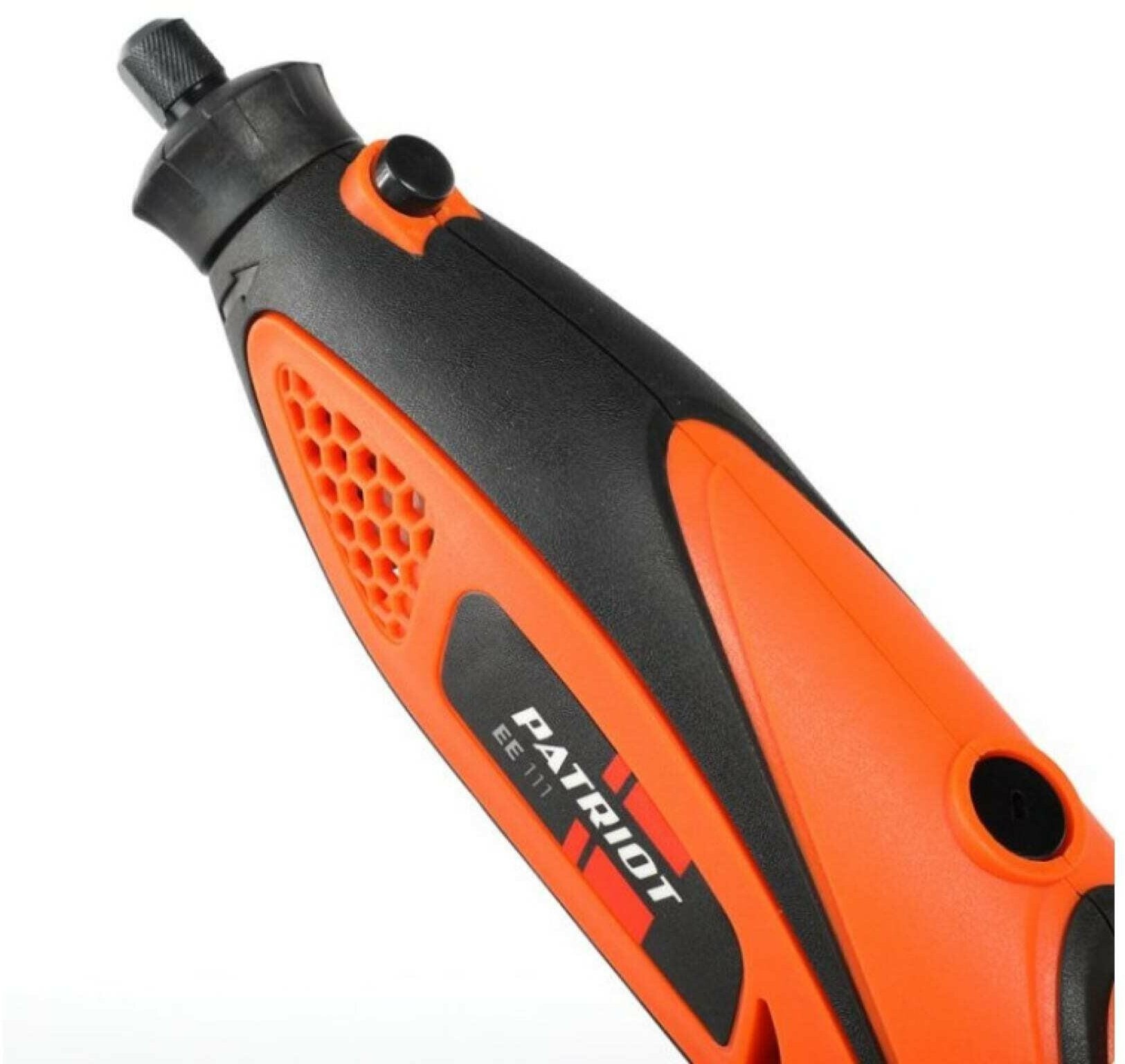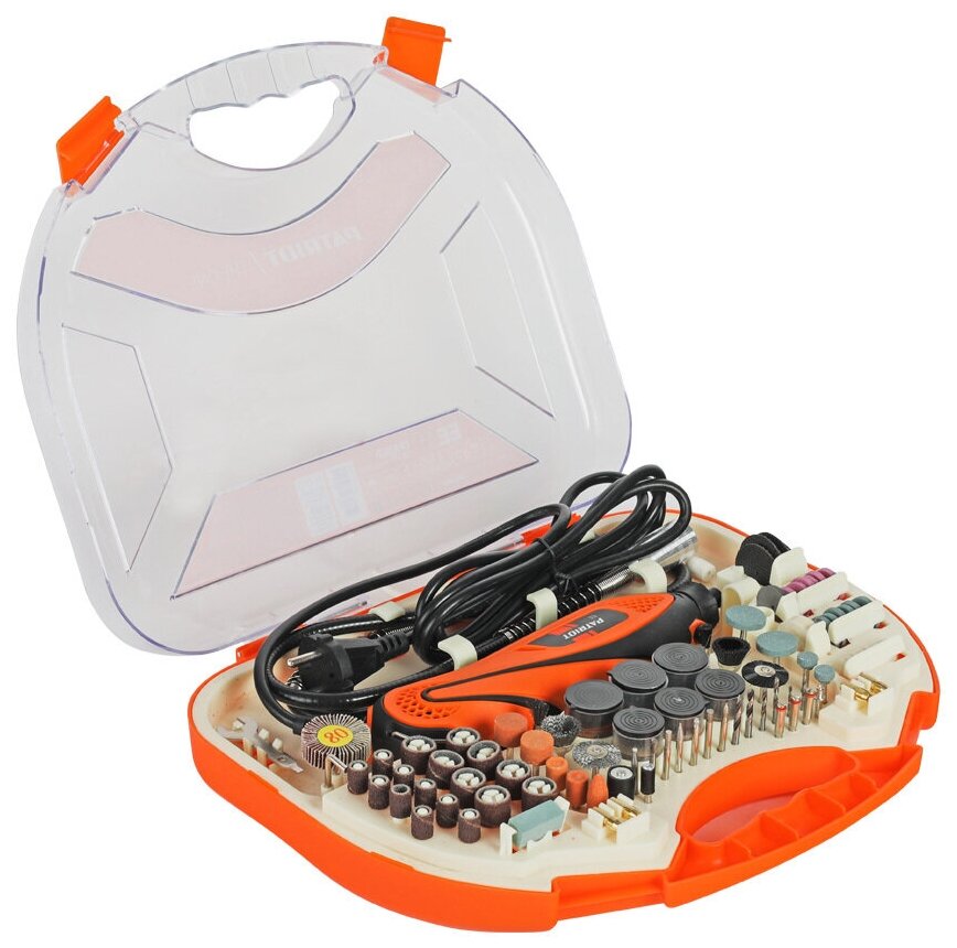 Гравер Patriot с надежным электродвигателем и эффективной системой охлаждения, способен справится с широким кругом задач, таких как резка, полирование, абразивная обработка, гравирование, шлифование и чистка. В комплект поставки инструмента входят наиболее распространенные насадки для проведения основных видов работ. - Гибкий вал в комплекте - 210 сменных аксессуаров - Кейс для хранения и транспортировки инструмента и принадлежностей. - Блокировка вала инструмента позволяет быстро заменять оснастку