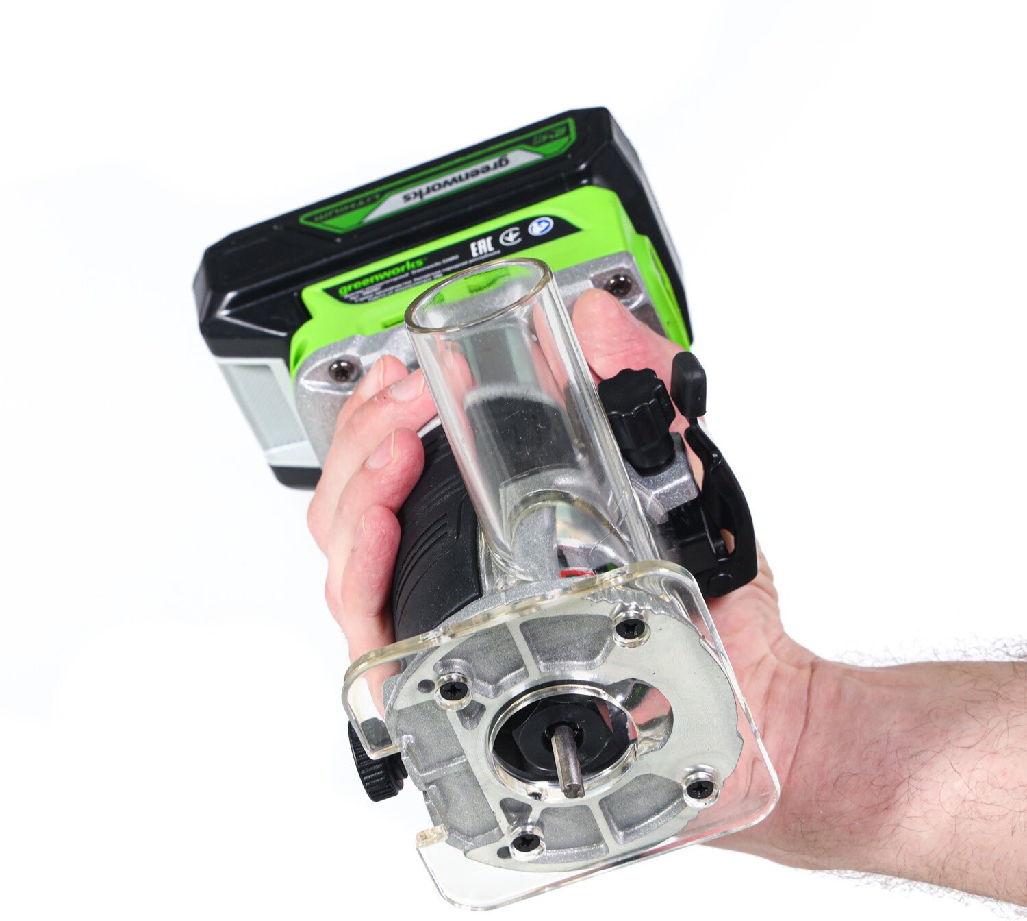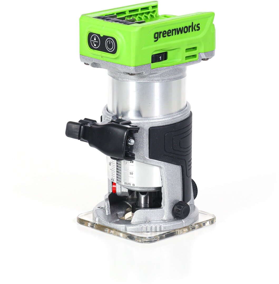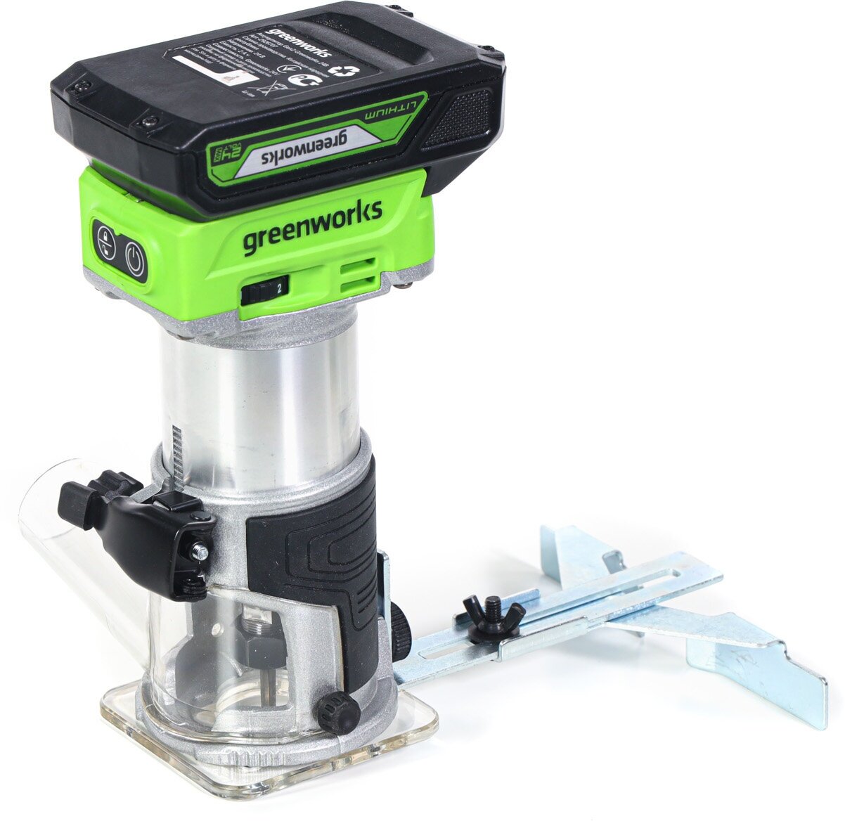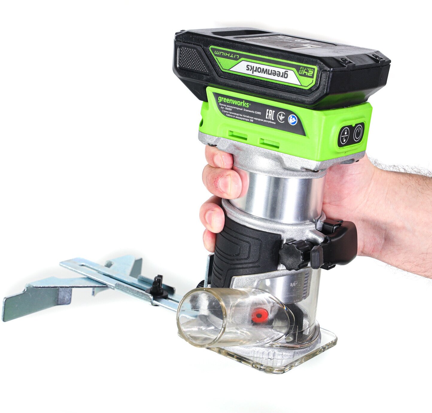 Фрезер аккумуляторный Greenworks Арт. 3502507, 24V, бесщеточный, без АКБ и ЗУ – предназначен для фрезерования пазов и обработки кромок деревянных изделий.