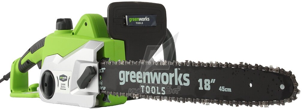 Пила цепная электрическая 2000W GREENWORKS GCS2046 - старшая модель цепной пилы в линейке сетевых пил Greenworks 230V. Она отлично подойдет для распила деревьев, веток, заготовки леса, дров и т. д. Эта модель оснащена двигателем с увеличенной мощностью до 2 кВт.