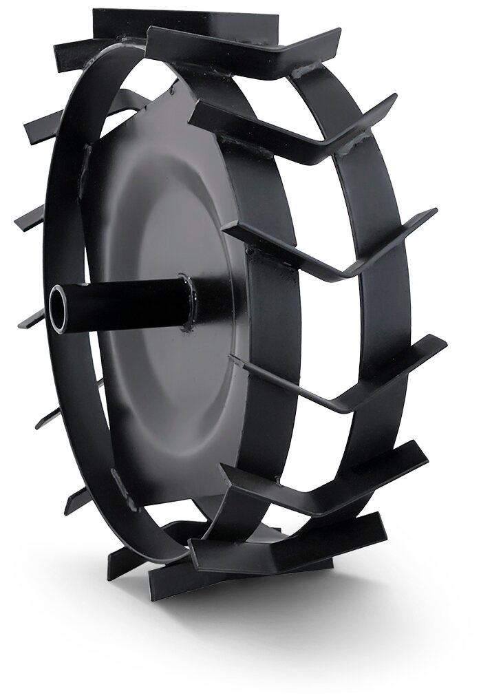 Они предназначены для улучшения сцепления мотоблока с почвой при выполнении тяжелых работ, таких как вспашка, рыхление почвы, окучивание и др. А при работе с влажной почвой зацепы остаются чистыми, т. к. грунт свободно проходит через отверстия между направляющими обода.