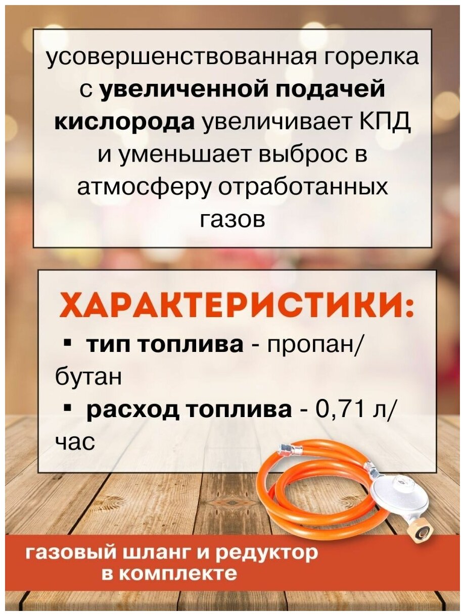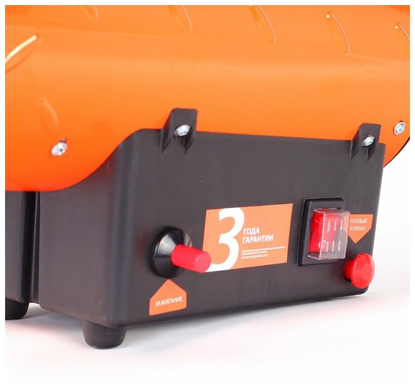 Переносная тепловая пушка на сжиженном газе пропан/бутан. Усовершенствованная горелка с увеличенной подачей кислорода увеличивает КПД и уменьшает выброс в атмосферу отработанных газов. Предназначен как для использования в хорошо проветриваемых помещениях: склады, теплицы, производственные помещения и т. д, так и на открытом пространстве. Газовый шланг 1,5 м. и редуктор в комплекте. Мощность: 12 кВт; пьезоподжиг; Электродвигатель: 25 Вт - 220 Вольт; Корпус: окрашенный; Тип газа: пропан/бутан; Расход: 0.71 кг/час; Степень защиты: IPХ4; Поток воздуха: 320 мᵌ/ч; Система защиты от перегрева; Система защиты от утечки газа; Термореле; Ручка для переноски; Редуктор и шланг 1,5 м в комплекте