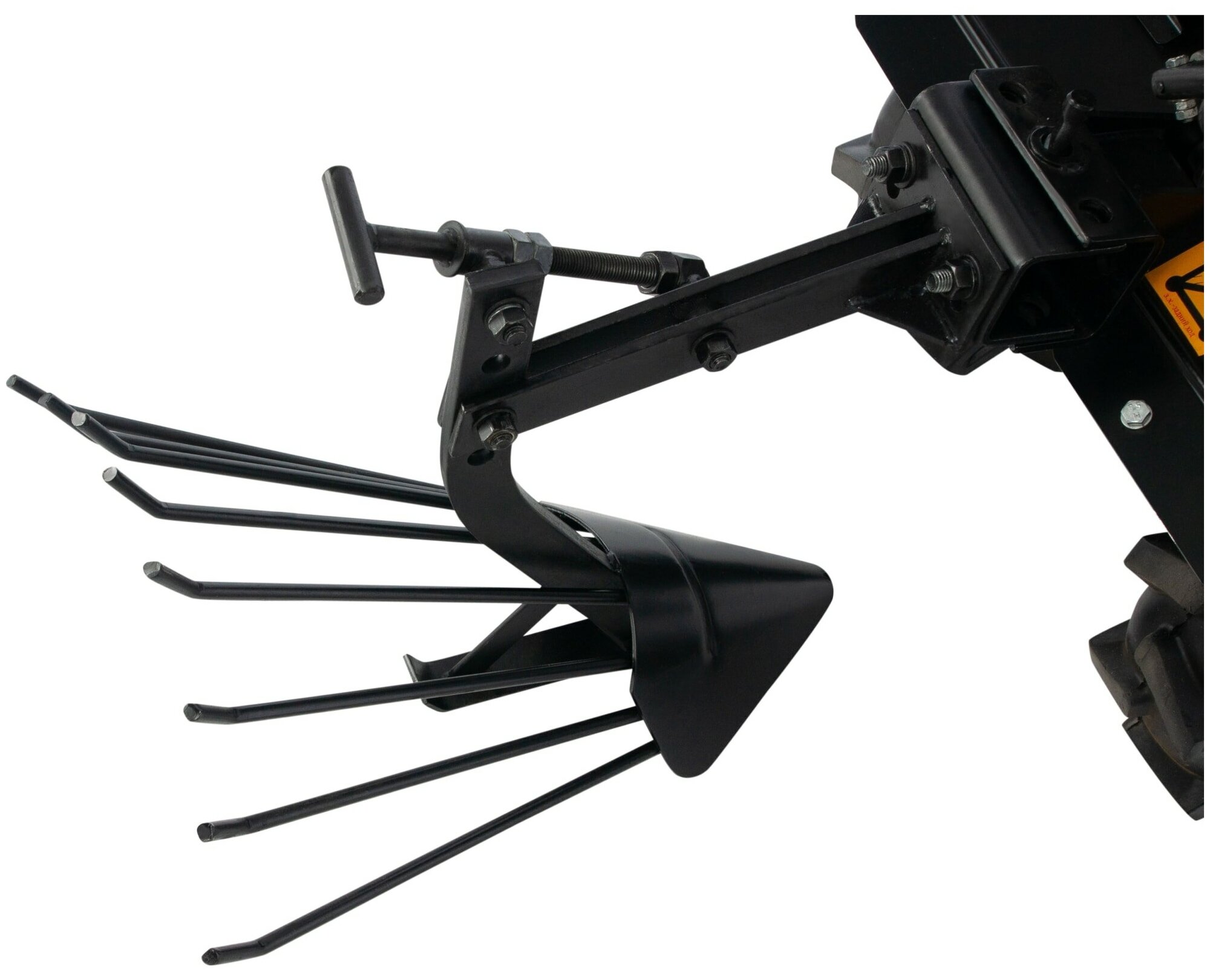 Выкапыватель отсеивает землю и выбрасывает клубни на поверхность гряды, что позволяет быстро и легко собрать урожай. Ширина захвата лемеха составляет 41 см, а рабочая скорость - 2-5 км/час.