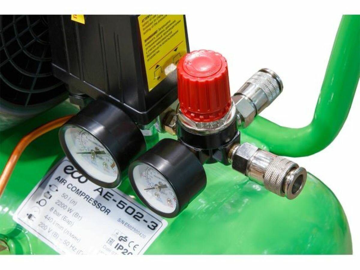Компрессор ECO AE-502-3 подойдет для бытового использования в гараже, мастерских или на даче. С помощью компрессора можно произвести окрашивание или подключить пневматический инструмент.