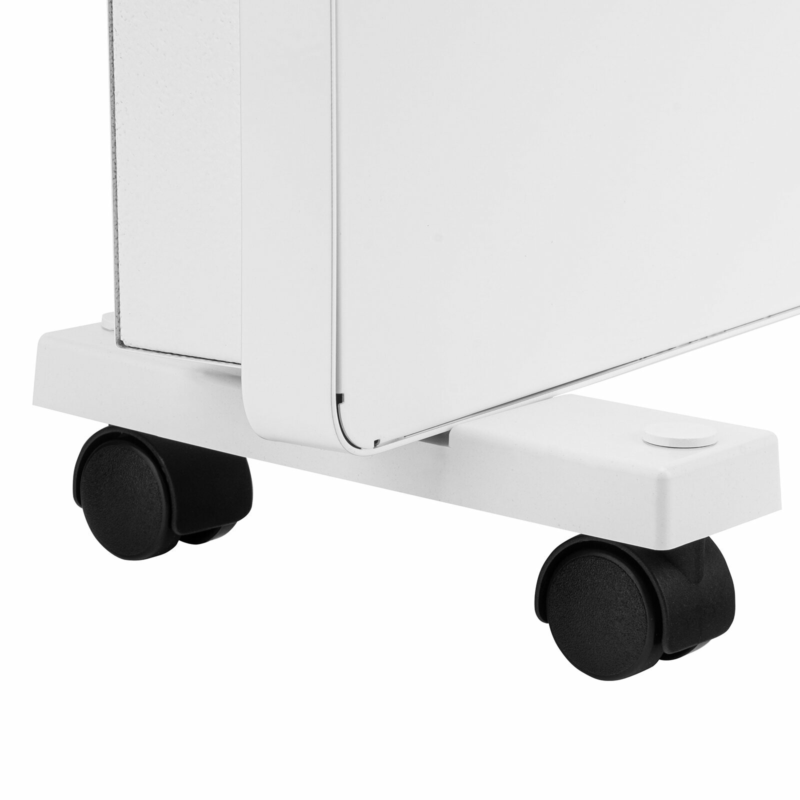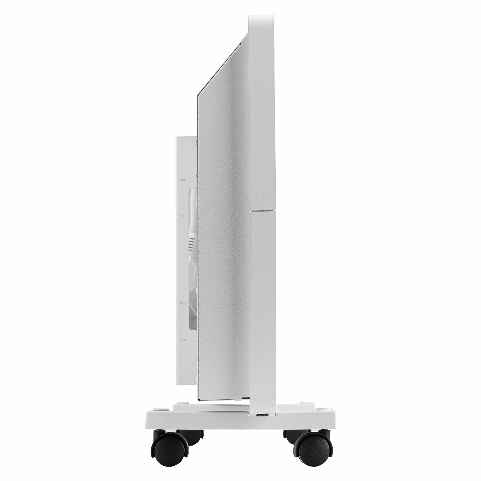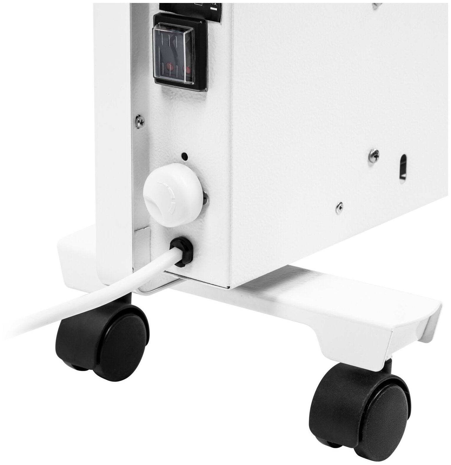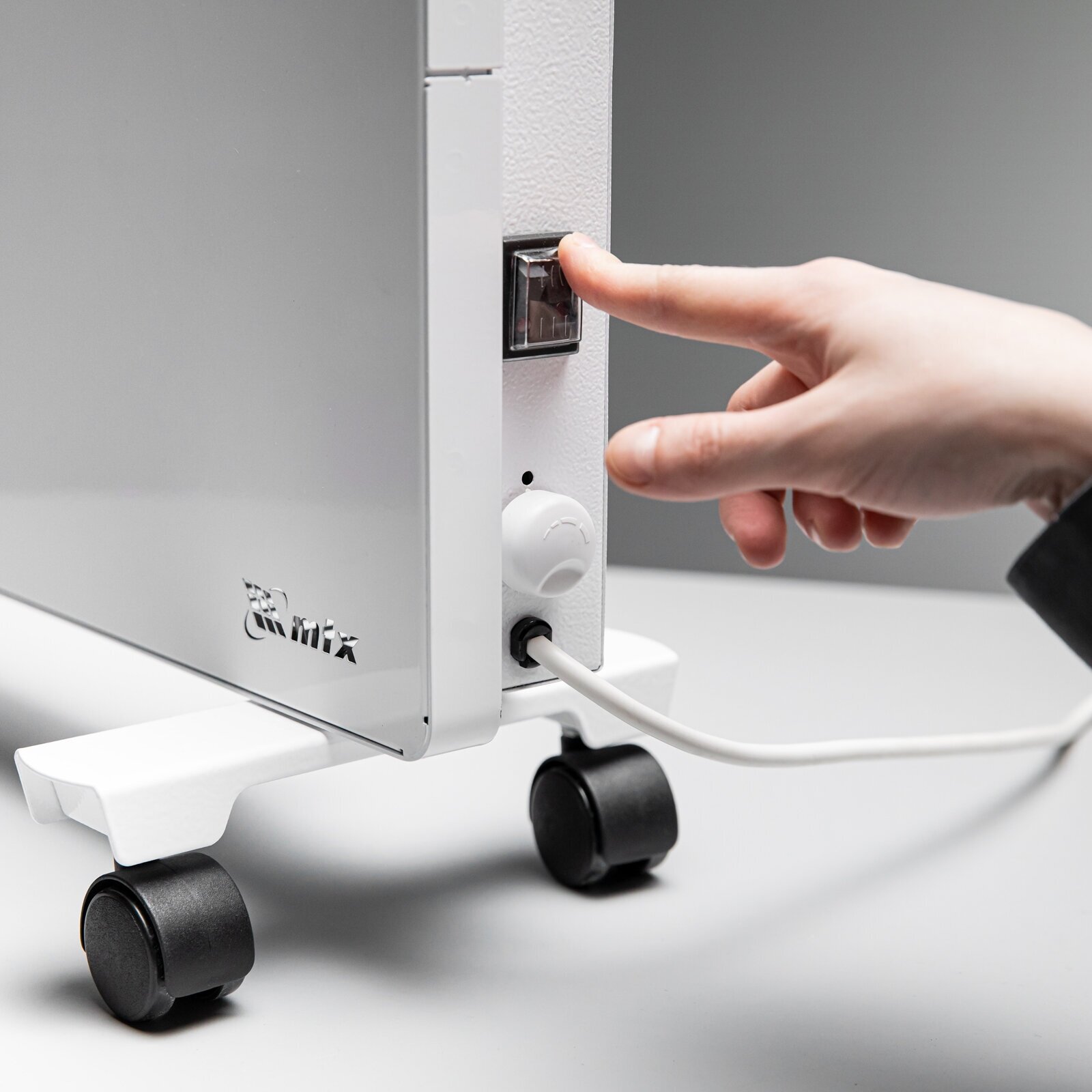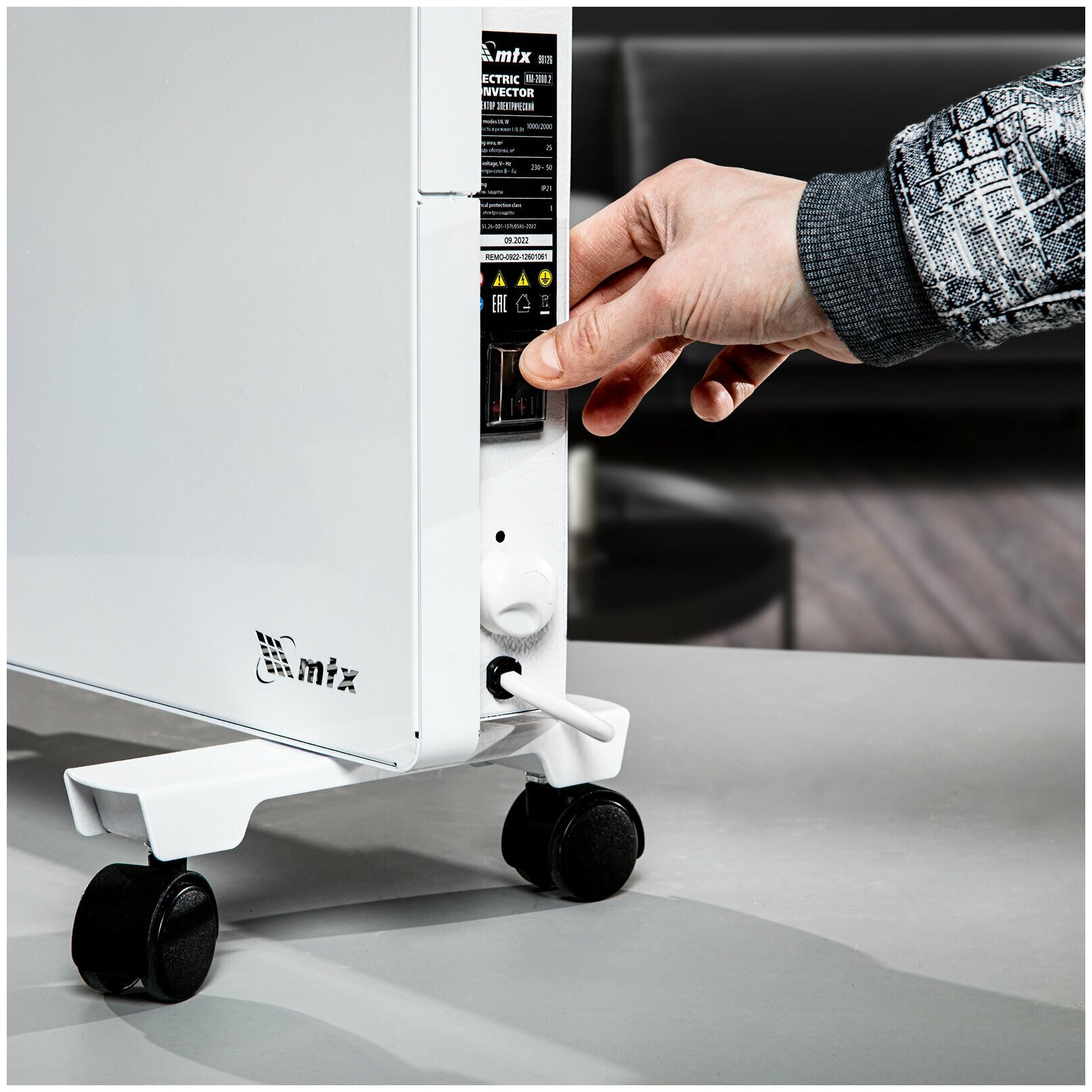 Конвектор электрический MTX KM-1500.2 98125 с X-образным нагревателем, колесами на металлической опоре и термостатом, мощностью 1500 Вт, предназначен для использования в закрытых помещениях: квартирах, офисах, загородных домах, на даче, на производстве и в общественных местах. Рекомендуемая площадь обогрева составляет 20 кв. м. Х-образный нагревательный элемент обеспечивает быстрый и равномерный прогрев помещения до необходимой температуры, при этом не сушит воздух. Преимущества2 режима работы (полный обогрев на мощности 1500 Вт и частичный на 750 Вт) — конвектор позволяет прогревать холодное помещение и поддерживать тепло в отапливаемом. Все выполнено из металла — корпус, колесные опоры, крепежная рамка. Премиум дизайн — глянцевая лицевая панель конвектора хорошо вписывается в интерьер. Антивандальное покрытие «Белая шагрень» — имеет в 3 раза выше прочность относительно обычной краски. Оптимальная циркуляция воздушного потока — внутри конвектора установлен специальный отражающий экран, рассчитанный согласно законам термодинамики. Термозащита — конвектор отключается в случае перегрева, что делает его использование безопасным и предотвращает выход из строя. Удобная настройка и автоматическое поддержание заданных параметров — механический термостат позволяет задать и точно поддерживать температуру в помещении. Комфортная эксплуатация — конвектор не сушит воздух и не сжигает пыль, что исключает появление неприятного запаха в помещении. Надежность и долговечность — Х-образный нагревательный элемент отличается самым большим сроком службы в сравнении с другими нагревательными элементами и обеспечивает равномерную конвекцию без риска локальных перегревов. Возможность использования в ванной комнате — нагревательный элемент выдерживает эксплуатацию в условиях повышенной влажности. Мобильность — колеса облегчают перемещение обогревателя. Два варианта монтажа — конвектор можно расположить на полу или повесить на стену (колесные опоры и кронштейн входят в комплект поставки). Цельнометаллическая крепежная рамка — облегчает монтаж конвектора на стену и повышает жесткость конструкции.