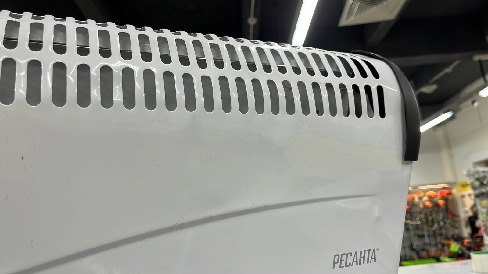 Электрический ОК-1000С для обогрева помещений. Состоит из нагревательной части, заключенной в нижней части корпуса со щелеобразными отверстиями снизу и жалюзи в верхней части. Данная конструкция даёт возможность воздуху беспрепятственно проходить внутри а,Модели ов серии СОтличием данной серии ов от остальных серий является вид используемого нагревательного элемента (стич). При аналогичной мощности стич элемент меньше и легче ТЭНа, поэтому преимущества данной серии - компактный размер и меньший вес.В этих ах используется нагревательный элемент, известный как игольчатый, ленточный или типа стич (от английского слова STITCH - шить, стегать), представляет собой тонкую пластину (ленту) из диэлектрического материала, густо прошитую хром-никелевой нитью, которая с обеих сторон образует петли. Игольчатый нагреватель характеризуется минимальной тепловой инерцией – нагревается и остывает практически моментально.